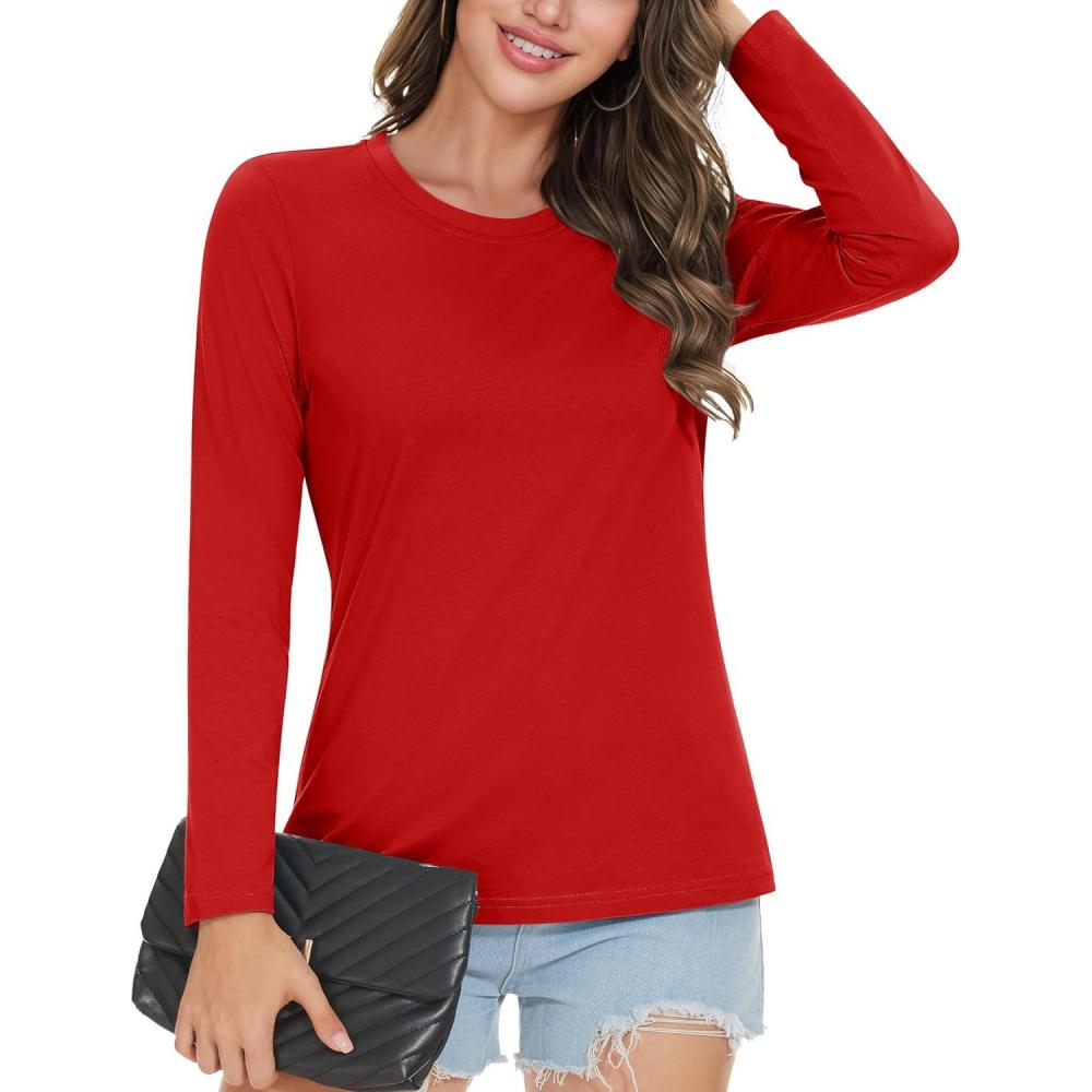 MAGCOMSEN Women’s Long-Sleeve Crew-Neck Cotton T-Shirt Classic-Fit Shirt Soft Breathable Casual Tee Basic Tops(A-red)