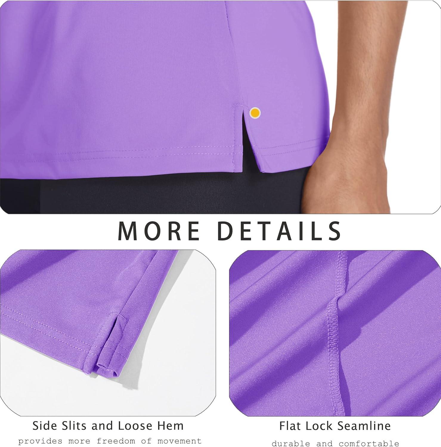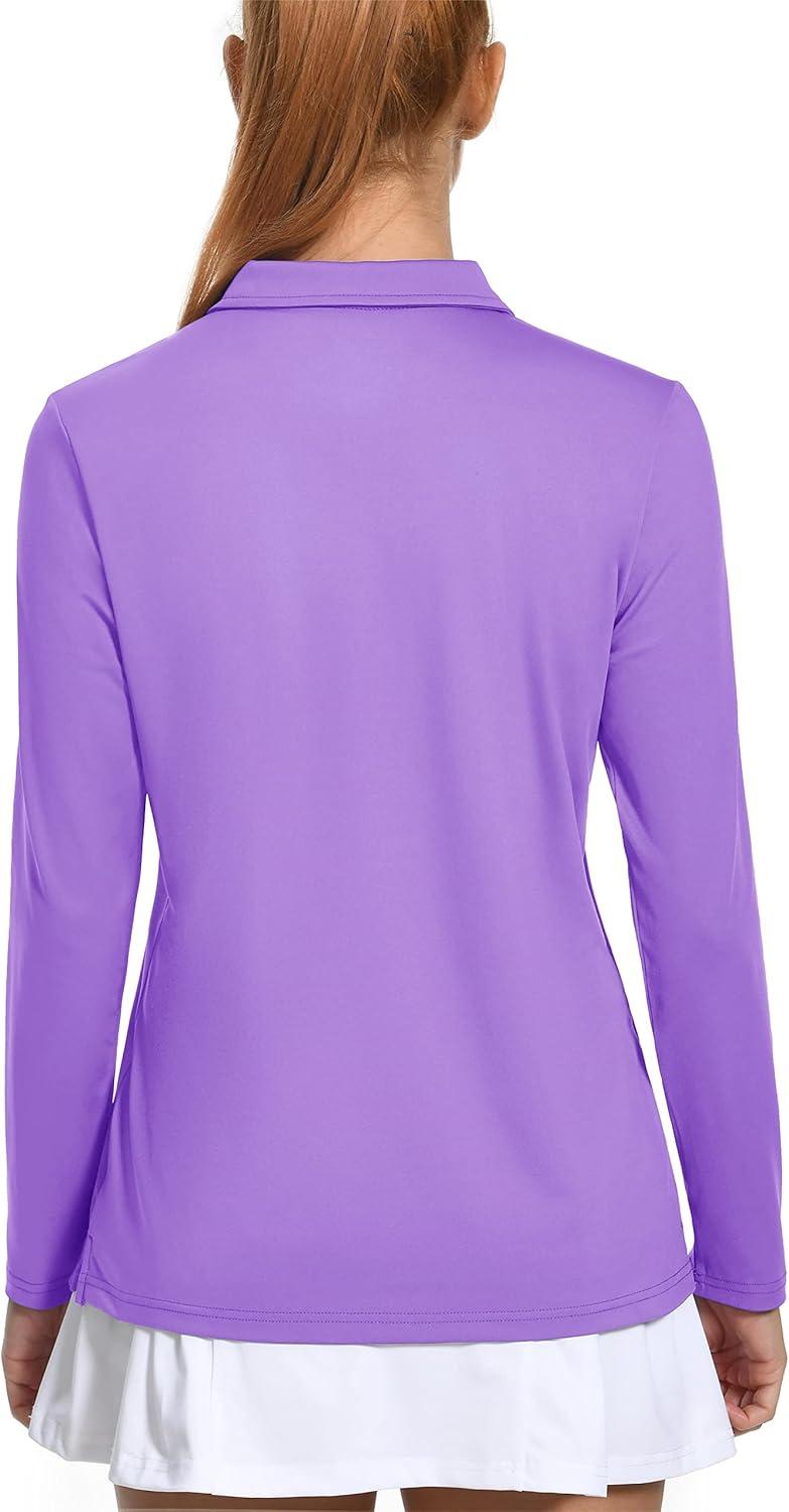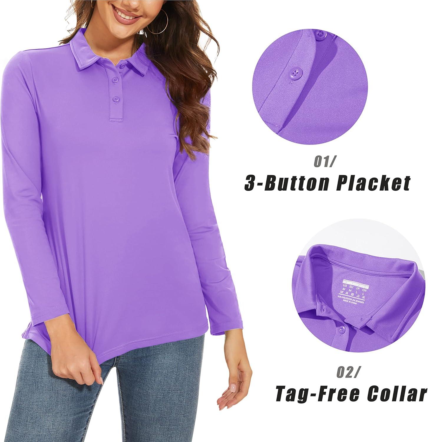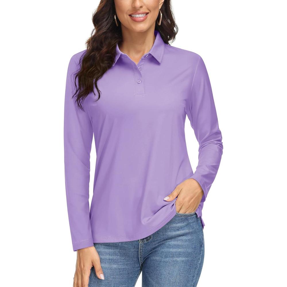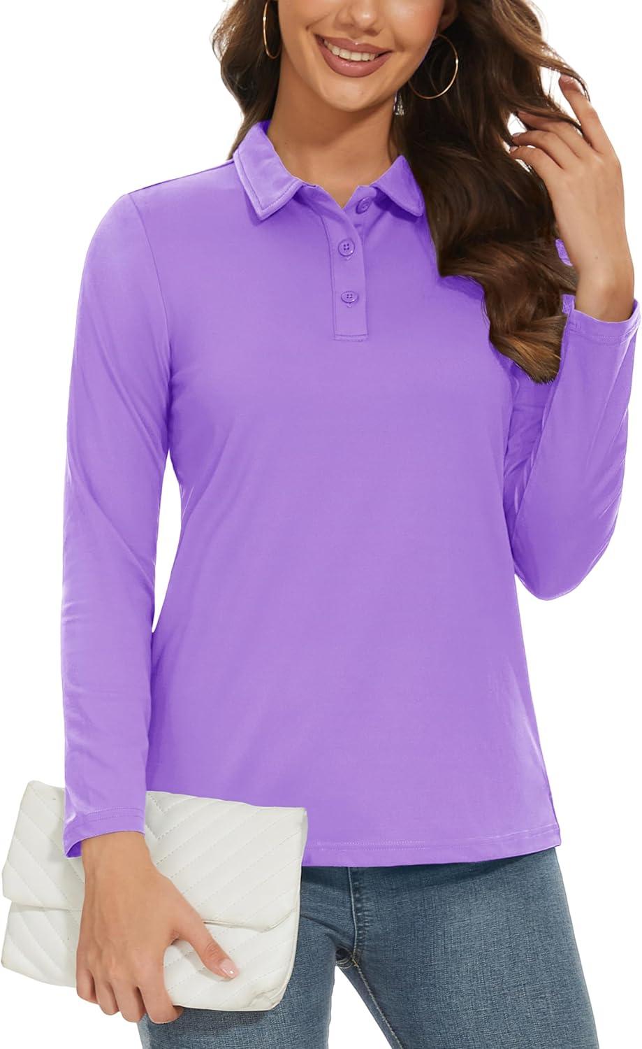 MAGCOMSEN Women’s Long Sleeve Polo Shirts UPF 50+ Golf Tops Moisture Wicking Collared Shirt Tennis 3-Button(Light Purple)