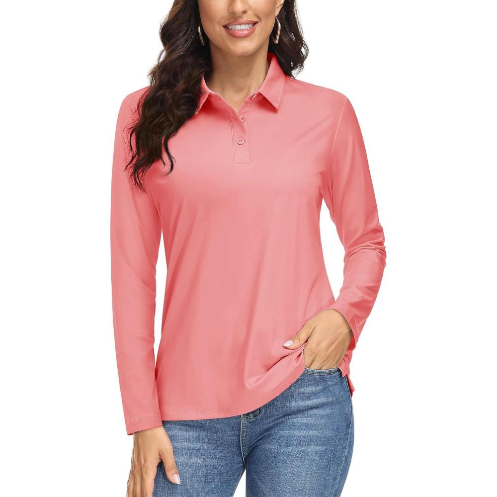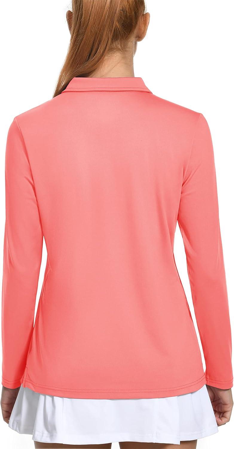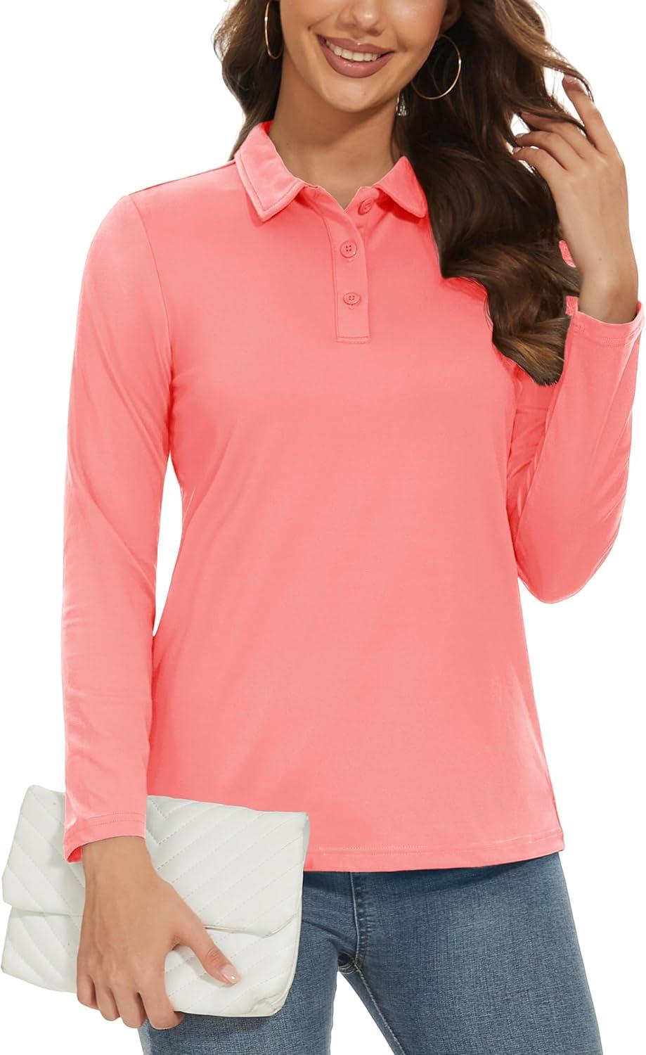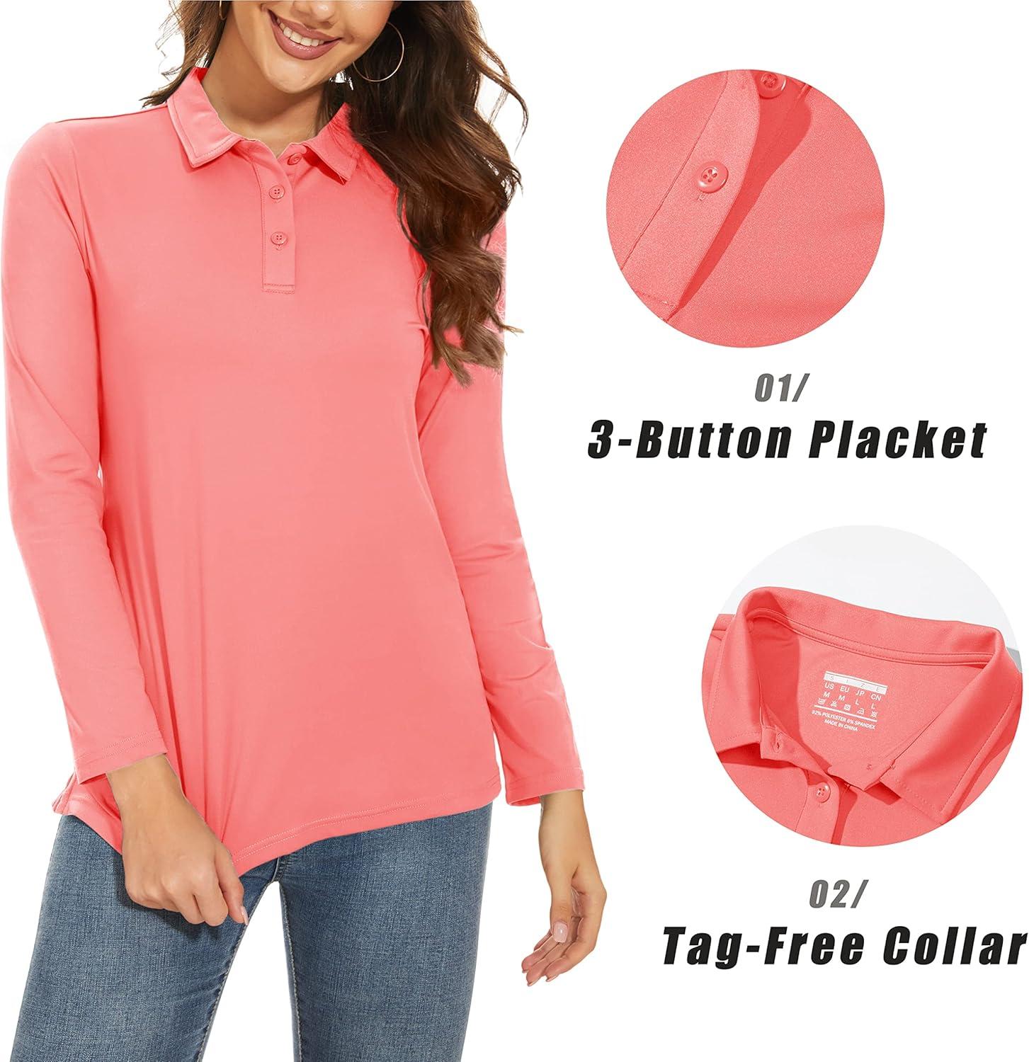 MAGCOMSEN Women’s Long Sleeve Polo Shirts UPF 50+ Golf Tops Moisture Wicking Collared Shirt Tennis 3-Button(Rose)