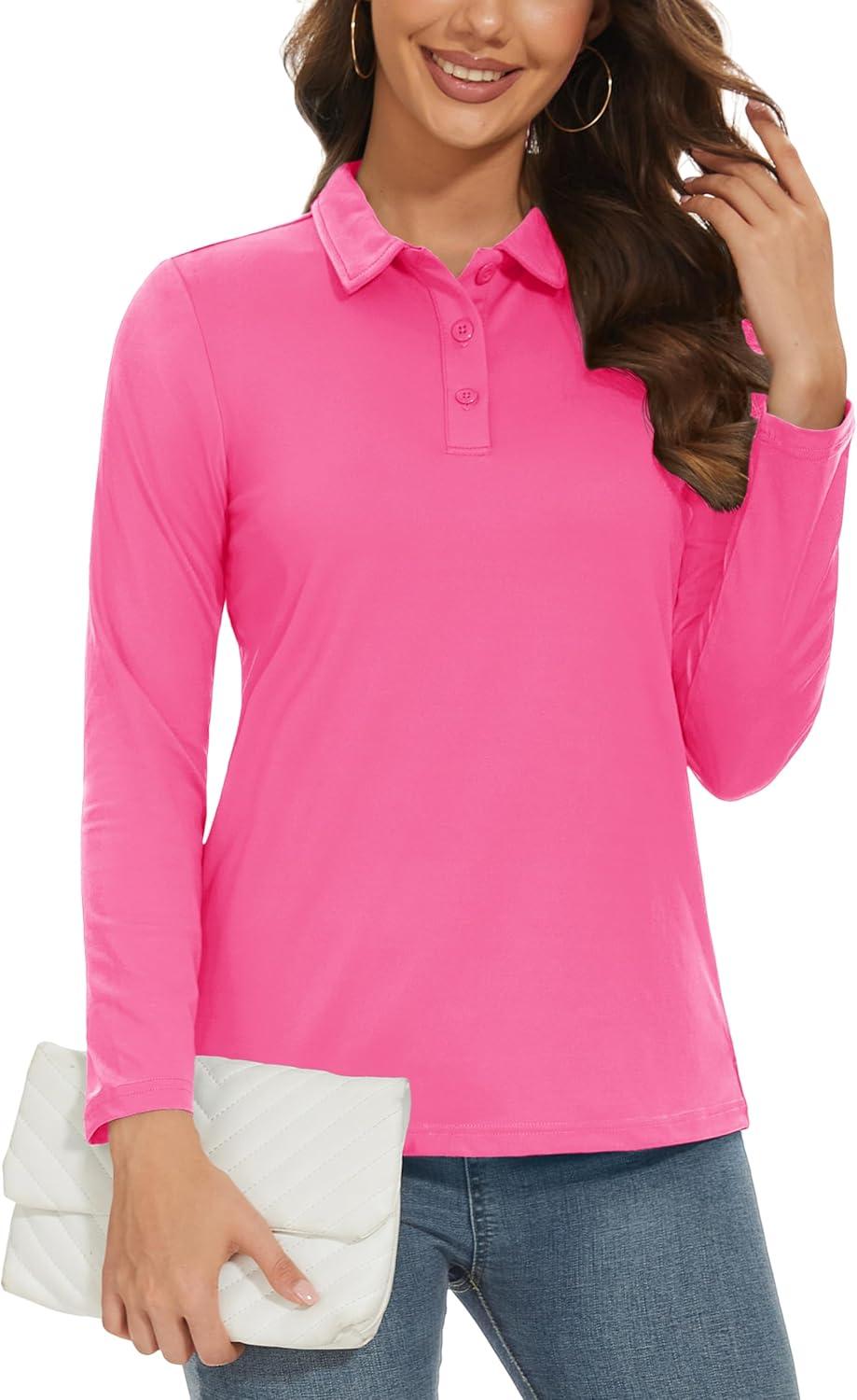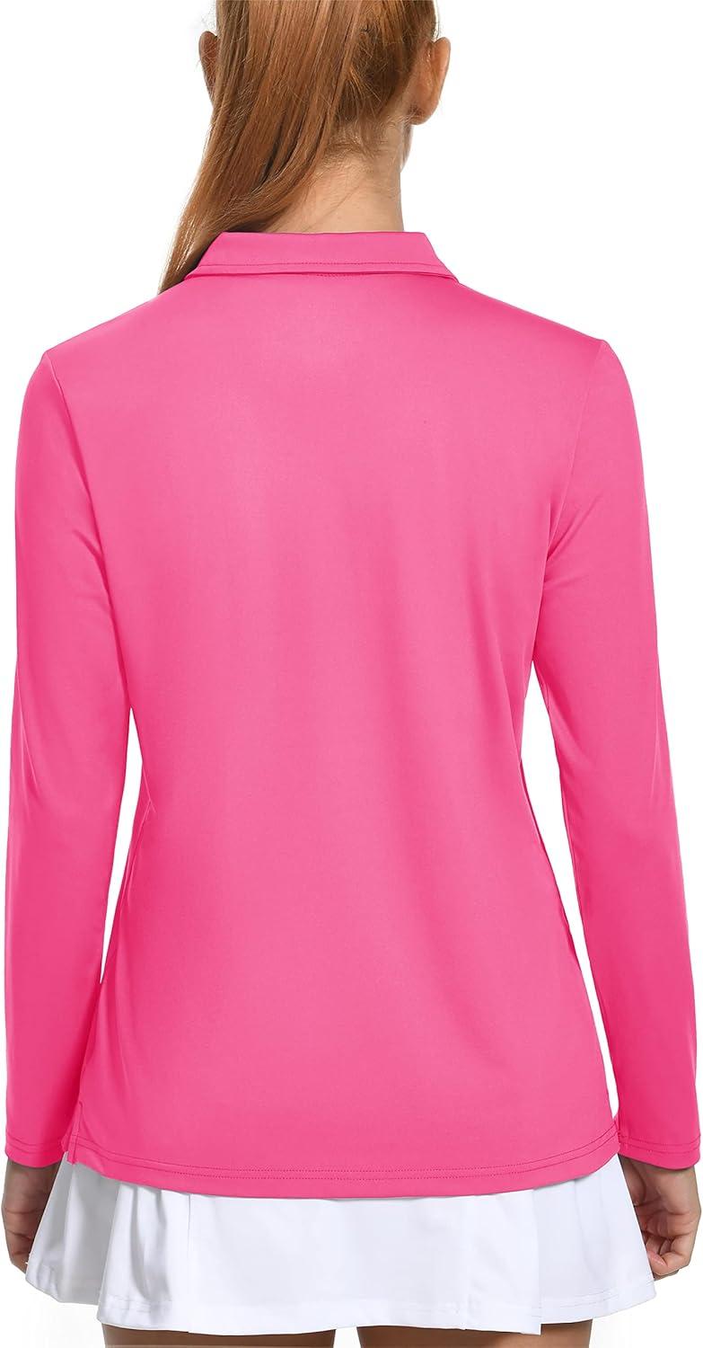 MAGCOMSEN Women’s Long Sleeve Polo Shirts UPF 50+ Golf Tops Moisture Wicking Collared Shirt Tennis 3-Button(Rose)