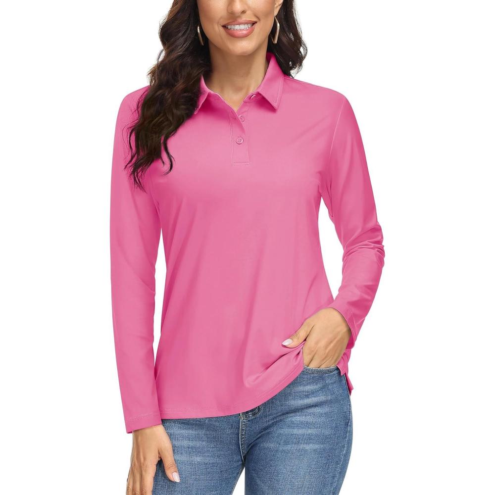 Get the MAGCOMSEN Women’s Long Sleeve Polo Shirts UPF 50+ Golf Tops Moisture Wicking Collared Shirt Tennis 3-Button(Rose) you want at a discounted price during our markdown sale event.