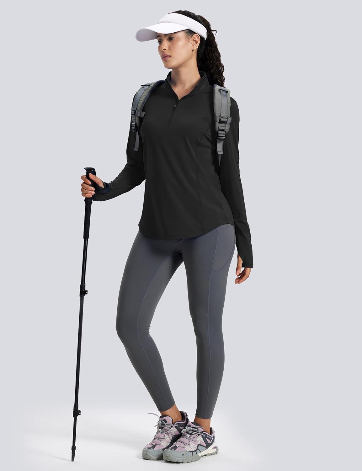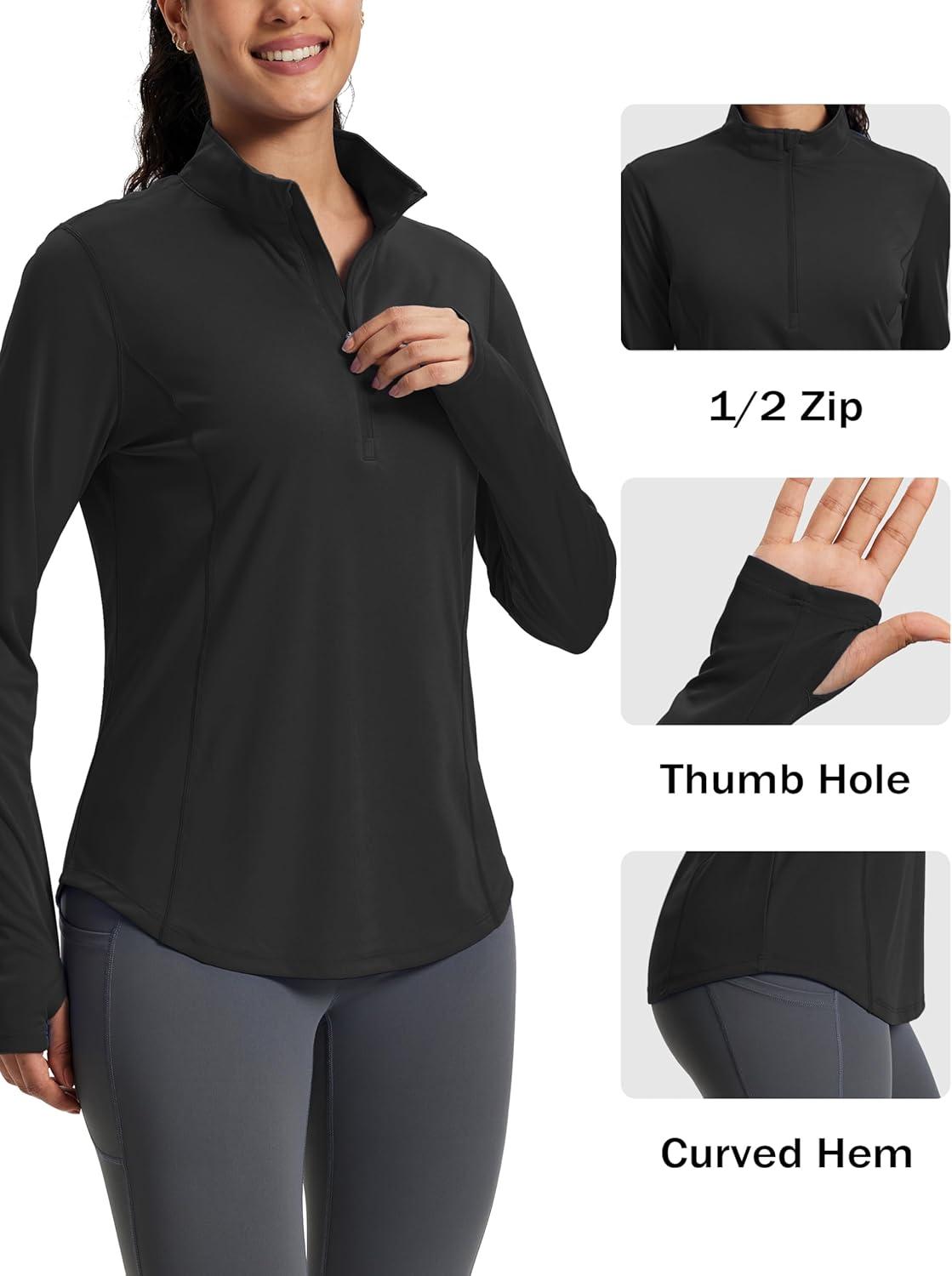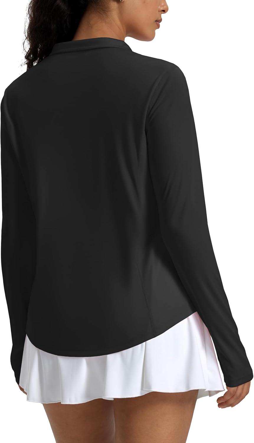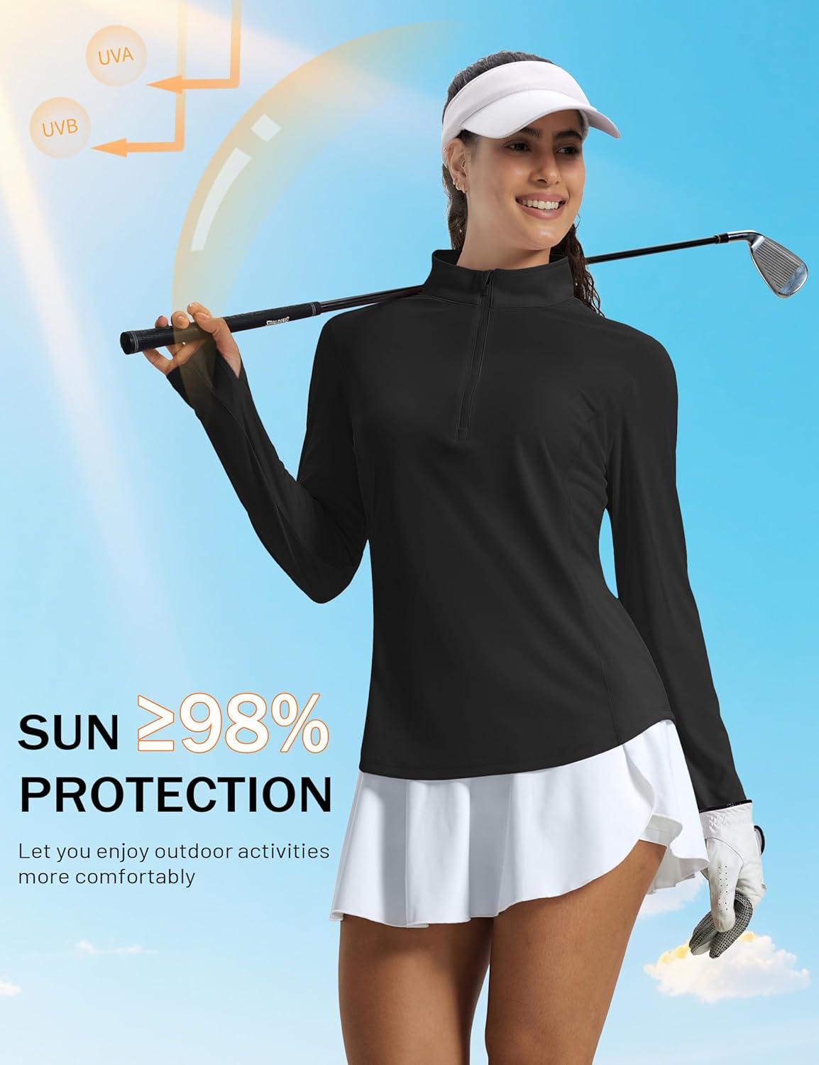 MAGCOMSEN Women’s Long Sleeve Shirts Sun Protection Half 1/2 Zip Pullover Rash Guard Quick Dry Hiking Golf Workout Tops(Black)