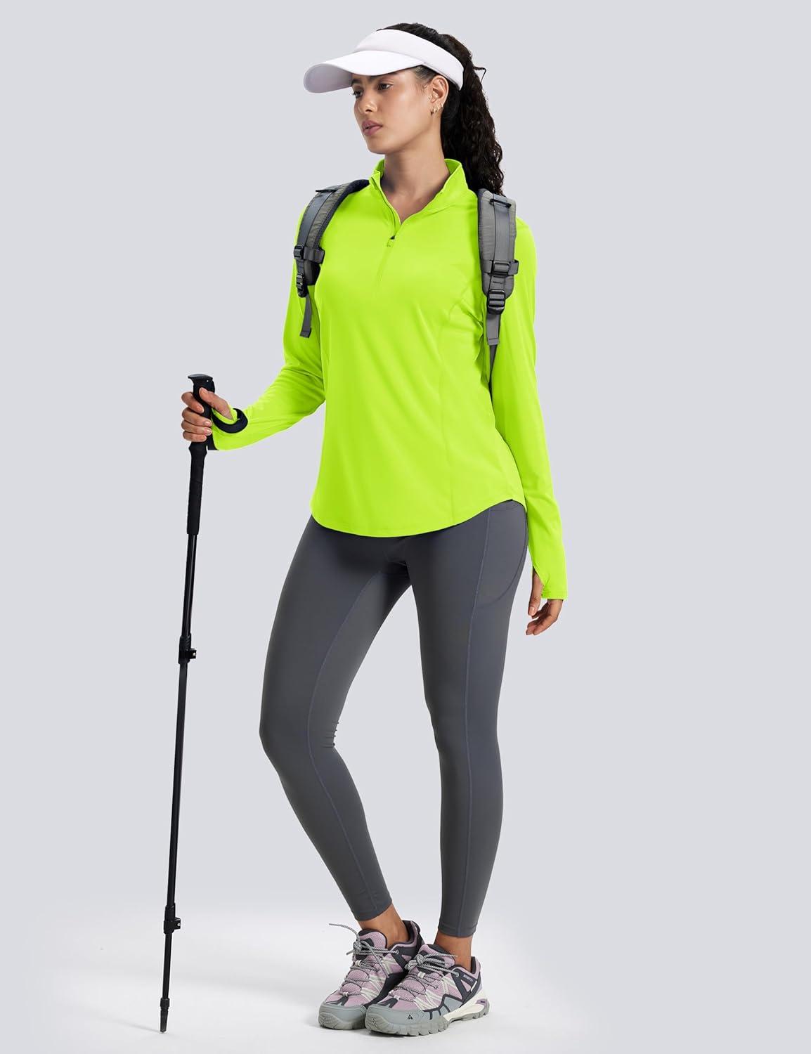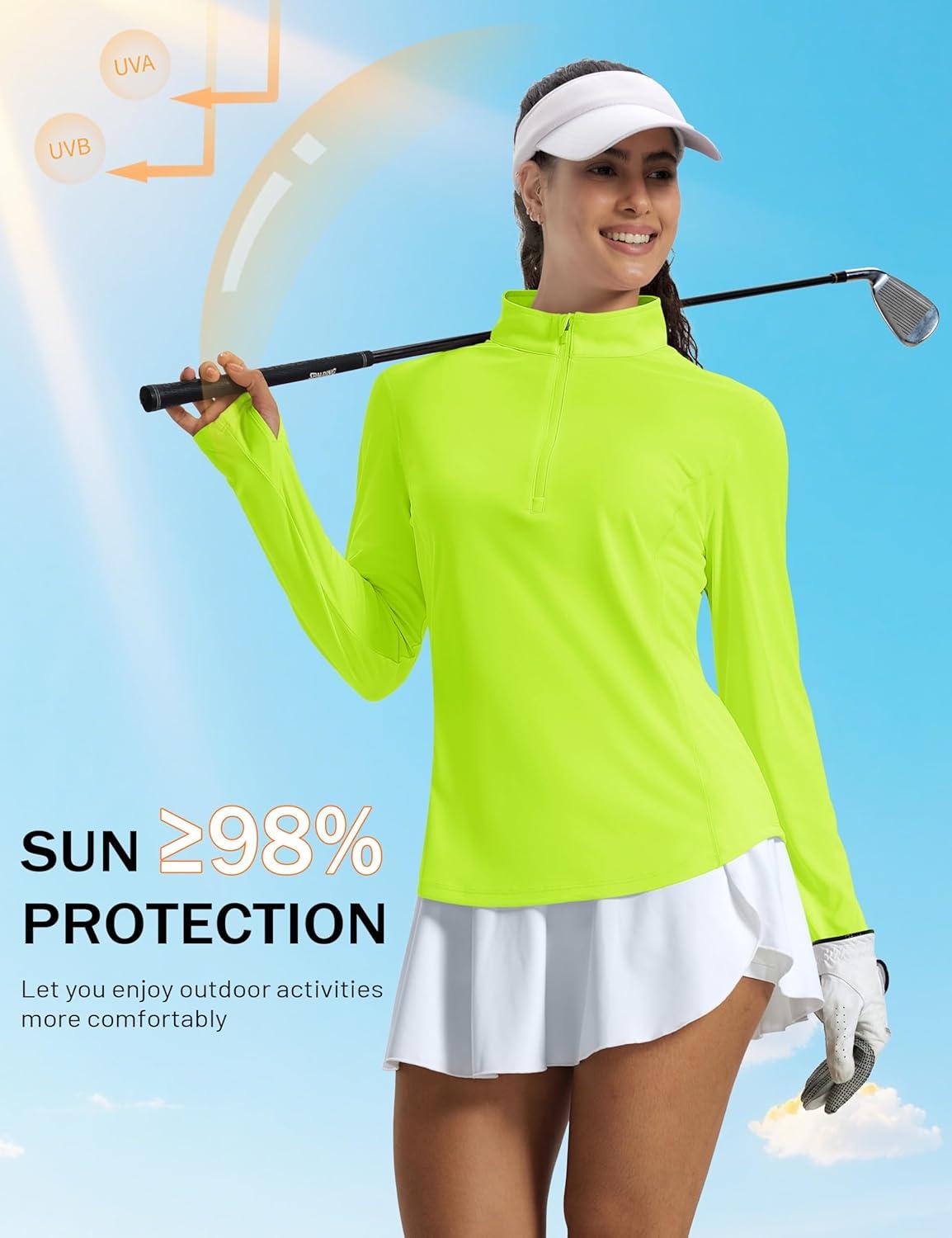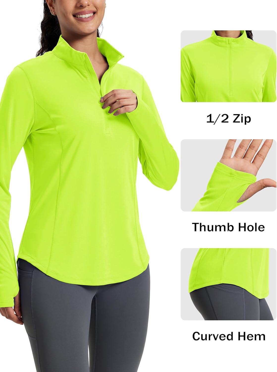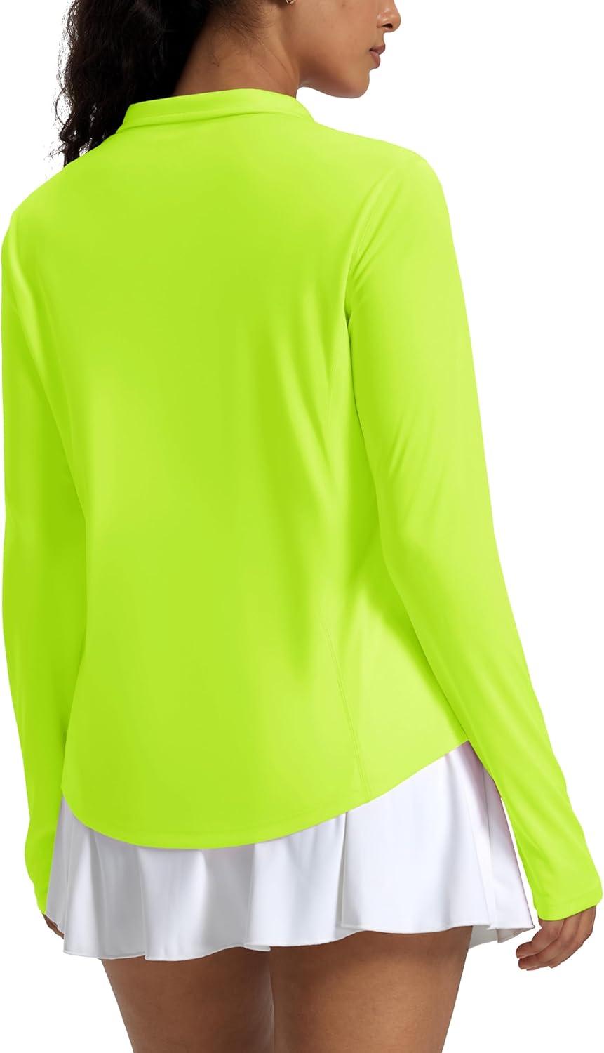 MAGCOMSEN Women’s Long Sleeve Shirts Sun Protection Half 1/2 Zip Pullover Rash Guard Quick Dry Hiking Golf Workout Tops(Fluorescent Green)