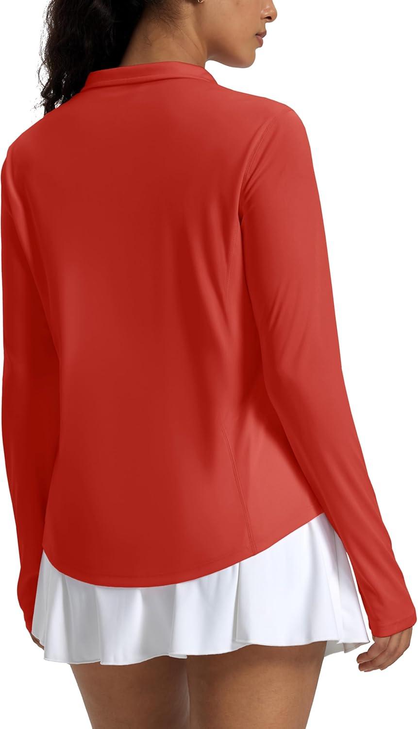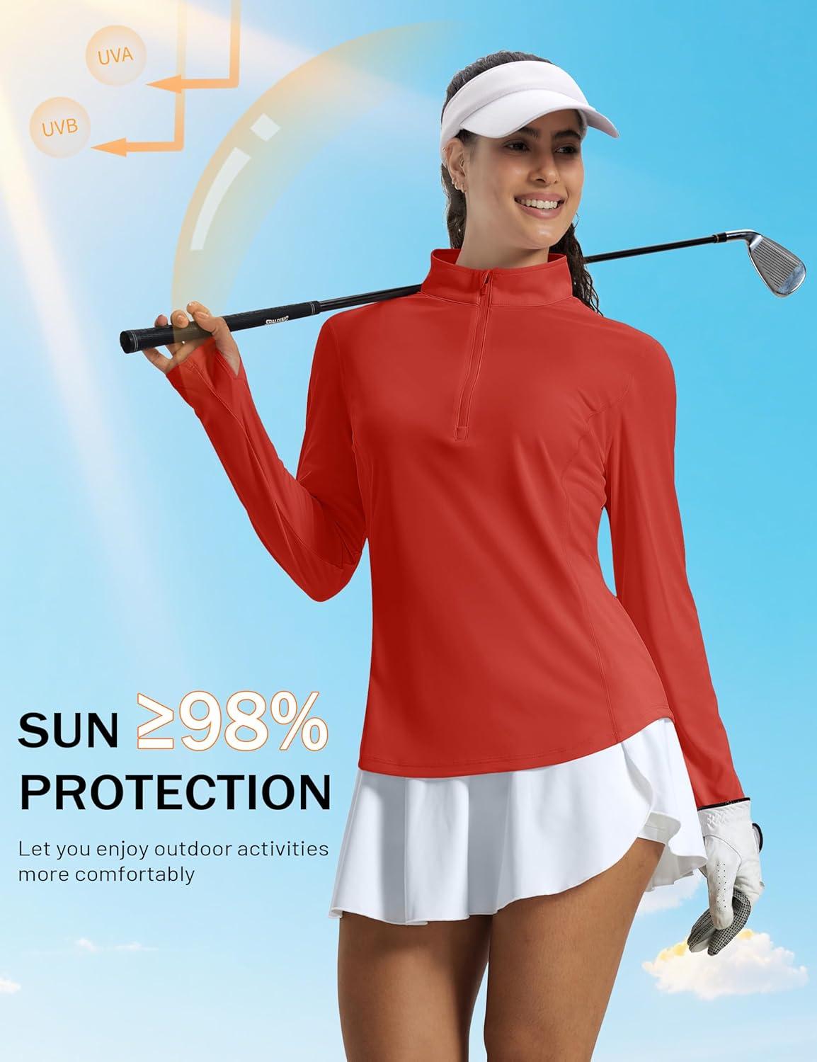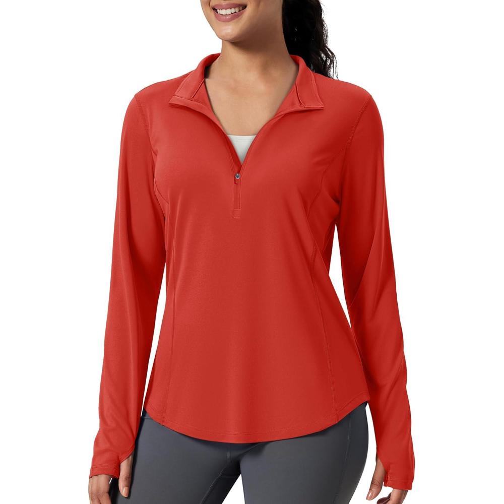 MAGCOMSEN Women’s Long Sleeve Shirts Sun Protection Half 1/2 Zip Pullover Rash Guard Quick Dry Hiking Golf Workout Tops(Red)