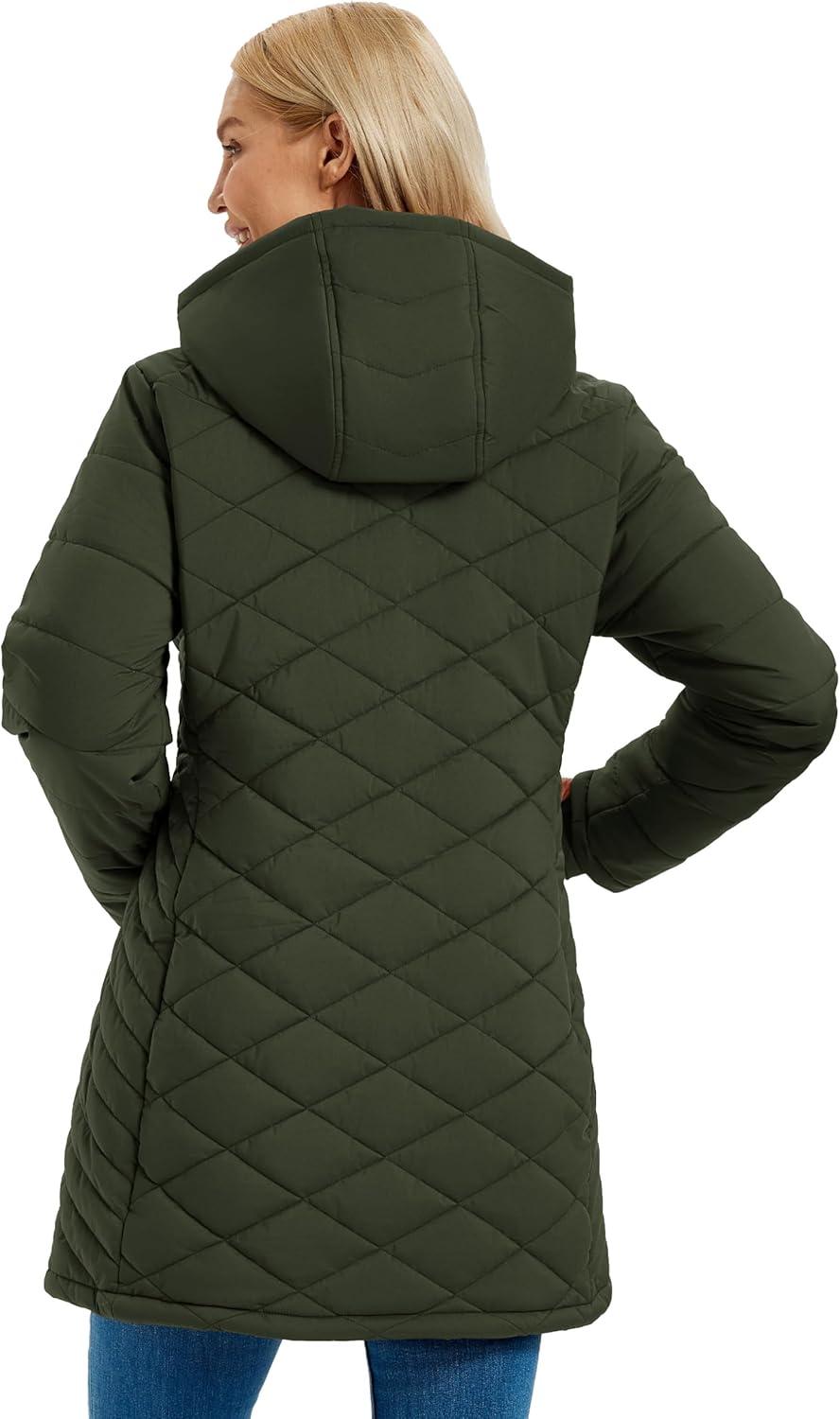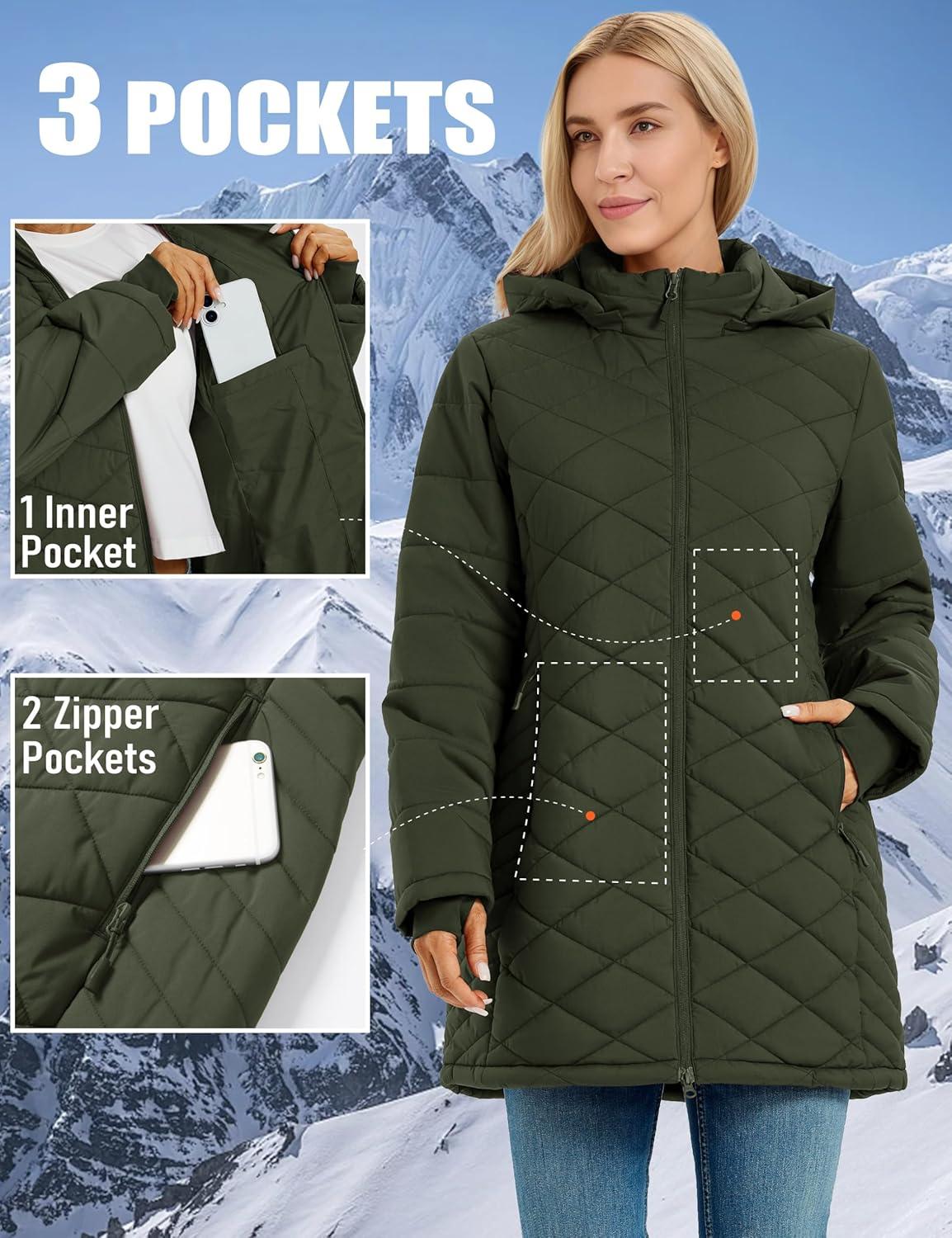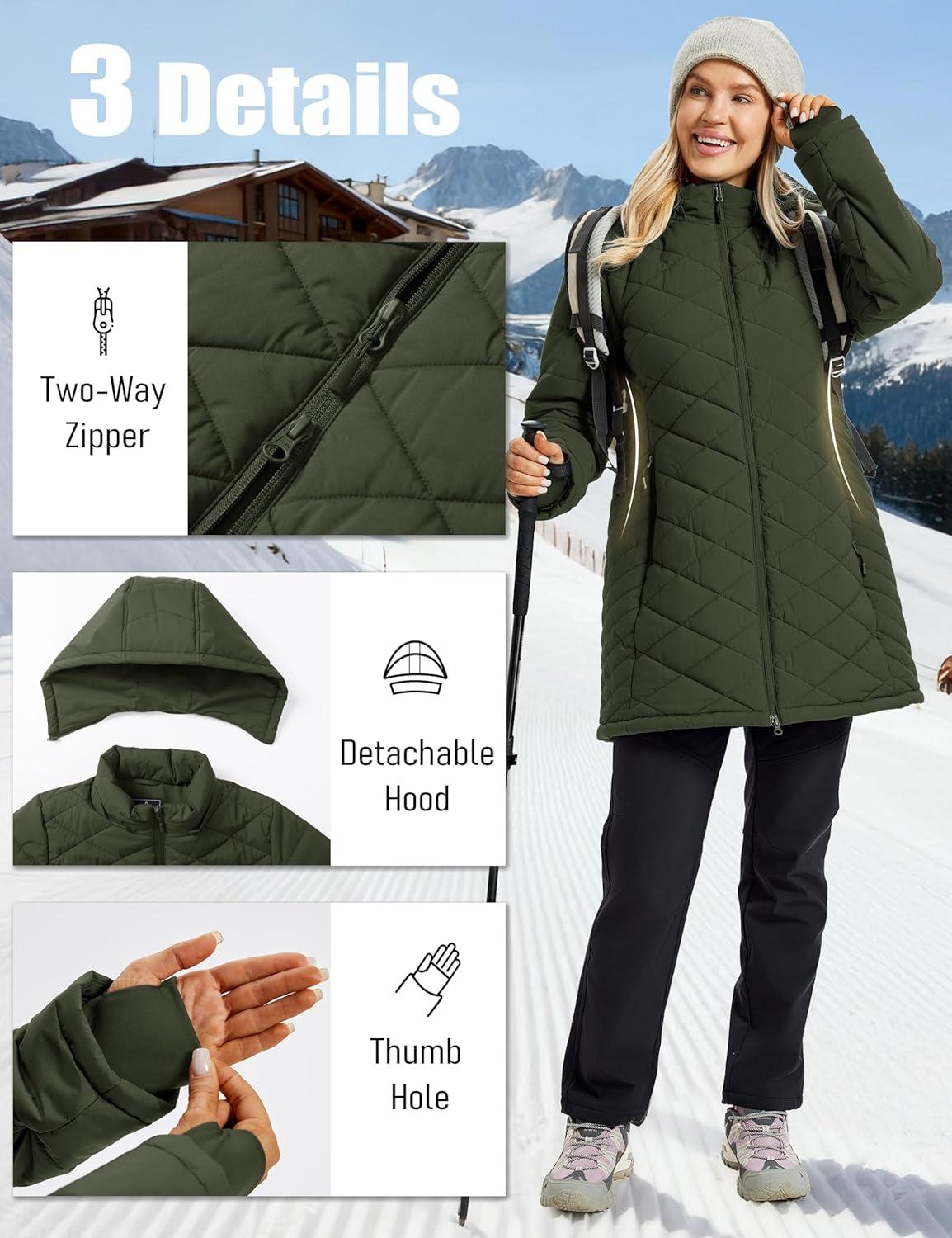MAGCOMSEN Women’s Long Winter Quilted Puffer Jackets Lightweight Warm Insulated Coat Waterproof Outwear Parkas with Hood(Army Green)
