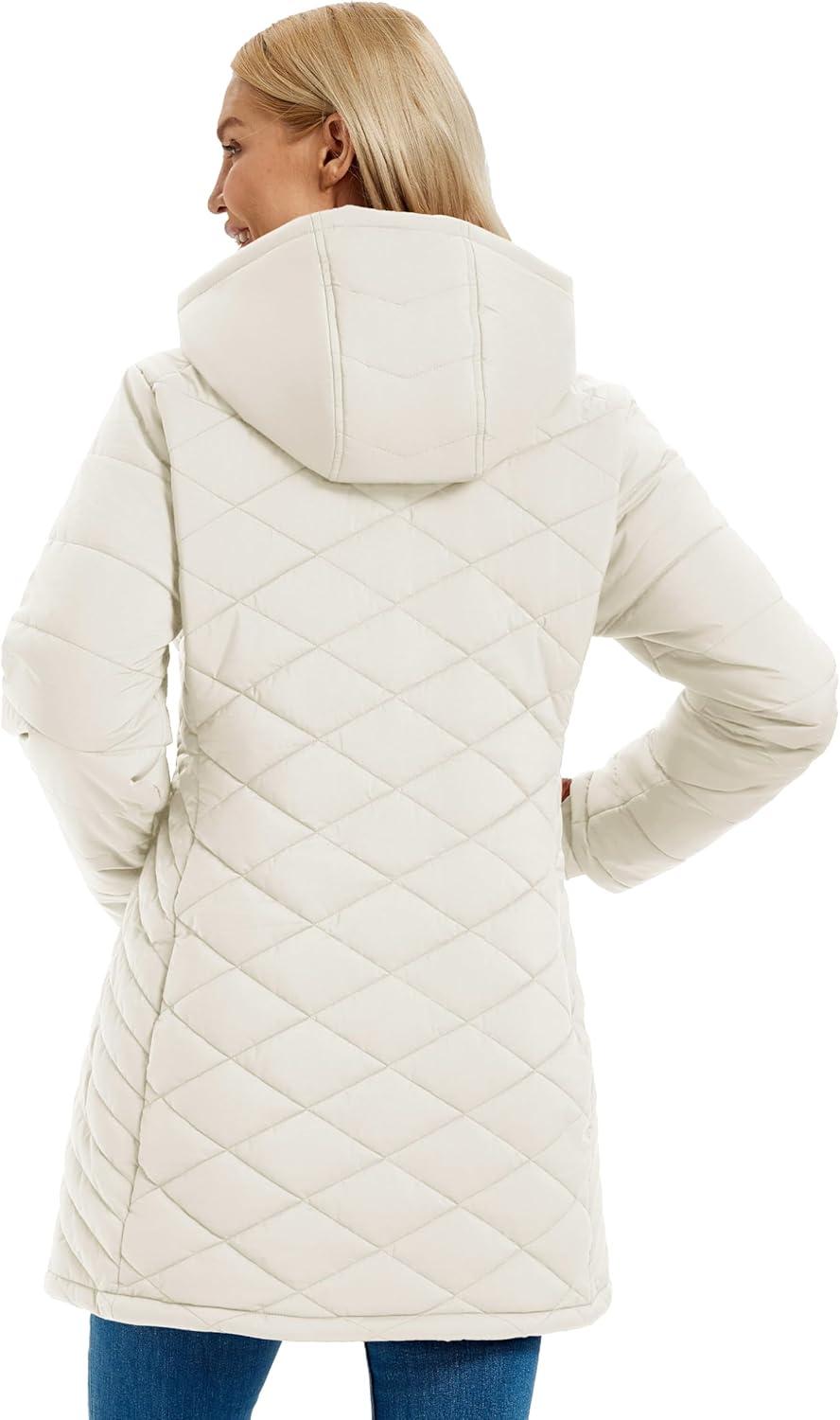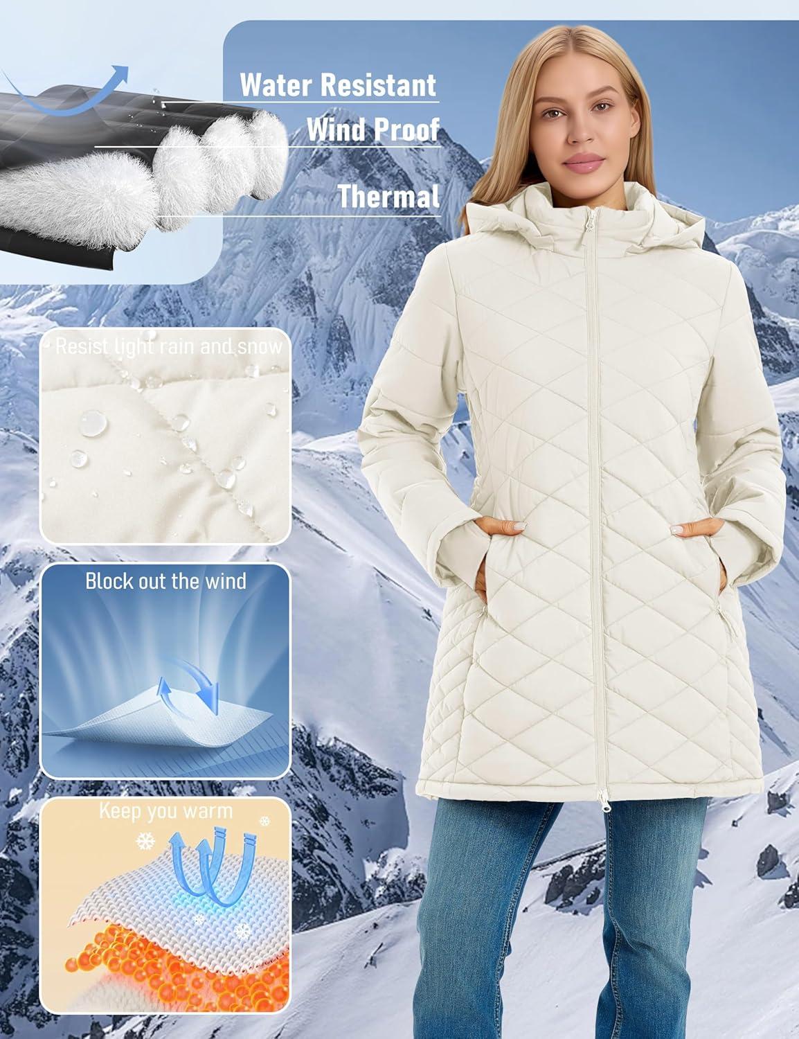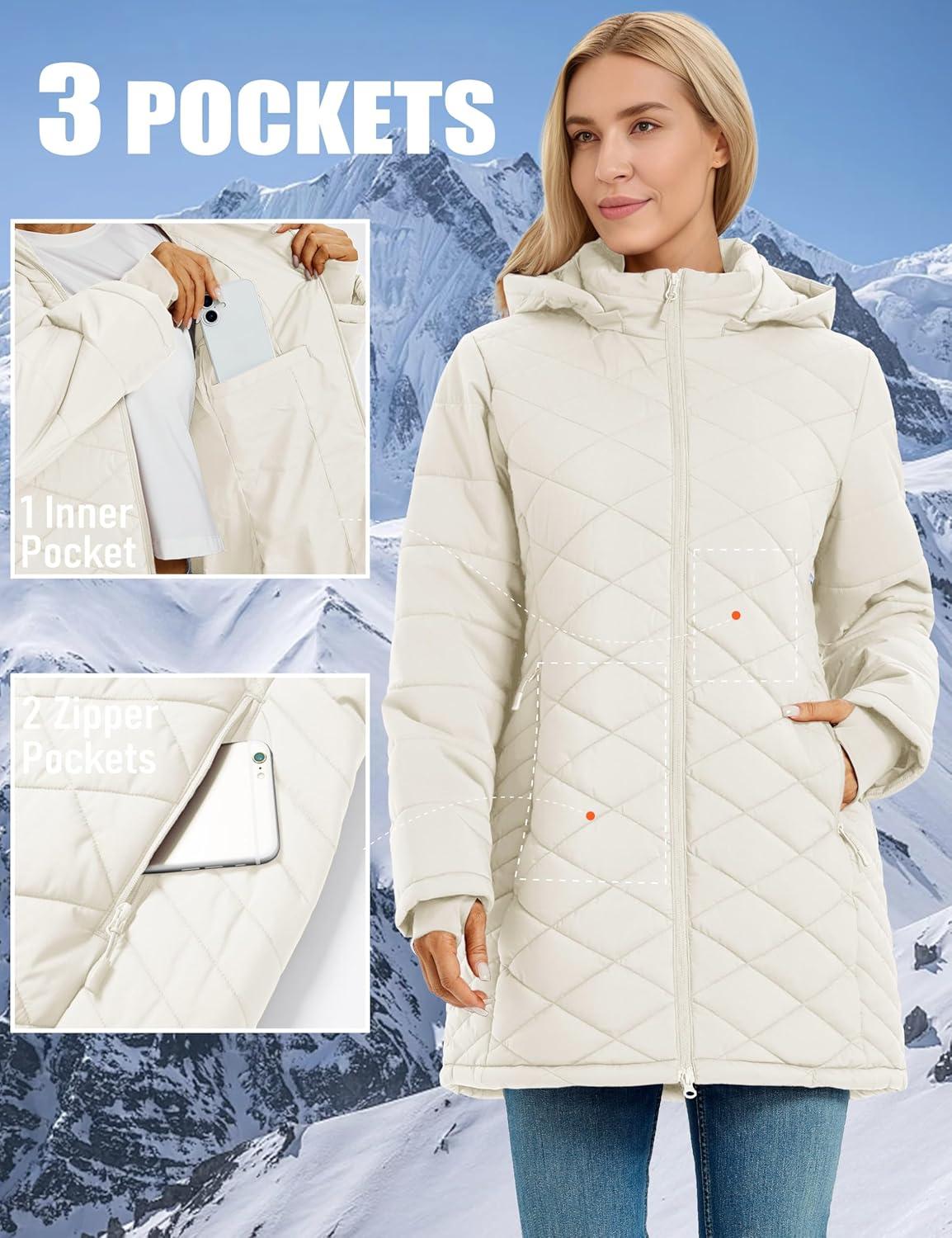 MAGCOMSEN Women’s Long Winter Quilted Puffer Jackets Lightweight Warm Insulated Coat Waterproof Outwear Parkas with Hood(Beige)