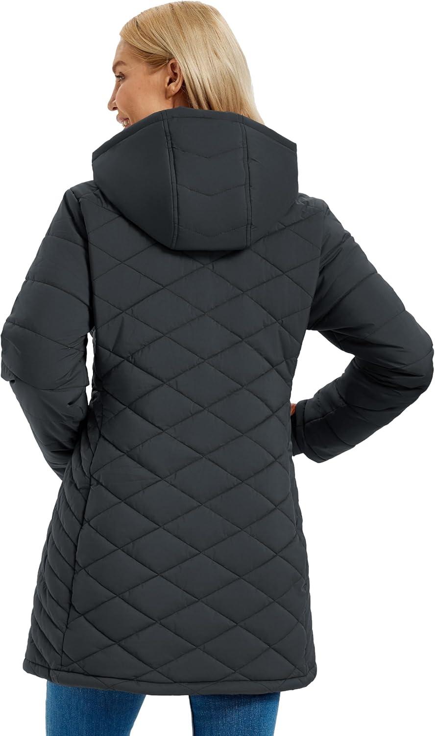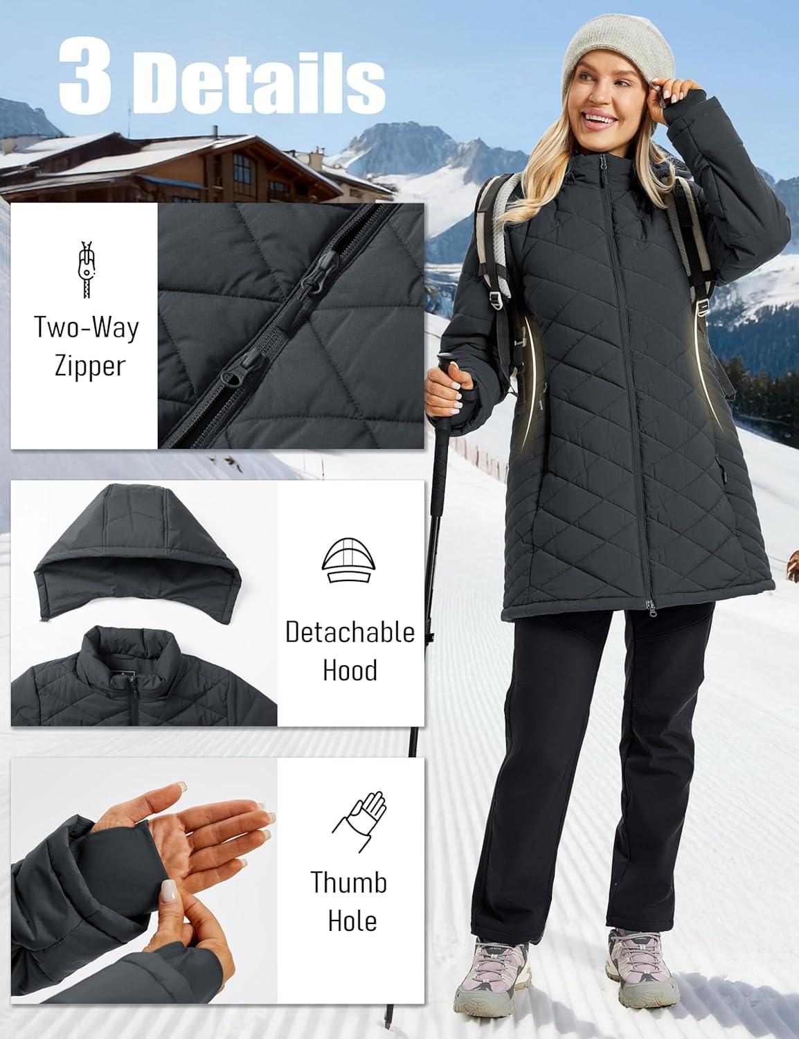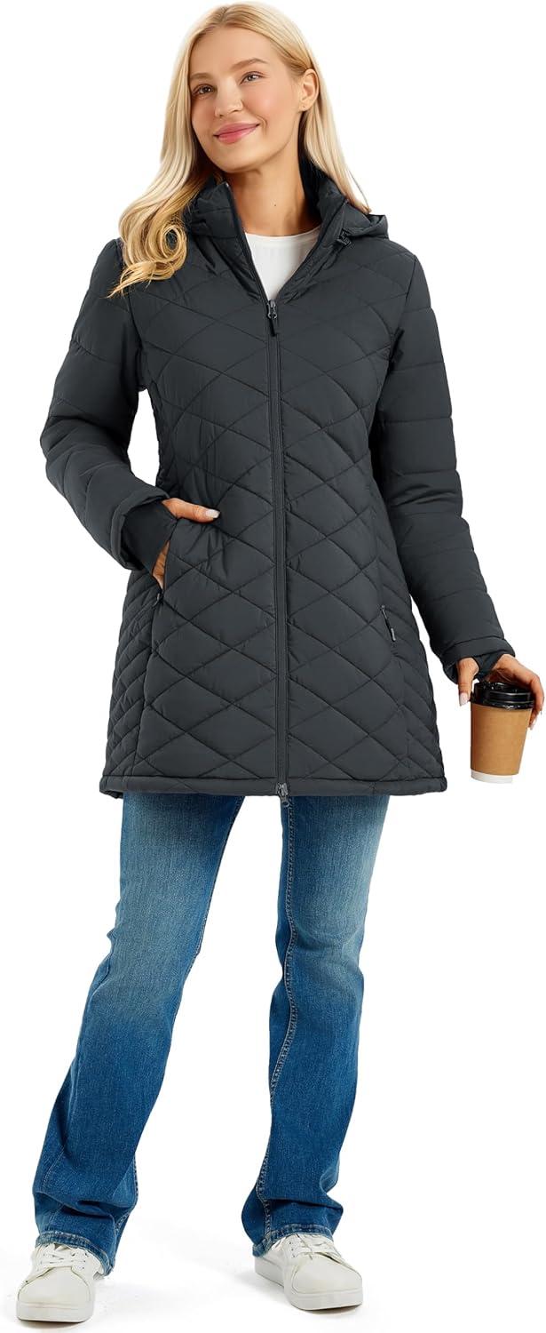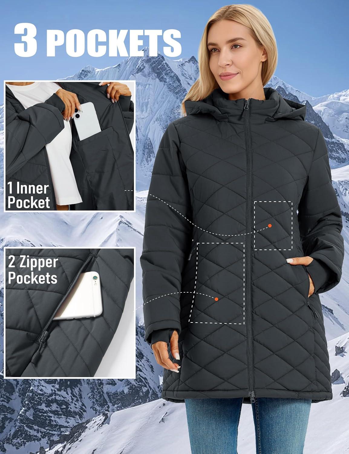 MAGCOMSEN Women’s Long Winter Quilted Puffer Jackets Lightweight Warm Insulated Coat Waterproof Outwear Parkas with Hood(Dark Grey)