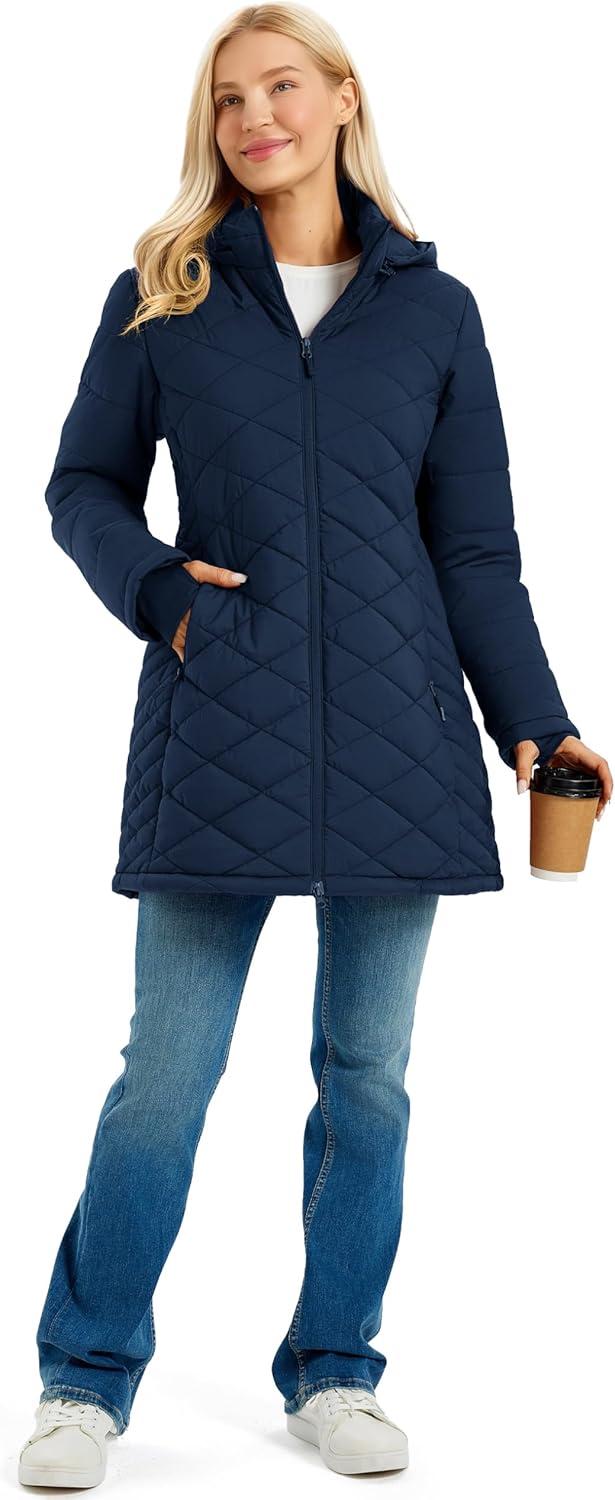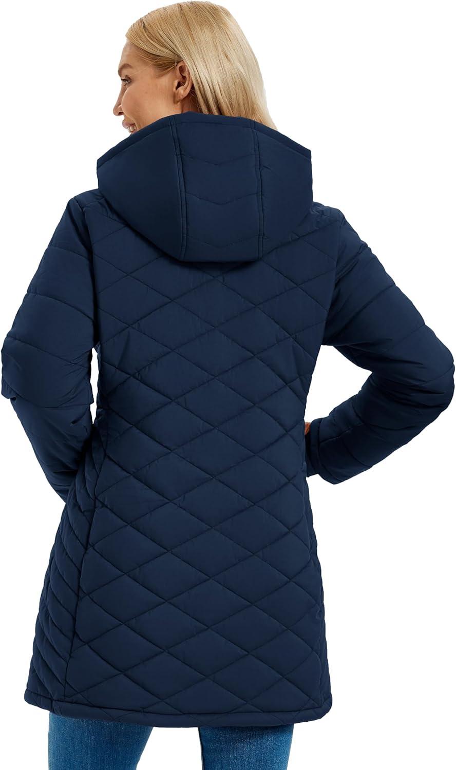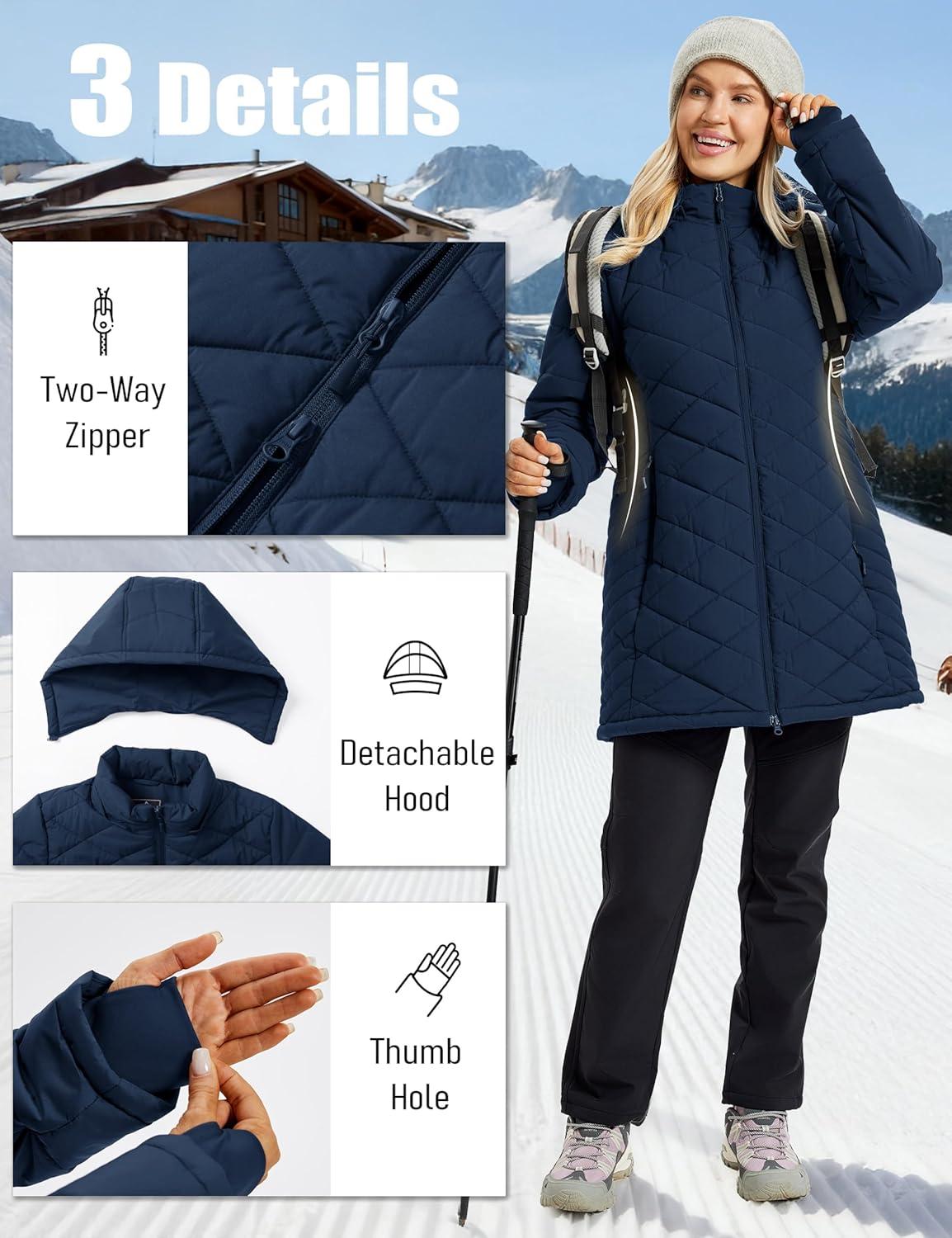 MAGCOMSEN Women’s Long Winter Quilted Puffer Jackets Lightweight Warm Insulated Coat Waterproof Outwear Parkas with Hood(Navy)