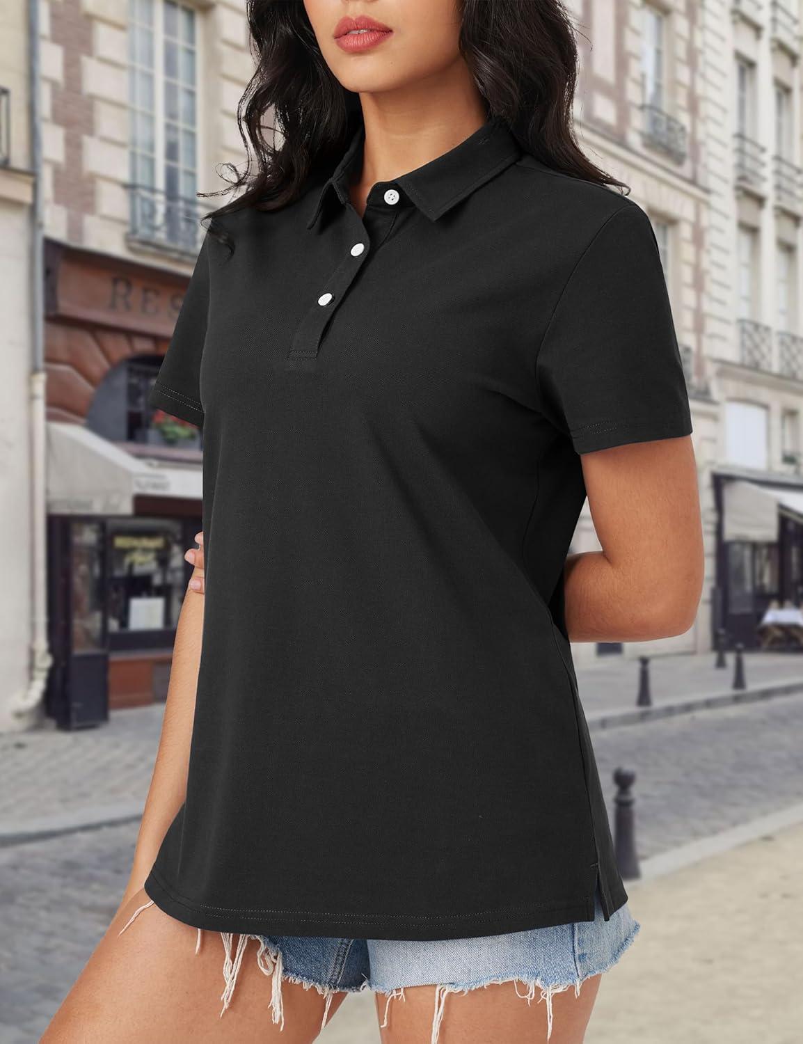 MAGCOMSEN Women’s Polo Shirts Cotton Short Sleeve Shirt 3 Buttons Collared Shirts Summer Casual Wicking Golf Tops(Black)