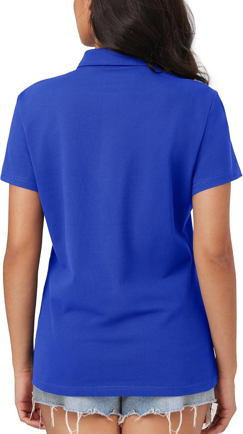 MAGCOMSEN Women’s Polo Shirts Cotton Short Sleeve Shirt 3 Buttons Collared Shirts Summer Casual Wicking Golf Tops(Bright Blue)