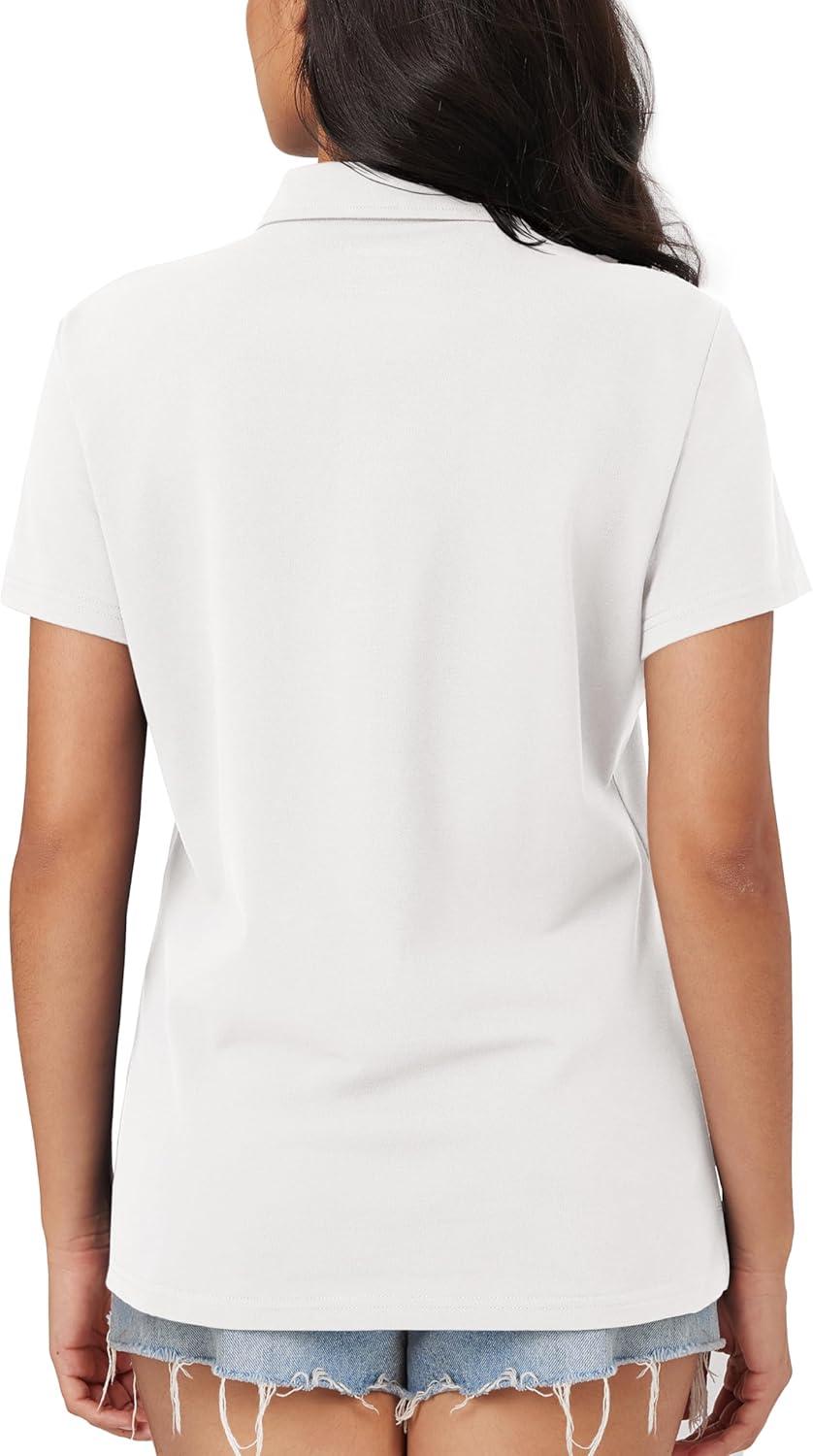 MAGCOMSEN Women’s Polo Shirts Cotton Short Sleeve Shirt 3 Buttons Collared Shirts Summer Casual Wicking Golf Tops(White)