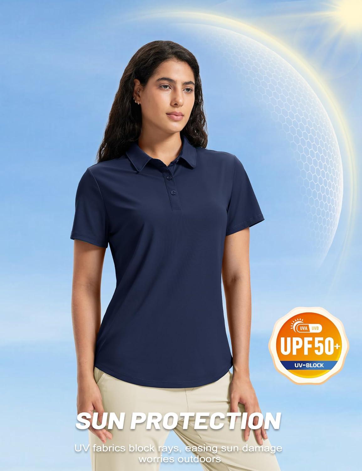 MAGCOMSEN Women’s Polo Shirts Short Sleeve UPF 50+ Golf Collared Shirt for Work Quick Dry Tennis Top Moisture Wick(Navy)
