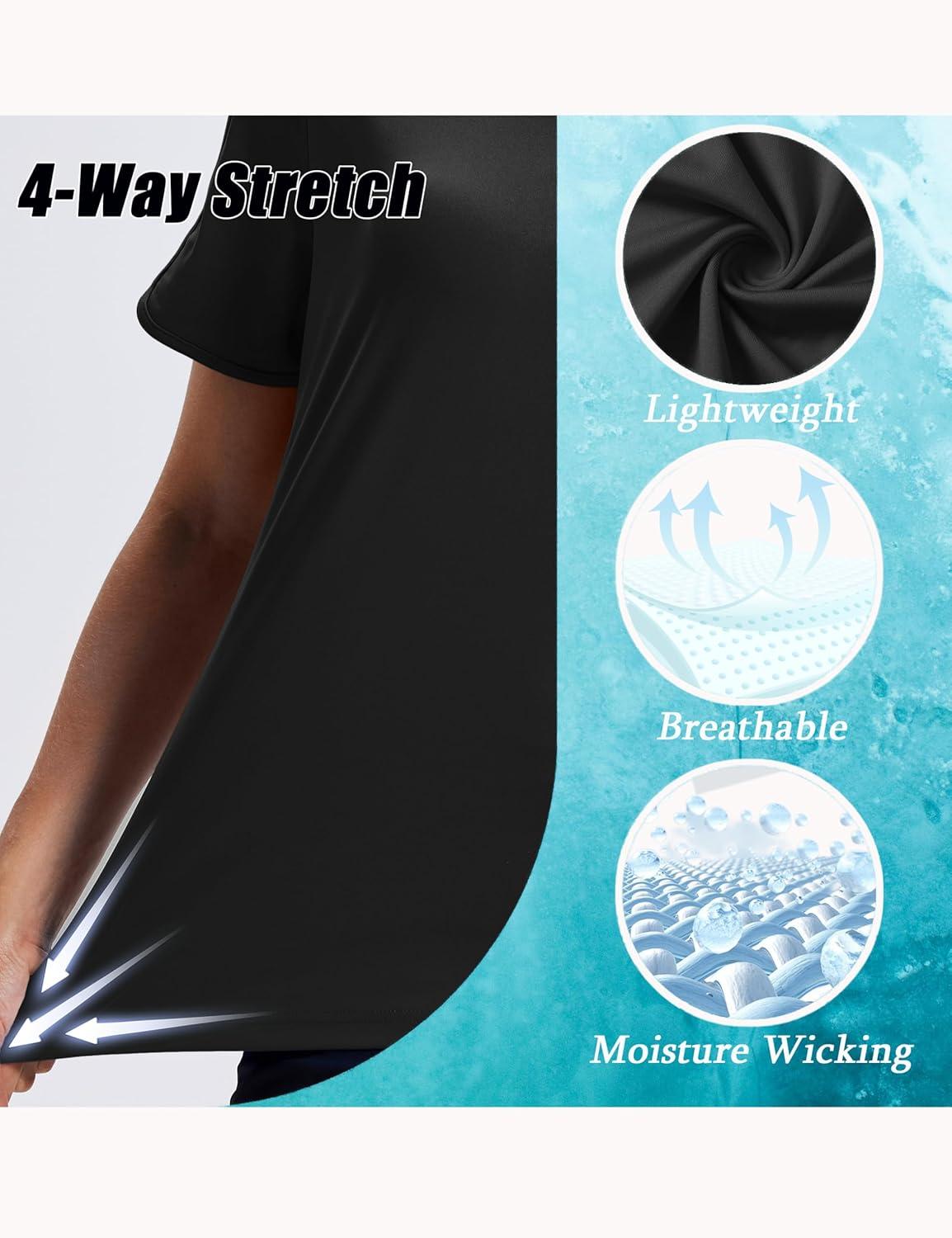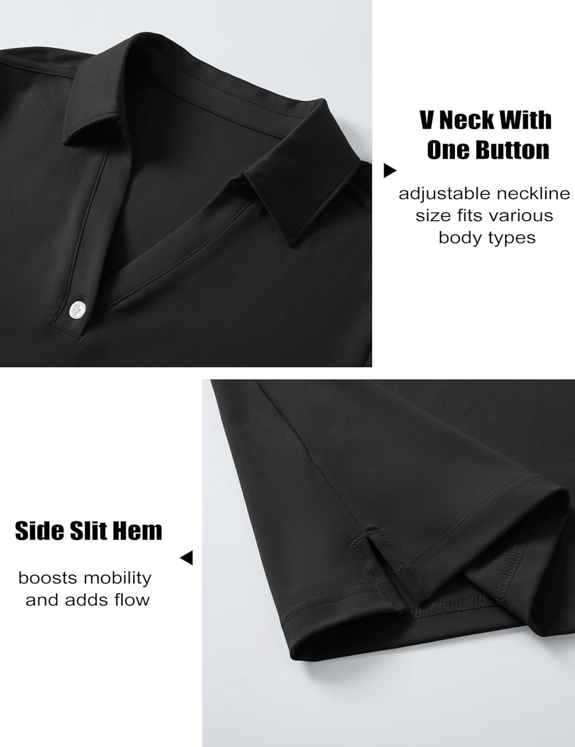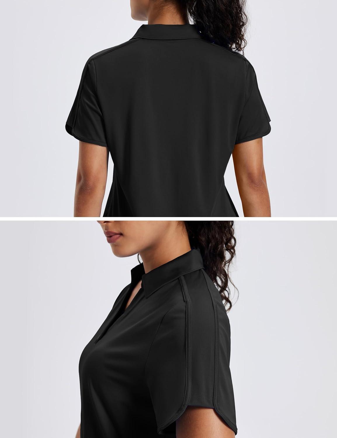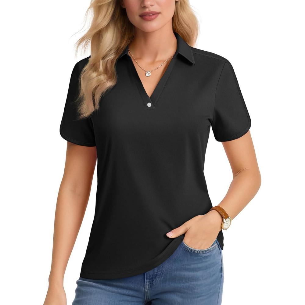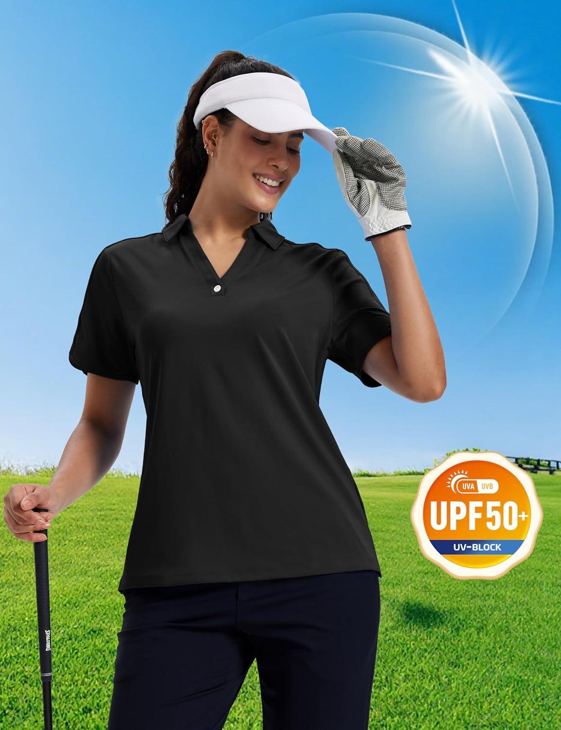 MAGCOMSEN Women’s Polo Shirts Short Sleeve UPF 50+ Sun Protection Golf Shirt V Neck Collared Tops Dry Fit(Black)