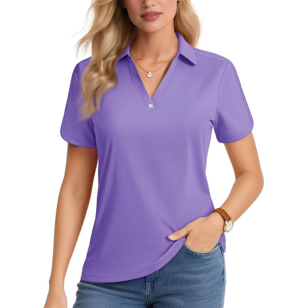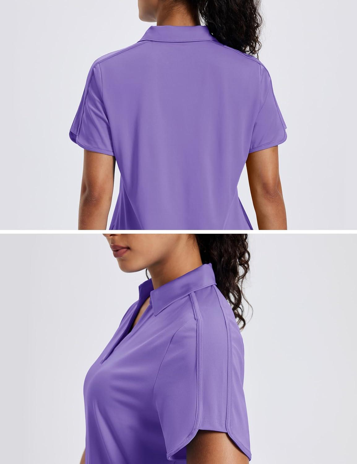 MAGCOMSEN Women’s Polo Shirts Short Sleeve UPF 50+ Sun Protection Golf Shirt V Neck Collared Tops Dry Fit(Light Purple)