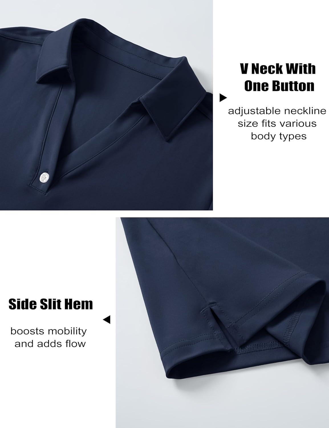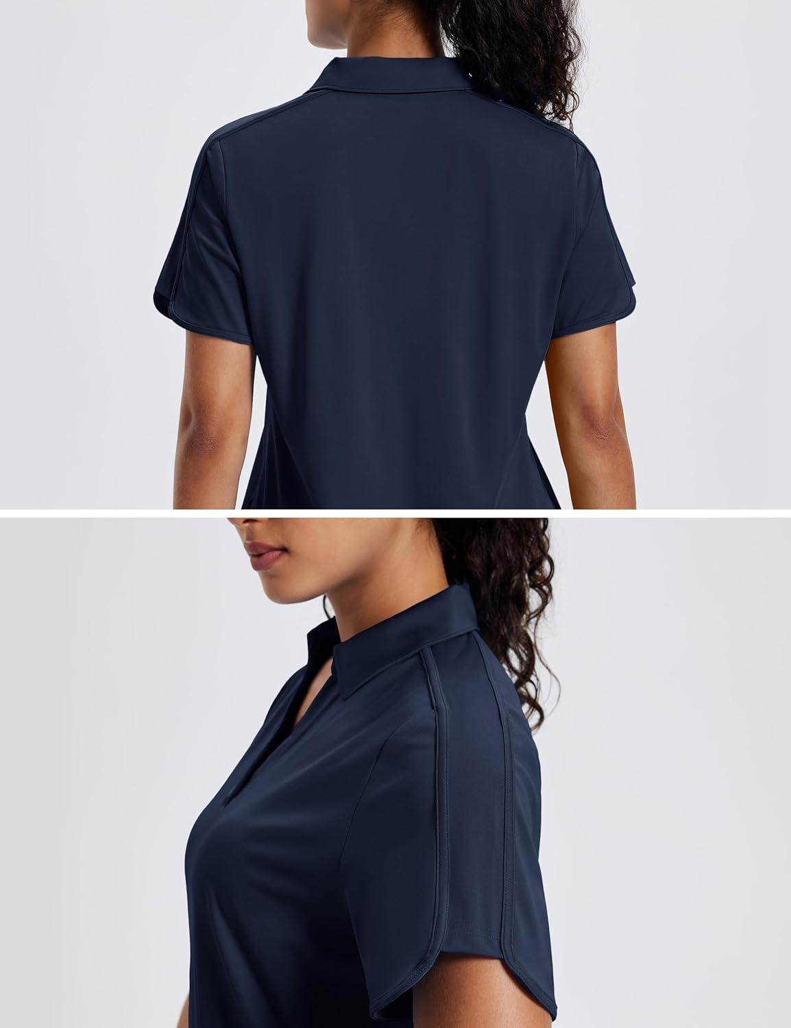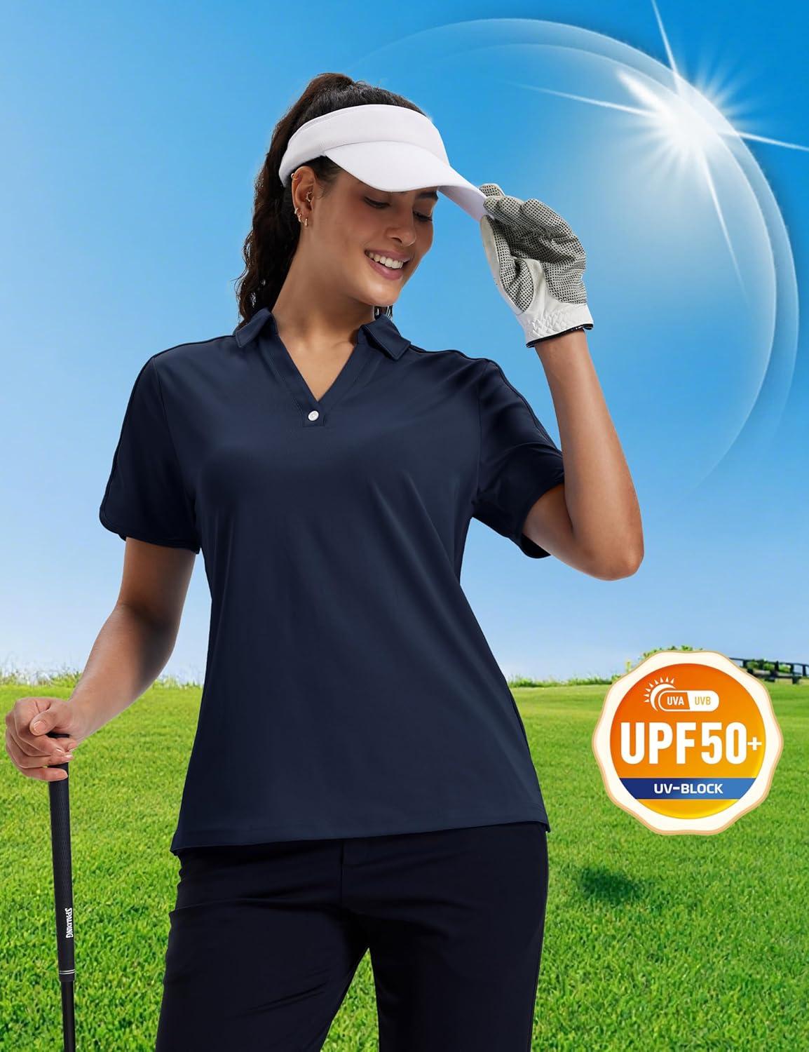 MAGCOMSEN Women’s Polo Shirts Short Sleeve UPF 50+ Sun Protection Golf Shirt V Neck Collared Tops Dry Fit(Navy)