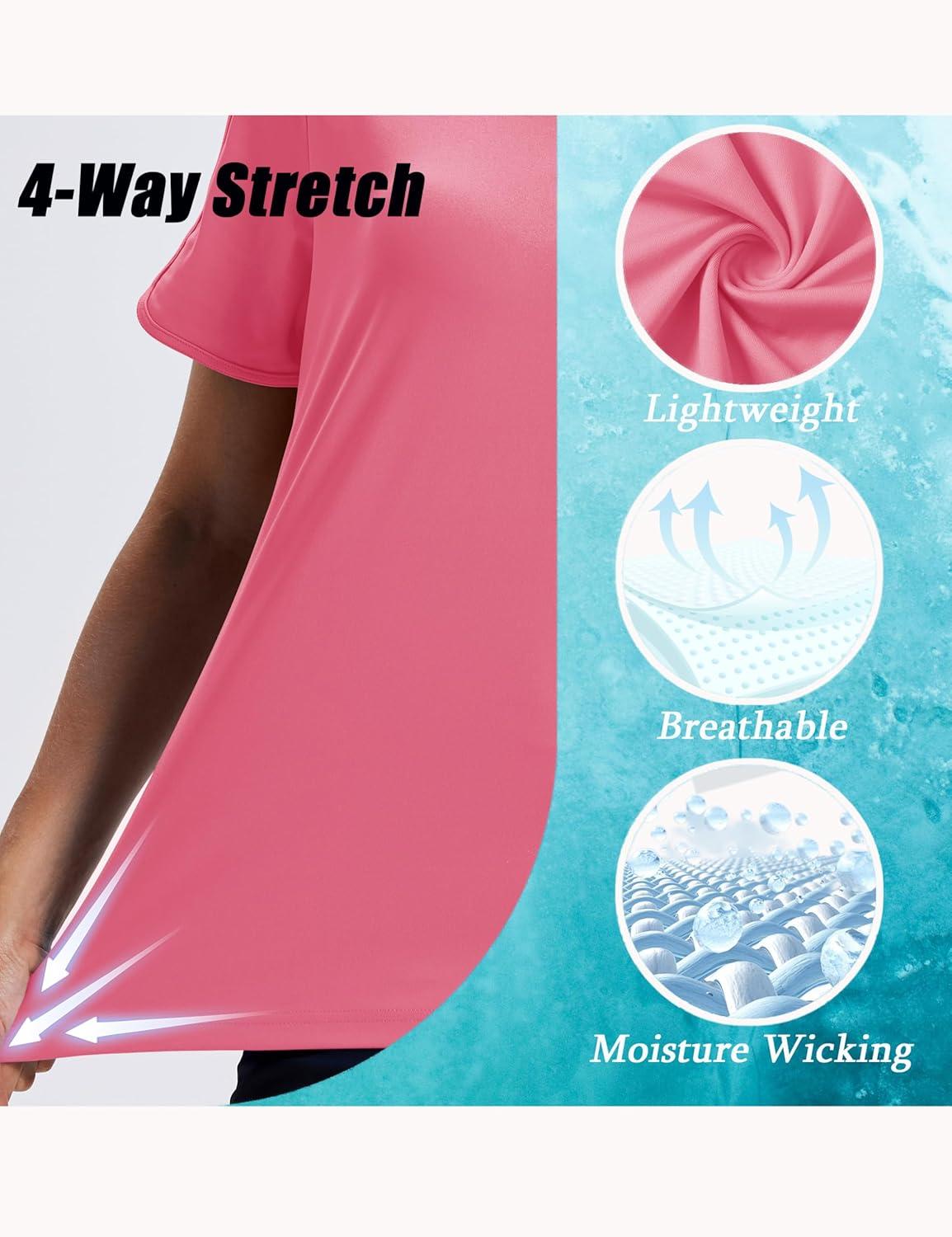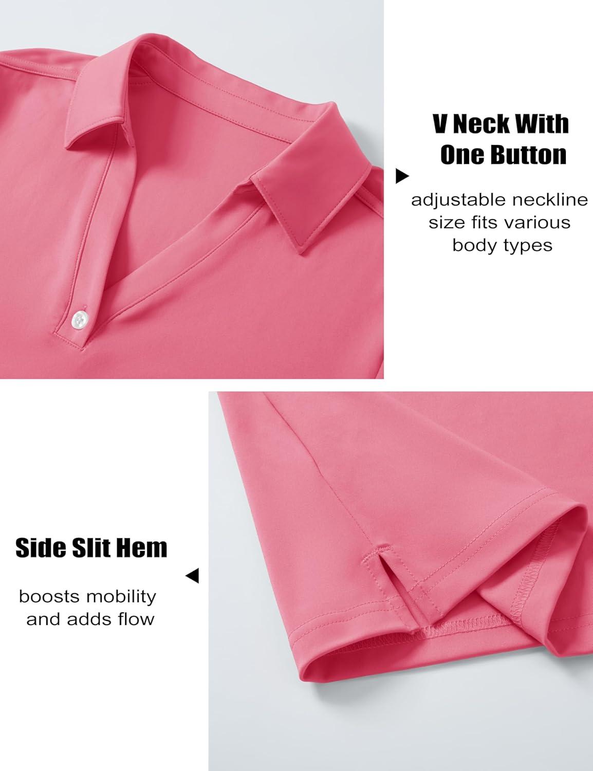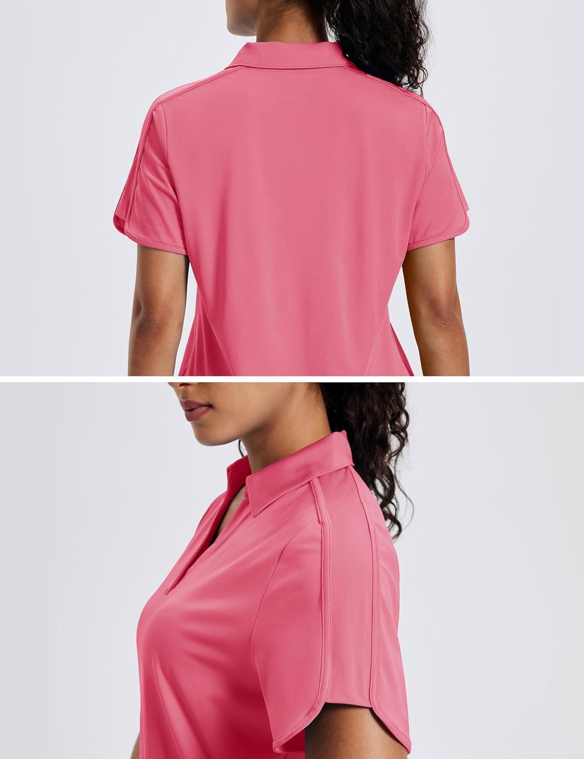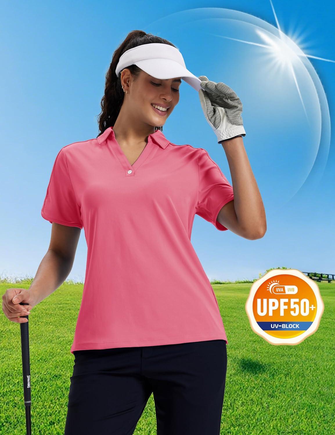 MAGCOMSEN Women’s Polo Shirts Short Sleeve UPF 50+ Sun Protection Golf Shirt V Neck Collared Tops Dry Fit(Rose Red)