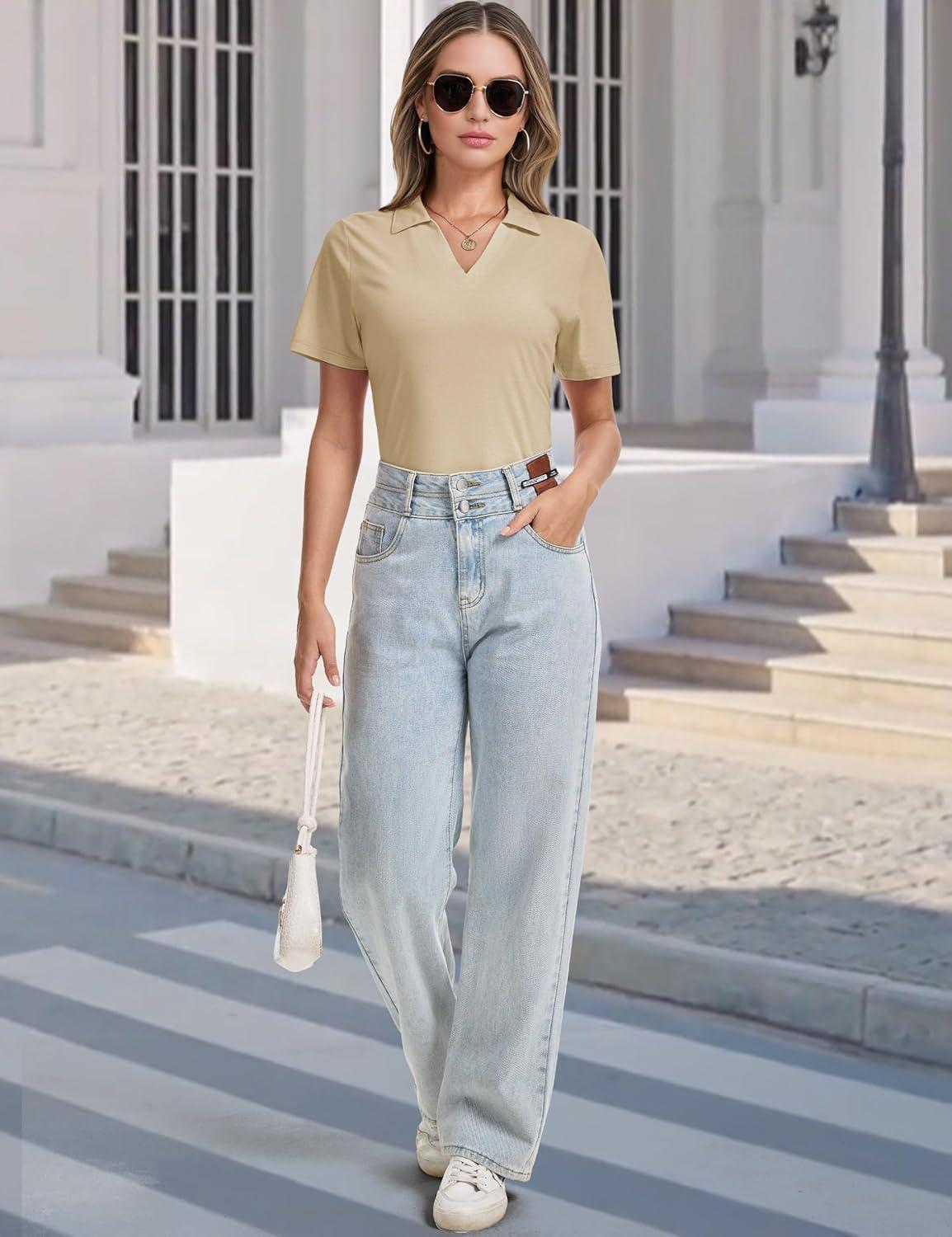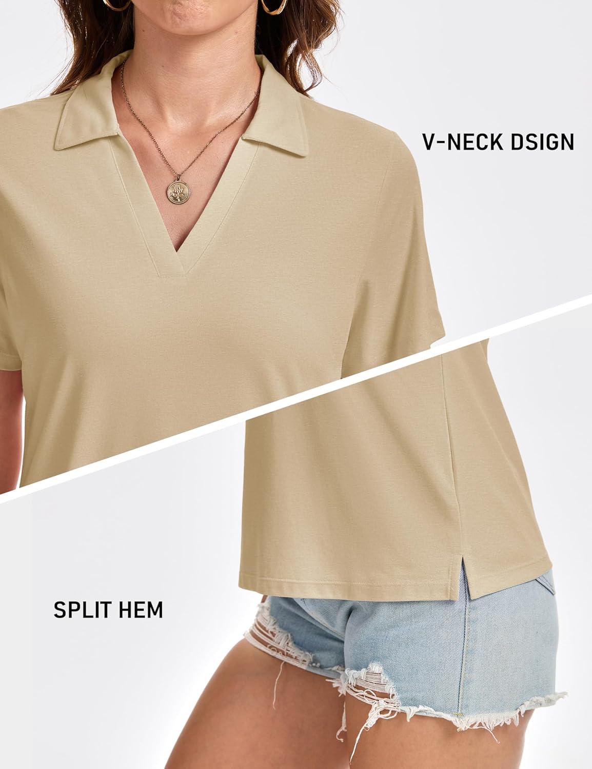 Women's Polo Shirts Summer UPF 50+ V Neck Casual Tshirts Solid Basic Tees