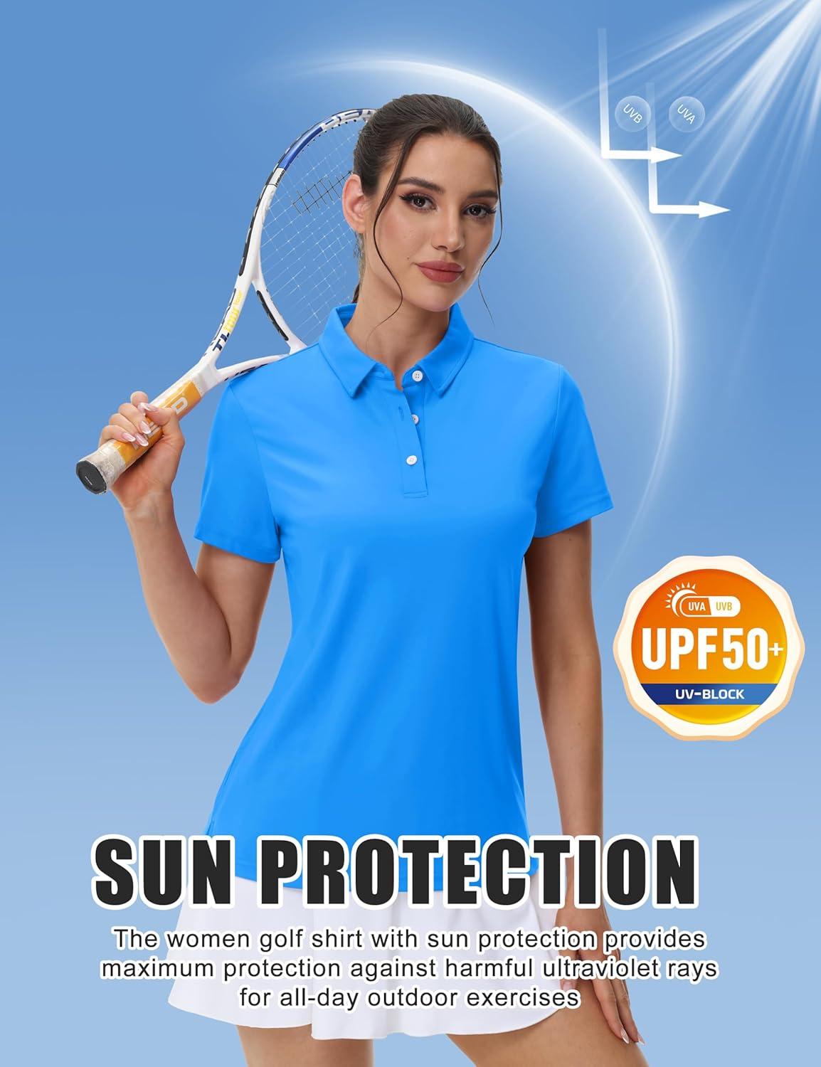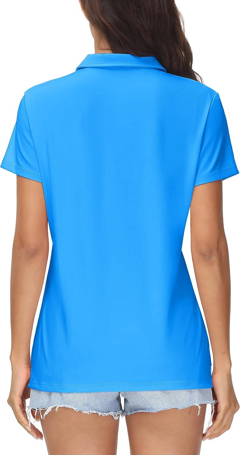 MAGCOMSEN Women’s Polos Golf Shirts Short Sleeve UPF 50+ Collared Shirt Quick Dry Tennis Work Athletic Tops(Azure)