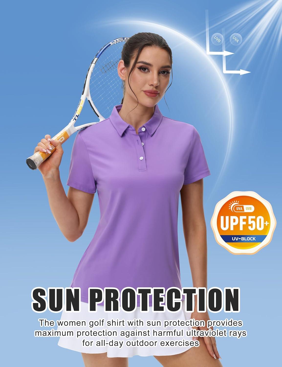 MAGCOMSEN Women’s Polos Golf Shirts Short Sleeve UPF 50+ Collared Shirt Quick Dry Tennis Work Athletic Tops(Light Purple)