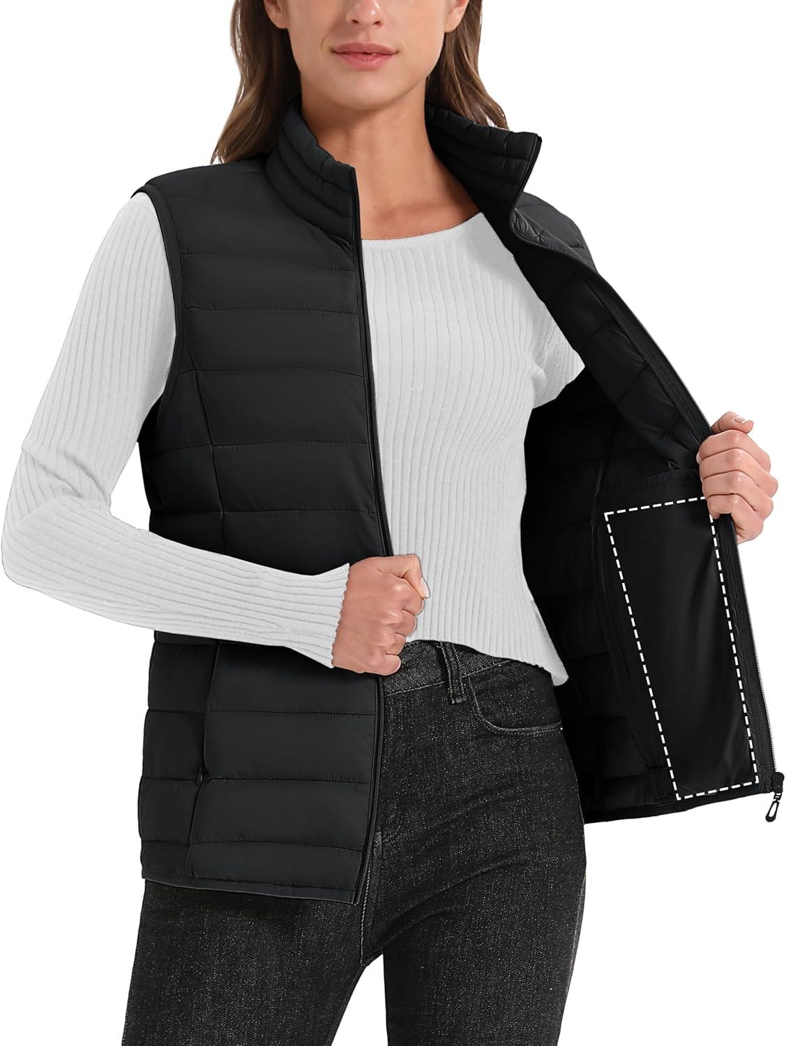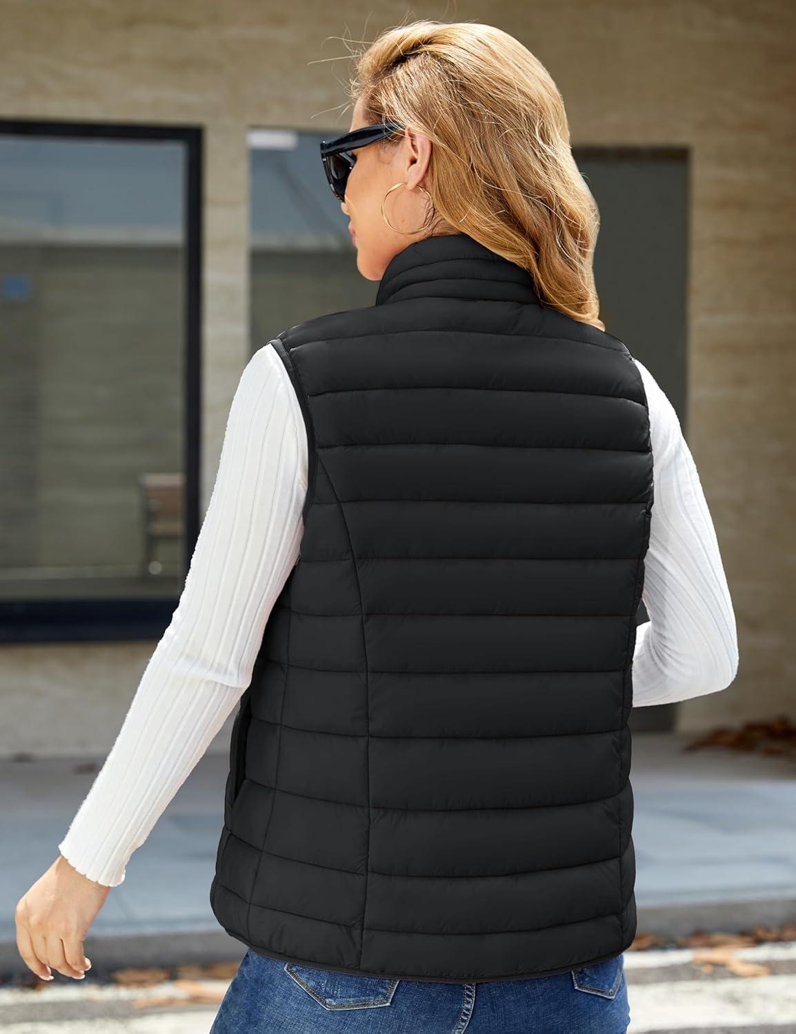 MAGCOMSEN Womens Puffer Vest Sleeveless Lightweight Winter Jackets Quilted Zip Up Coats Stand Collar Padded Outerwear Vests(Black)