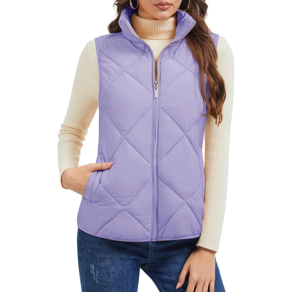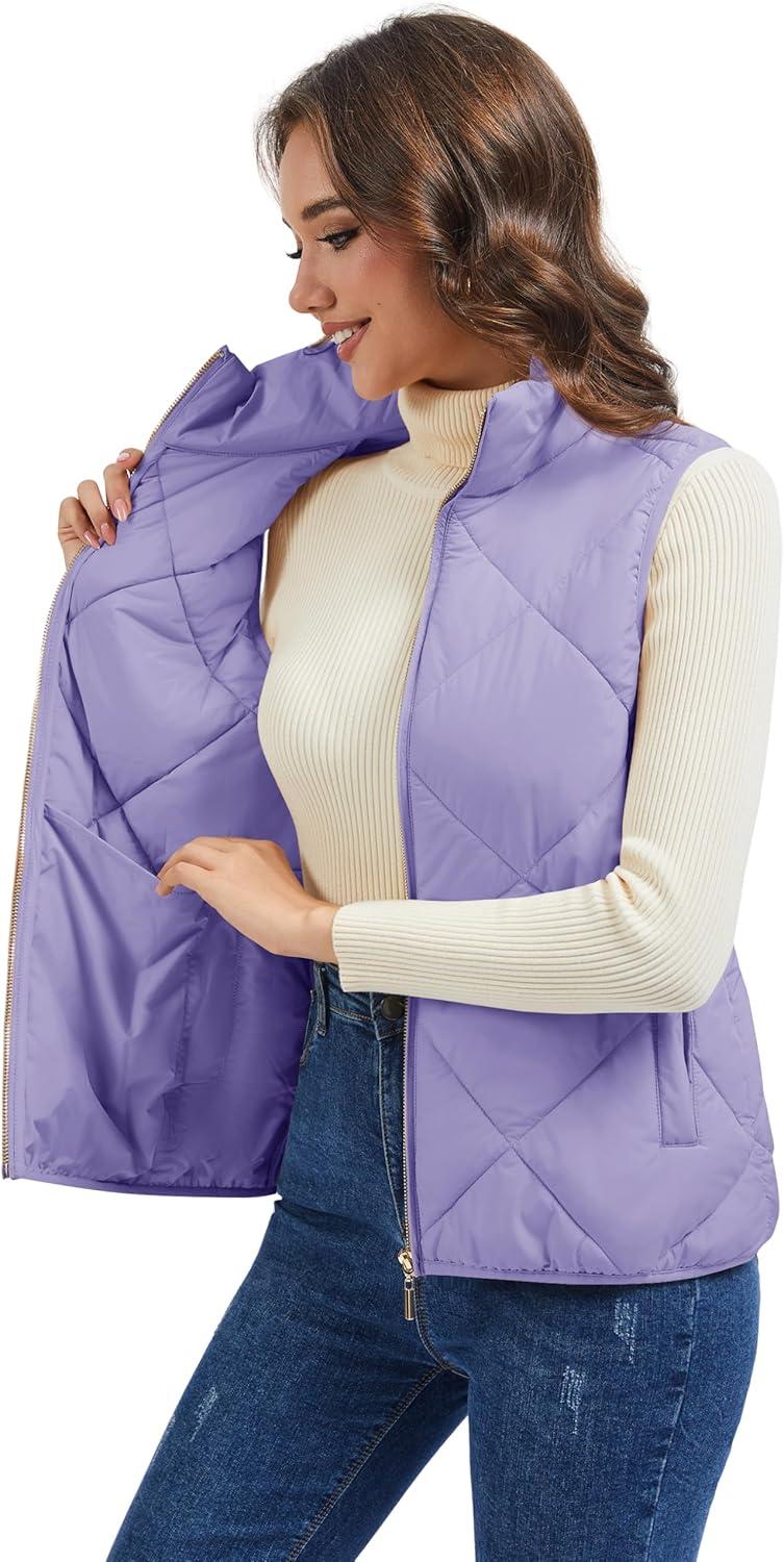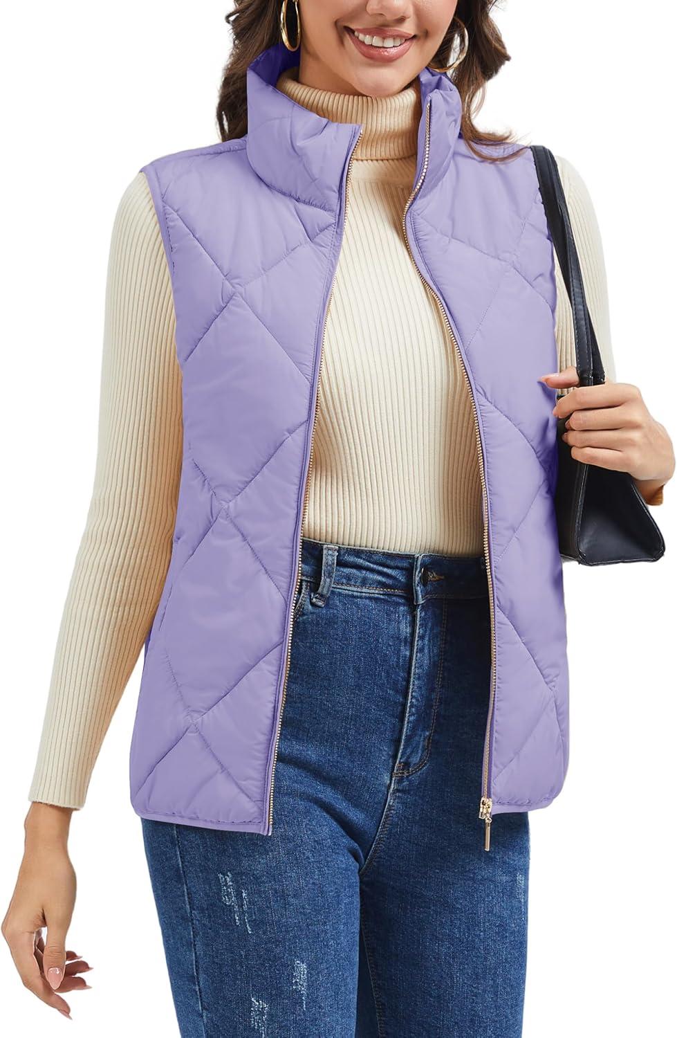 MAGCOMSEN Womens Puffer Vest Sleeveless Lightweight Winter Jackets Quilted Zip Up Coats Stand Collar Padded Outerwear Vests(Taropurple)