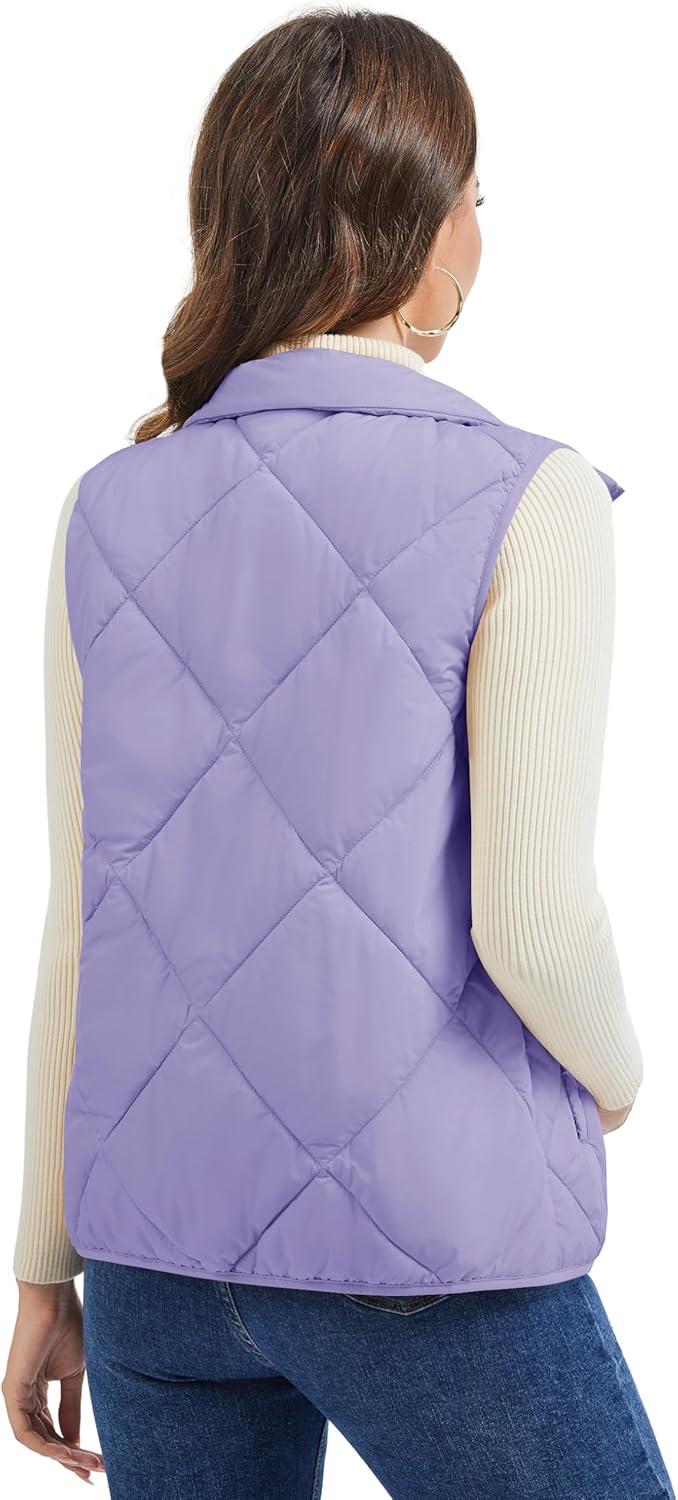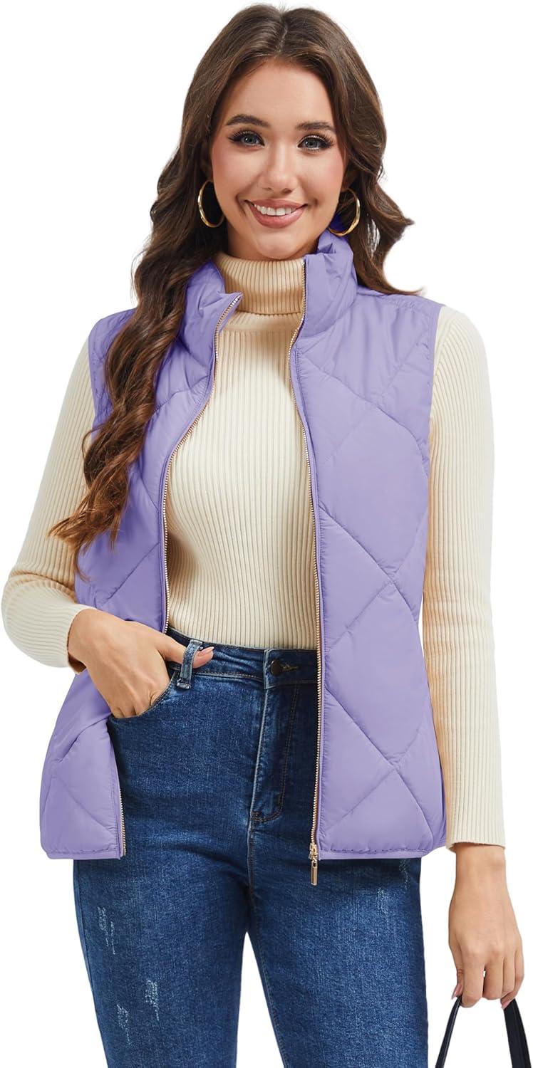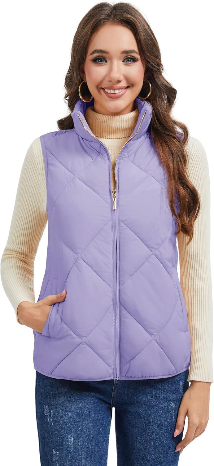 MAGCOMSEN Womens Puffer Vest Sleeveless Lightweight Winter Jackets Quilted Zip Up Coats Stand Collar Padded Outerwear Vests(Taropurple)