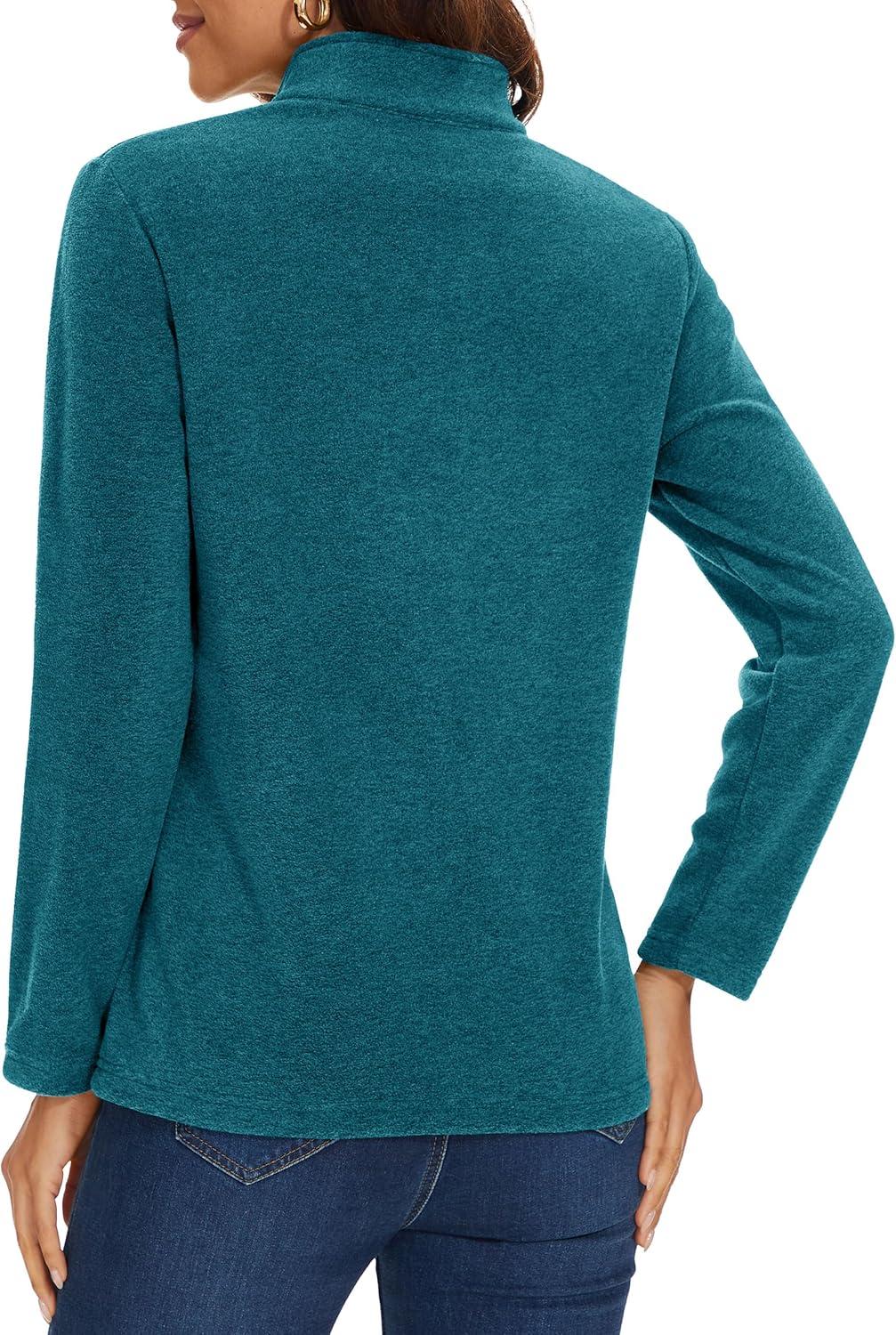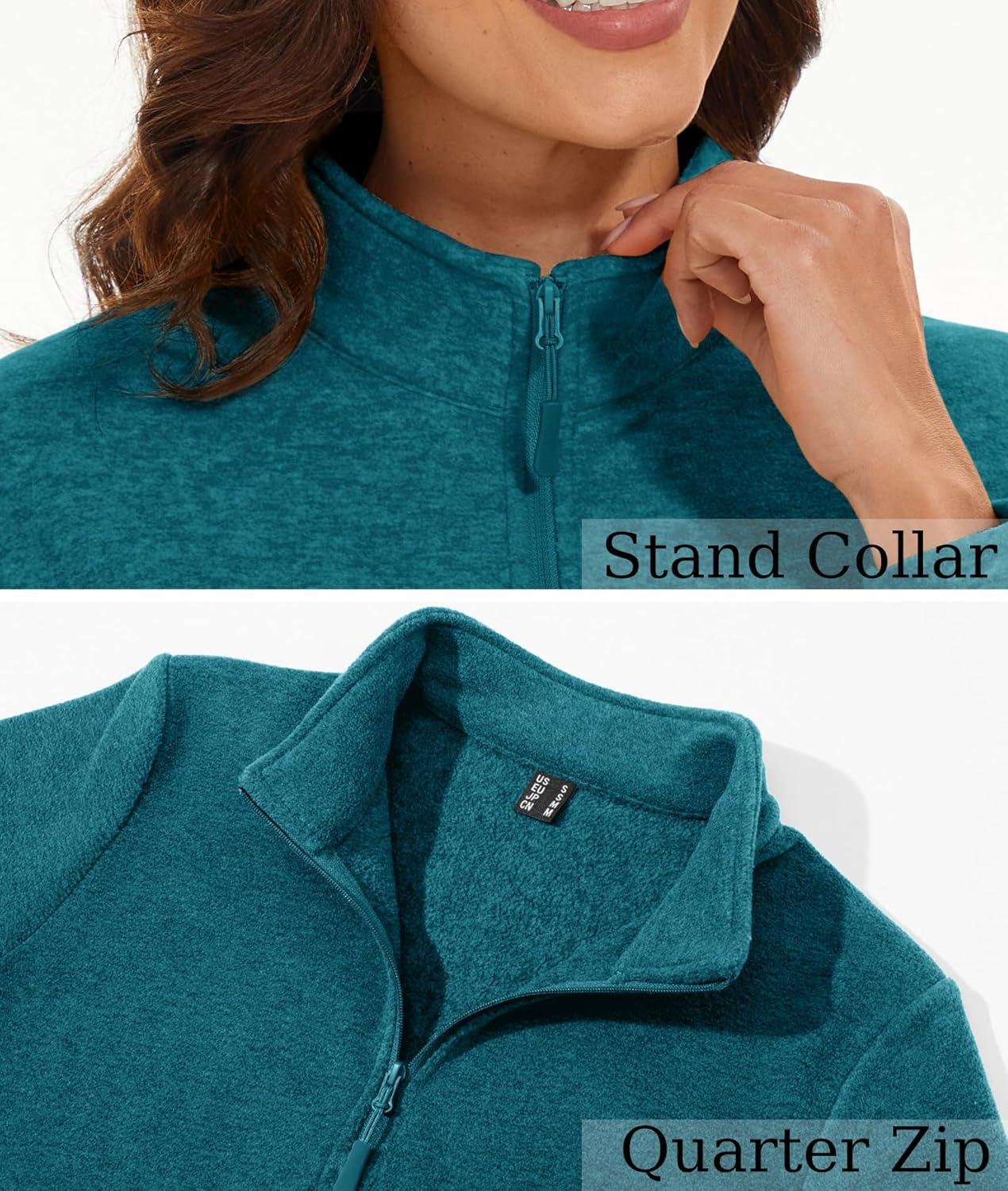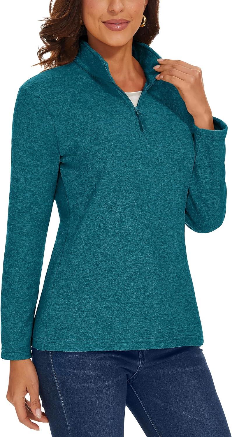 MAGCOMSEN Women’s Quarter Zip Pullover Polar Fleece Sweatshirts Lightweight Stand-Collar Jacket Warm Tops(Peacock Blue)