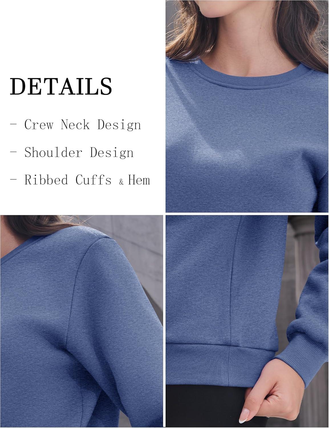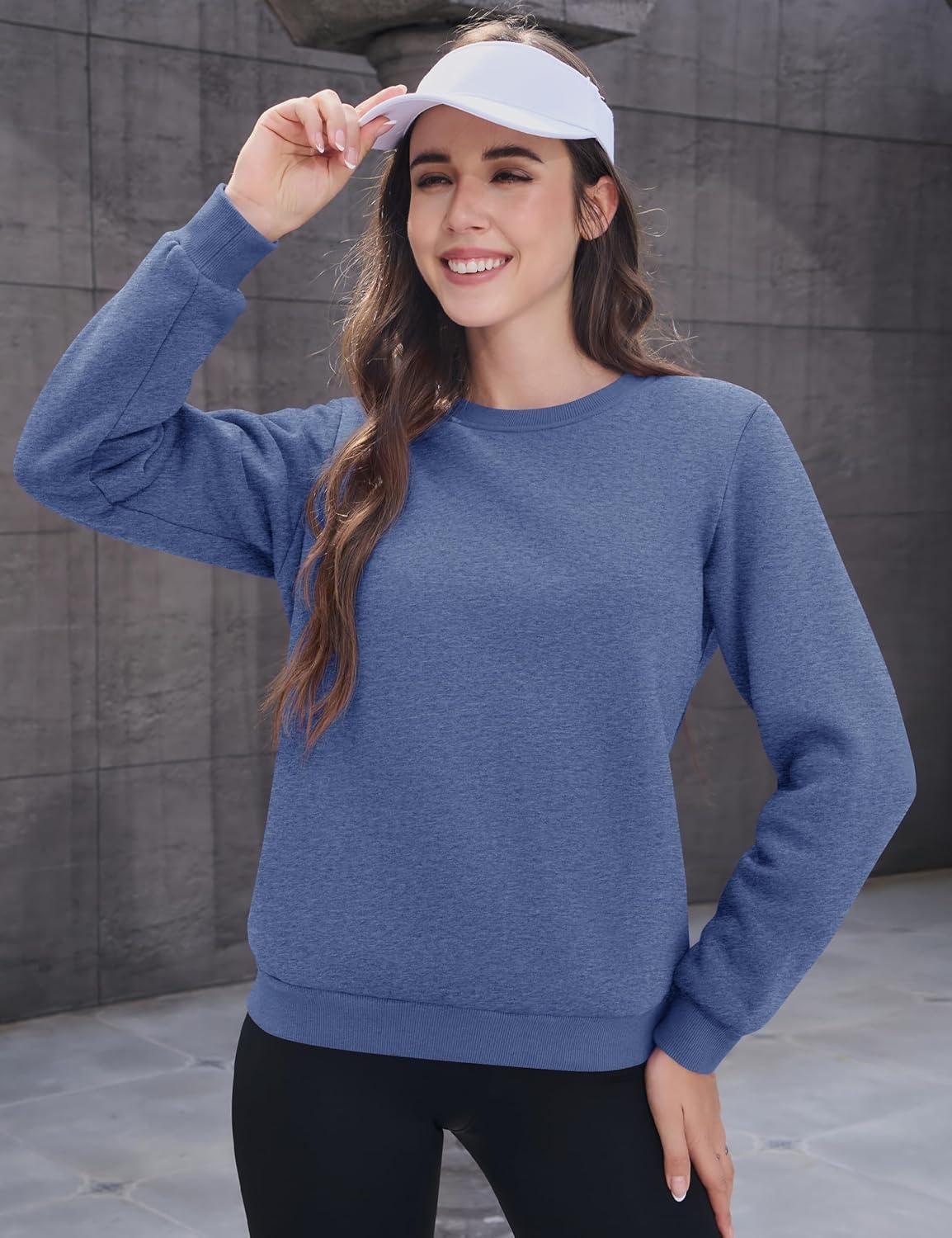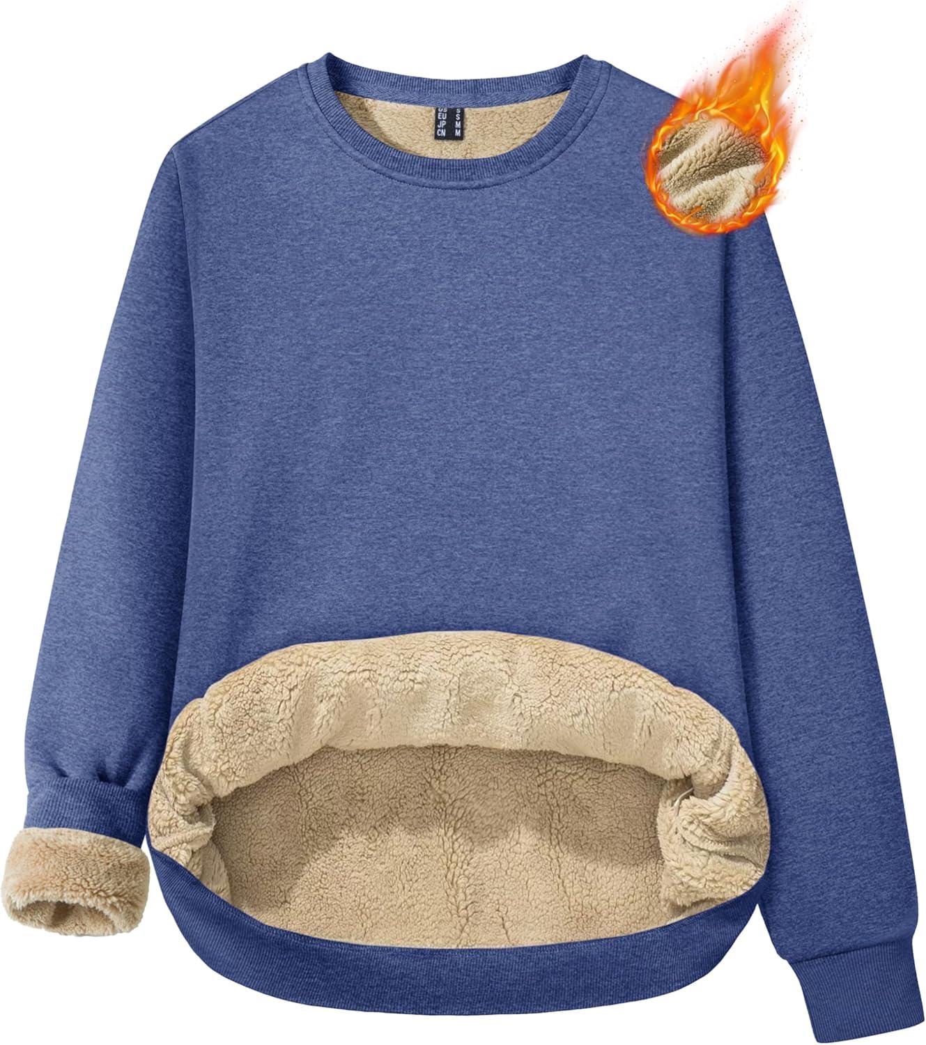 MAGCOMSEN Women’s Sherpa Lined Sweatshirts Thermal Casual Crewneck Fleece Pullover Winter Warm Thick Tops(Grey Blue)