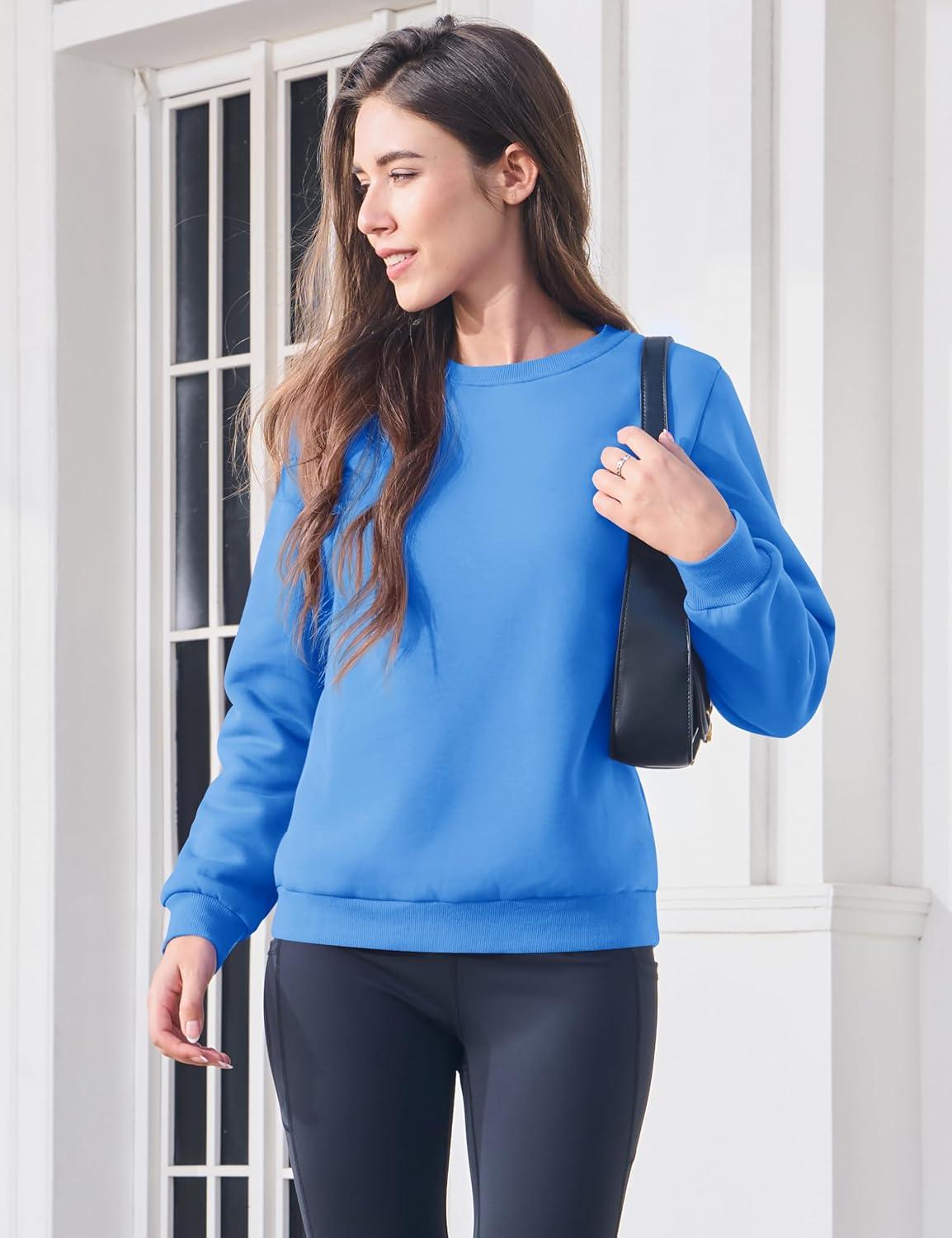 MAGCOMSEN Women’s Sherpa Lined Sweatshirts Thermal Casual Crewneck Fleece Pullover Winter Warm Thick Tops(Ice Blue)