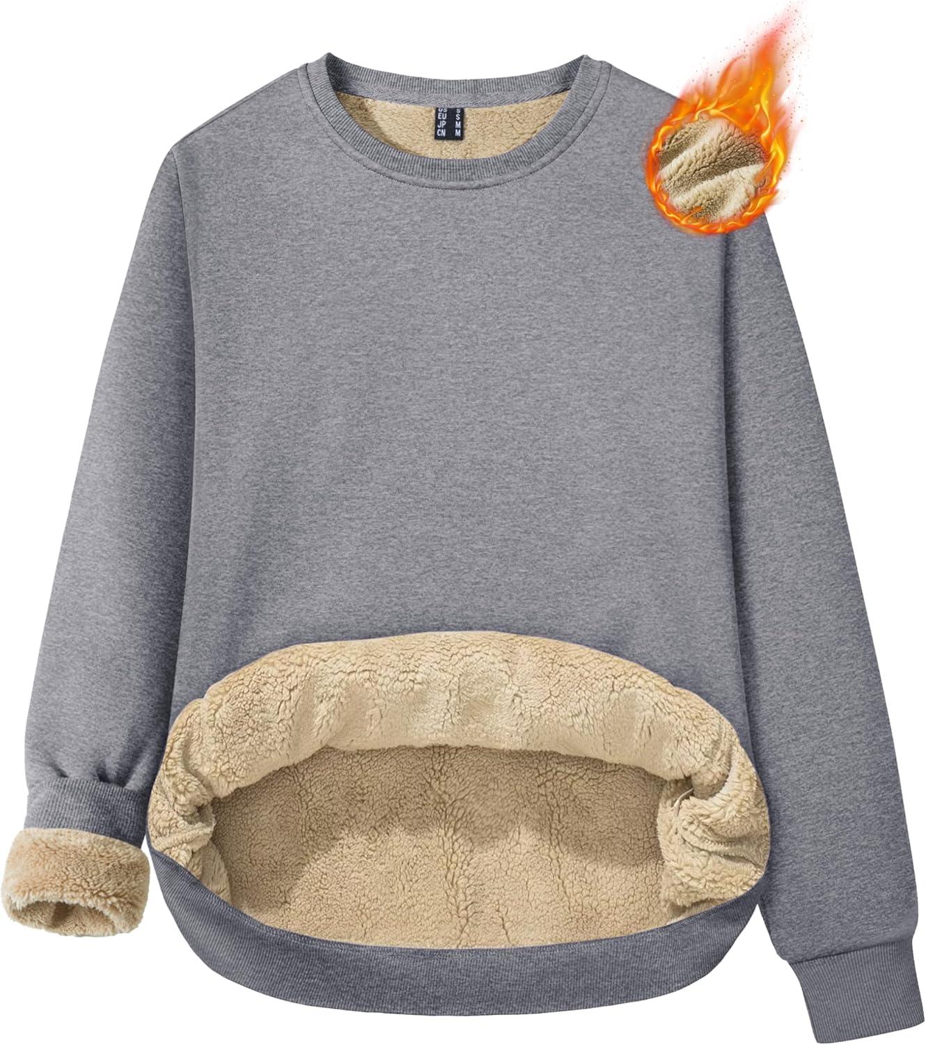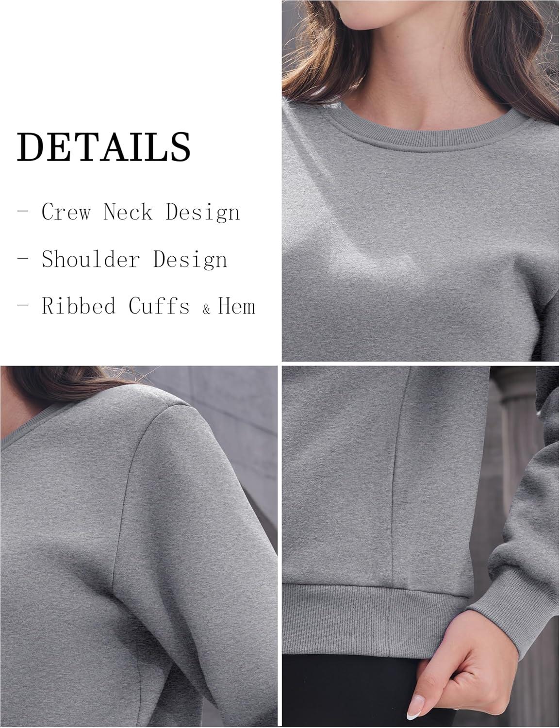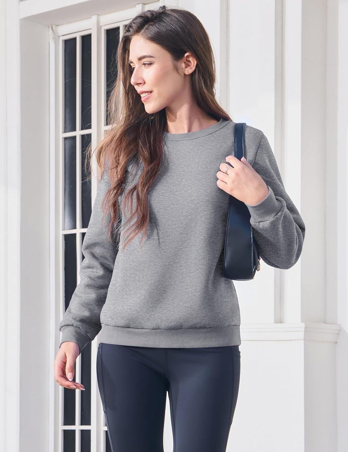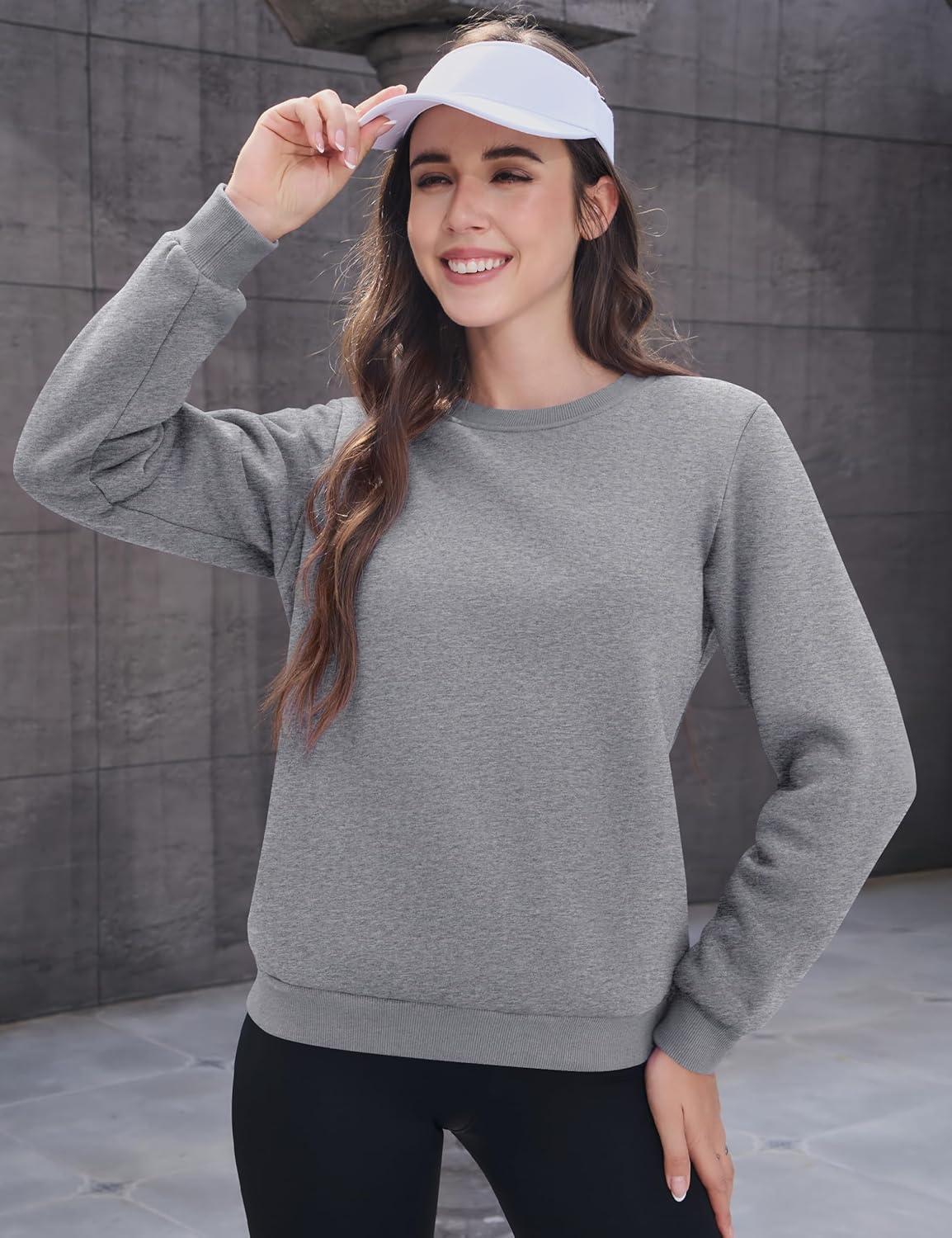 MAGCOMSEN Women’s Sherpa Lined Sweatshirts Thermal Casual Crewneck Fleece Pullover Winter Warm Thick Tops(Light Grey)