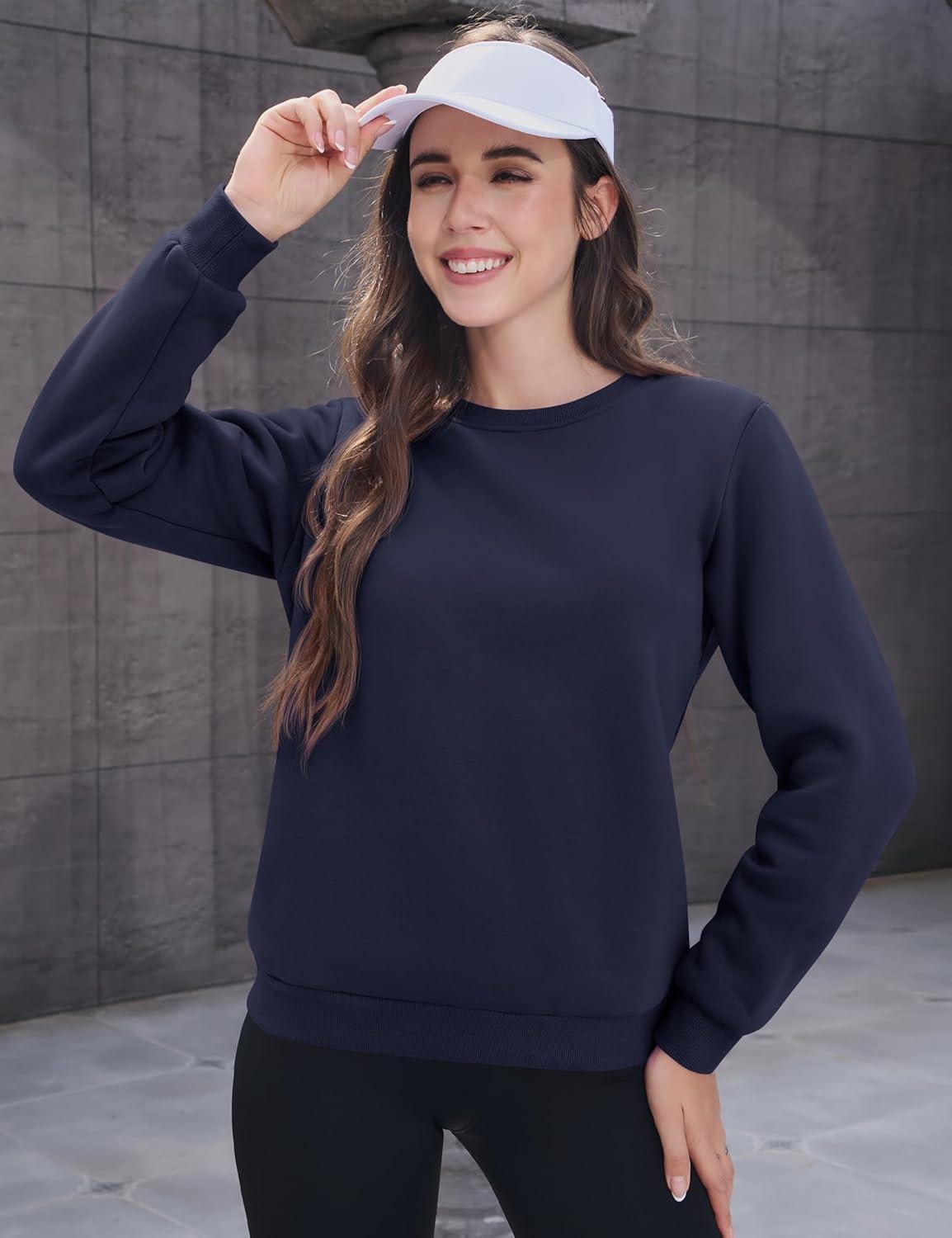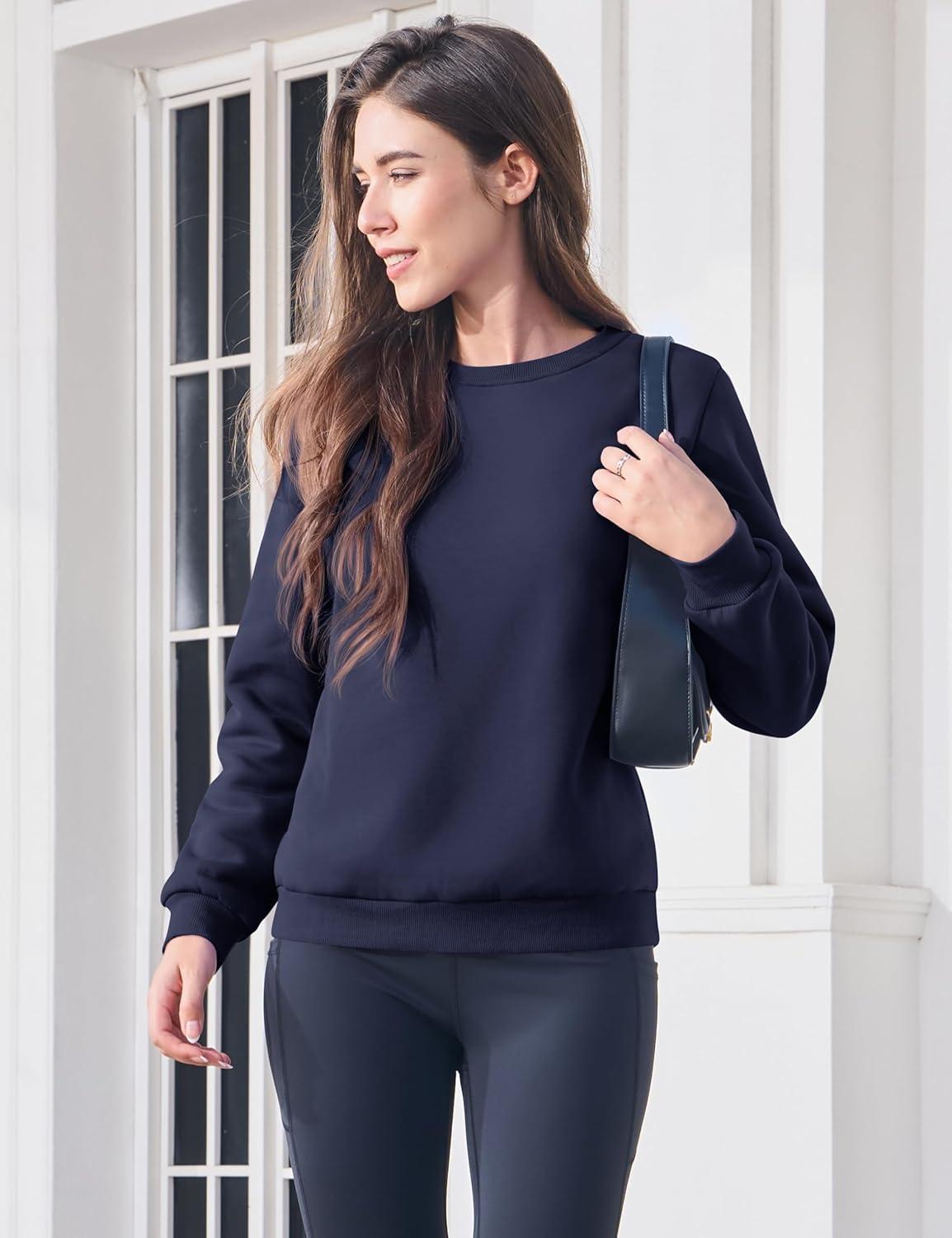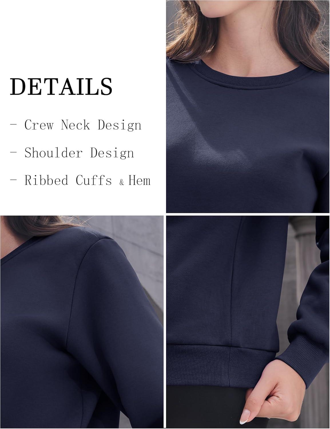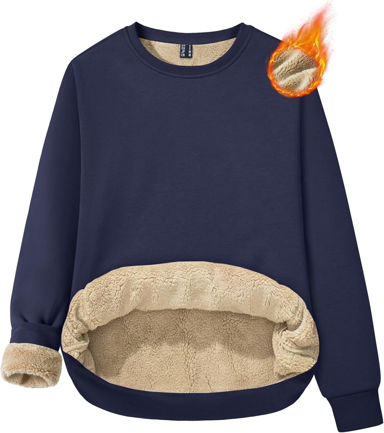 MAGCOMSEN Women’s Sherpa Lined Sweatshirts Thermal Casual Crewneck Fleece Pullover Winter Warm Thick Tops(Navy)