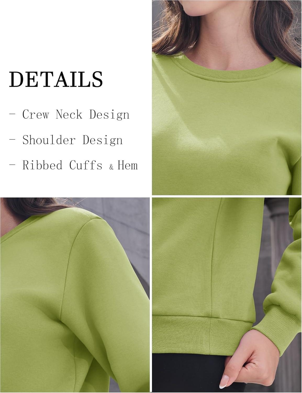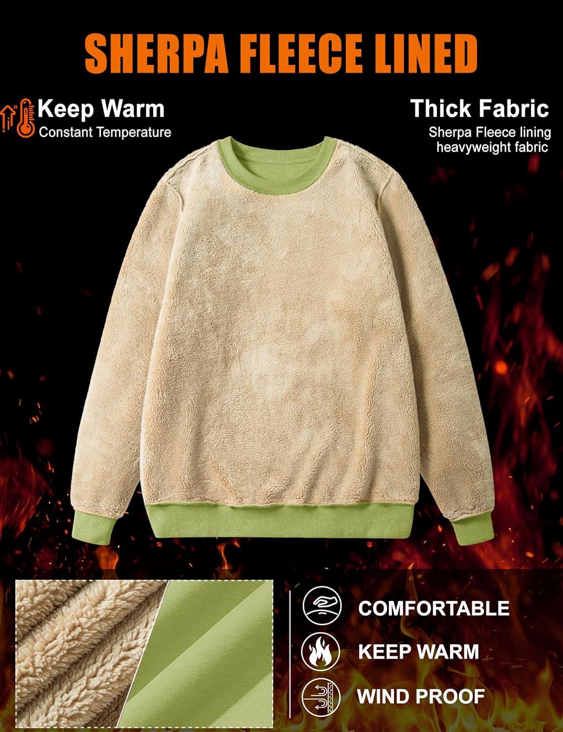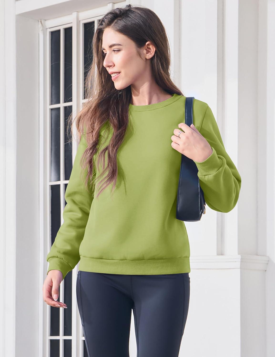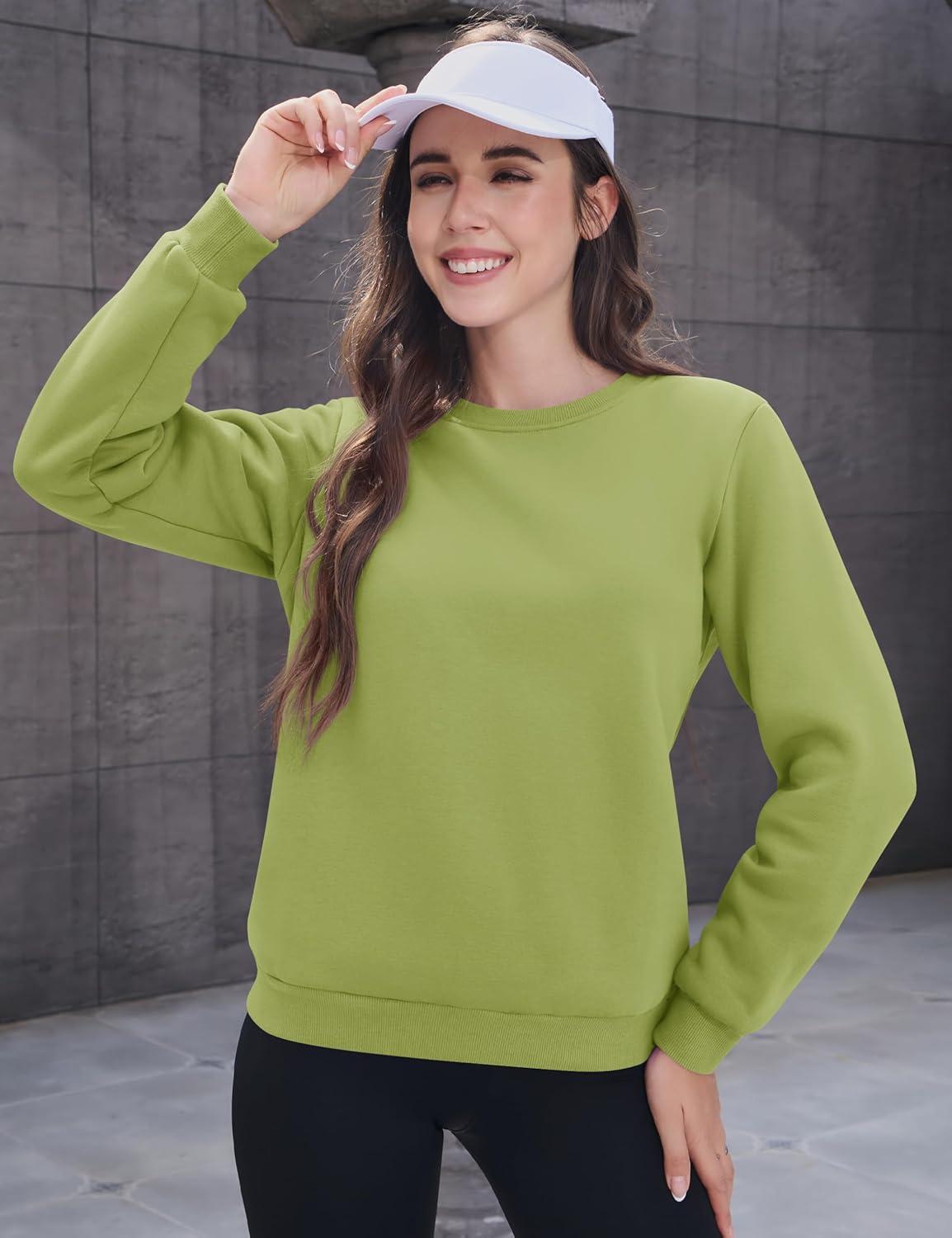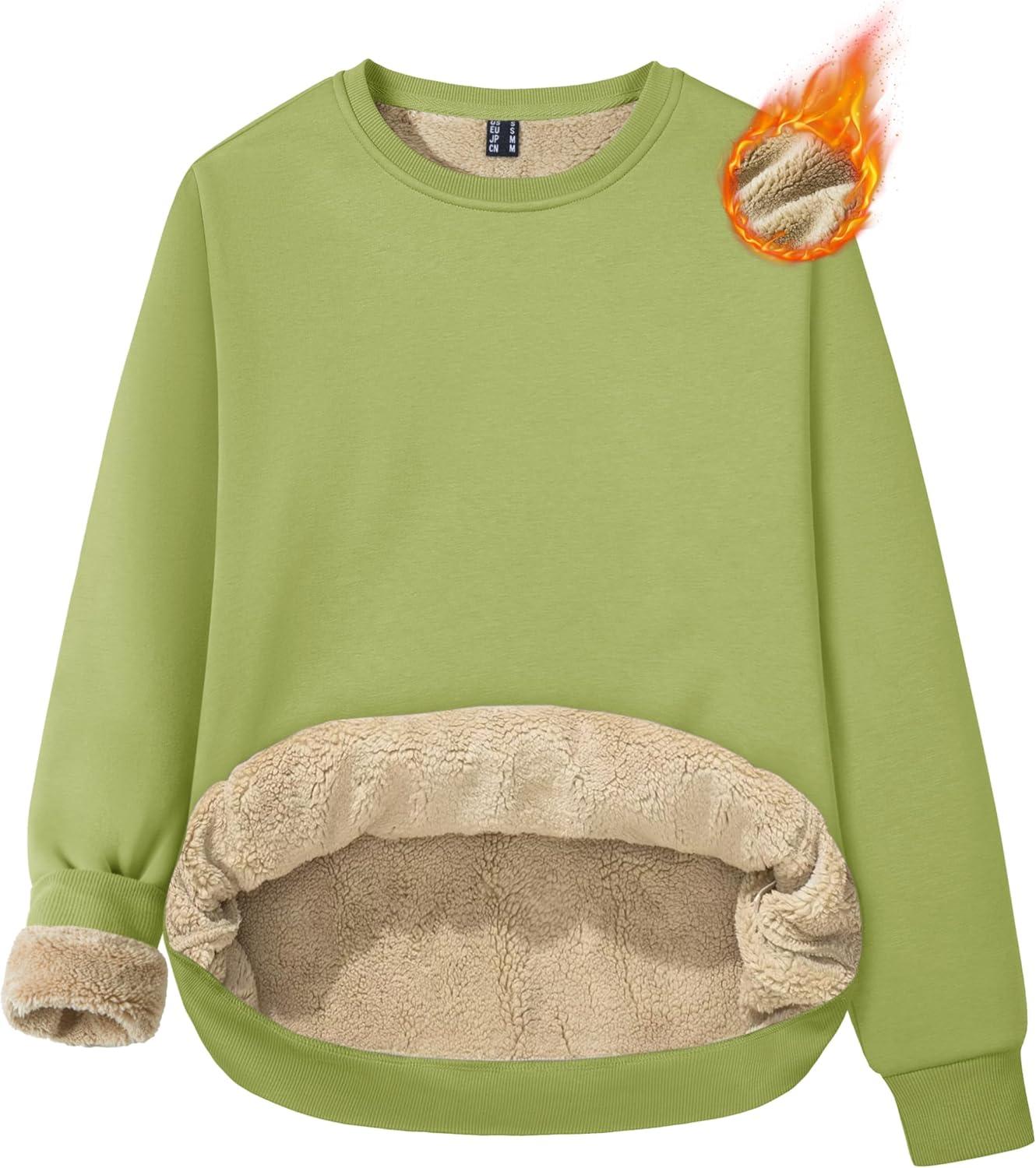 MAGCOMSEN Women’s Sherpa Lined Sweatshirts Thermal Casual Crewneck Fleece Pullover Winter Warm Thick Tops(Olive Green)