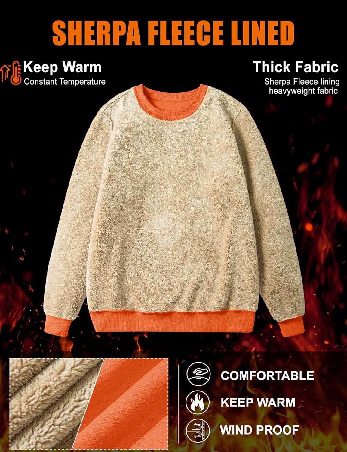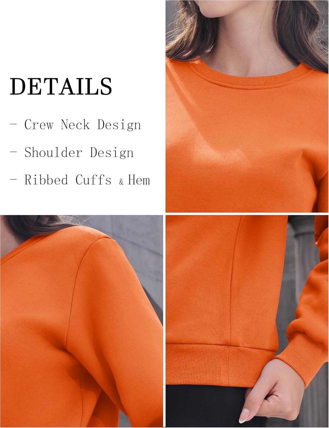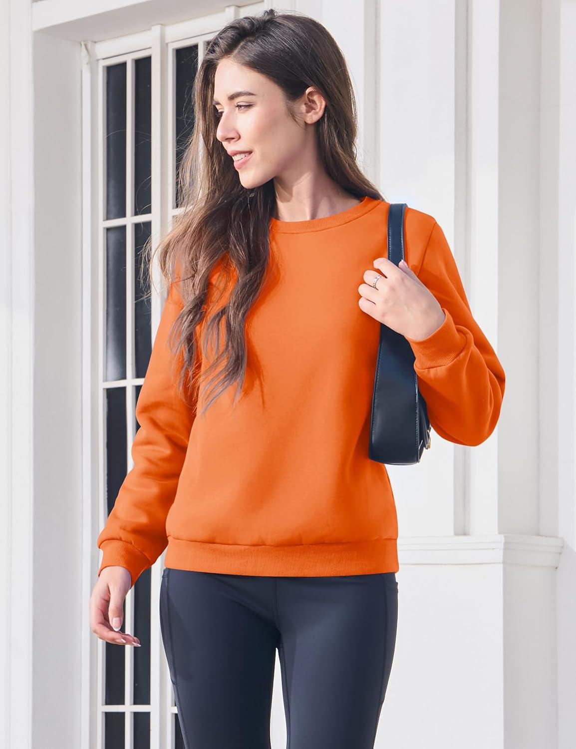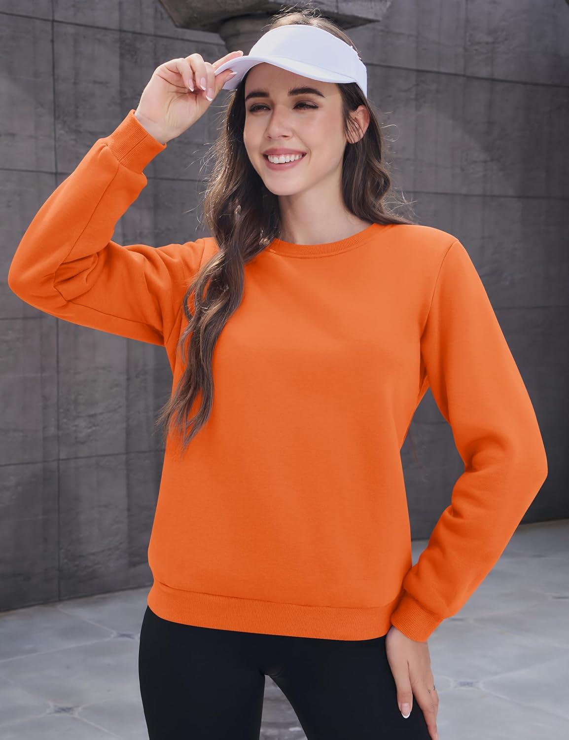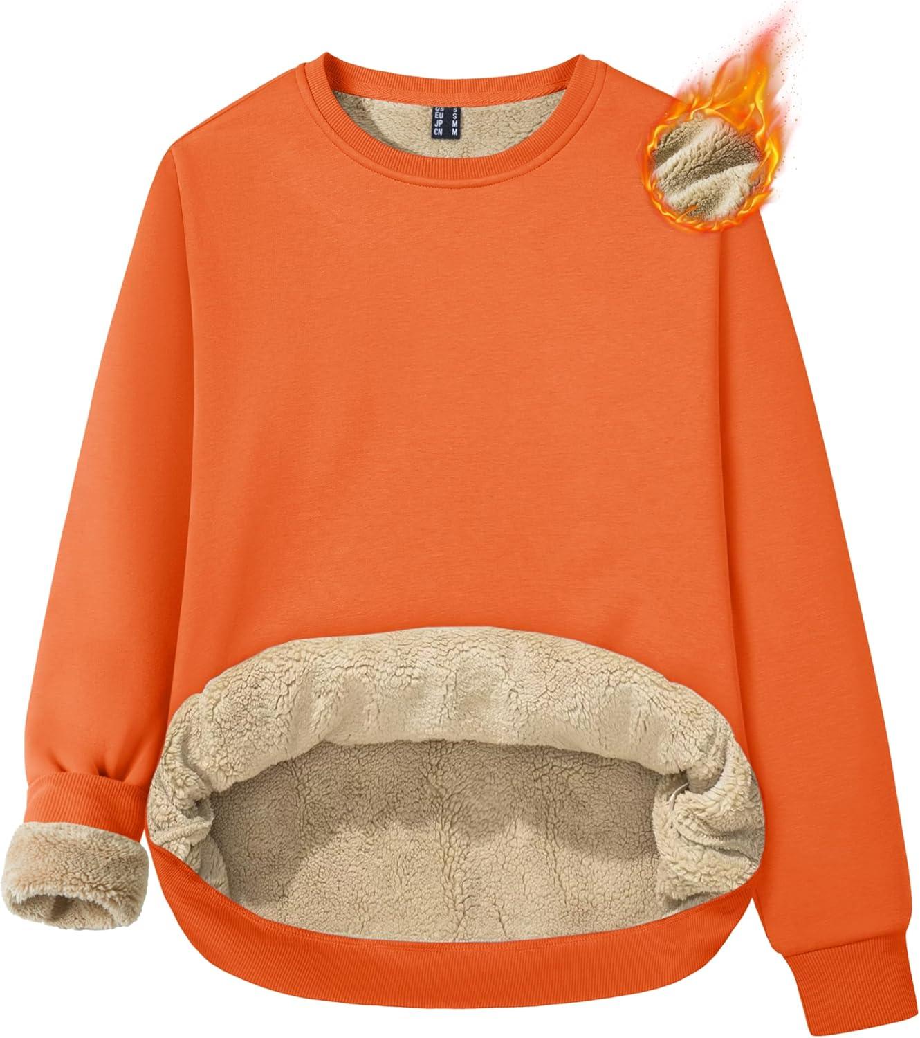 MAGCOMSEN Women’s Sherpa Lined Sweatshirts Thermal Casual Crewneck Fleece Pullover Winter Warm Thick Tops(Orange)