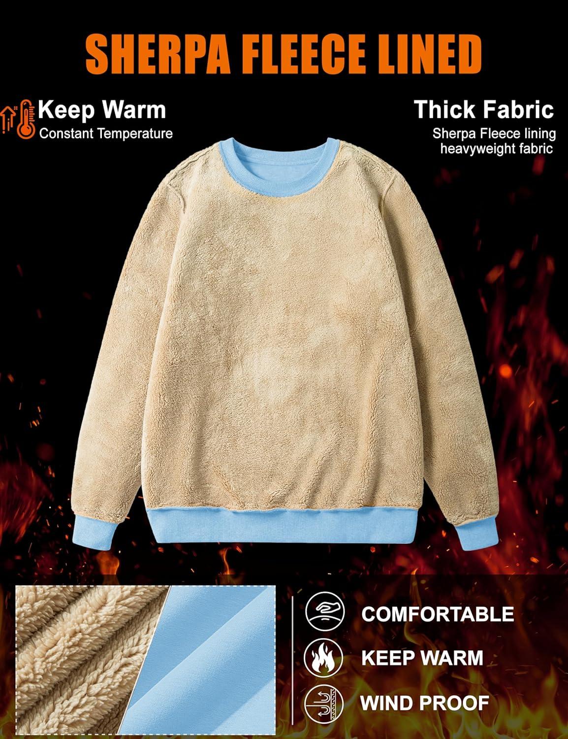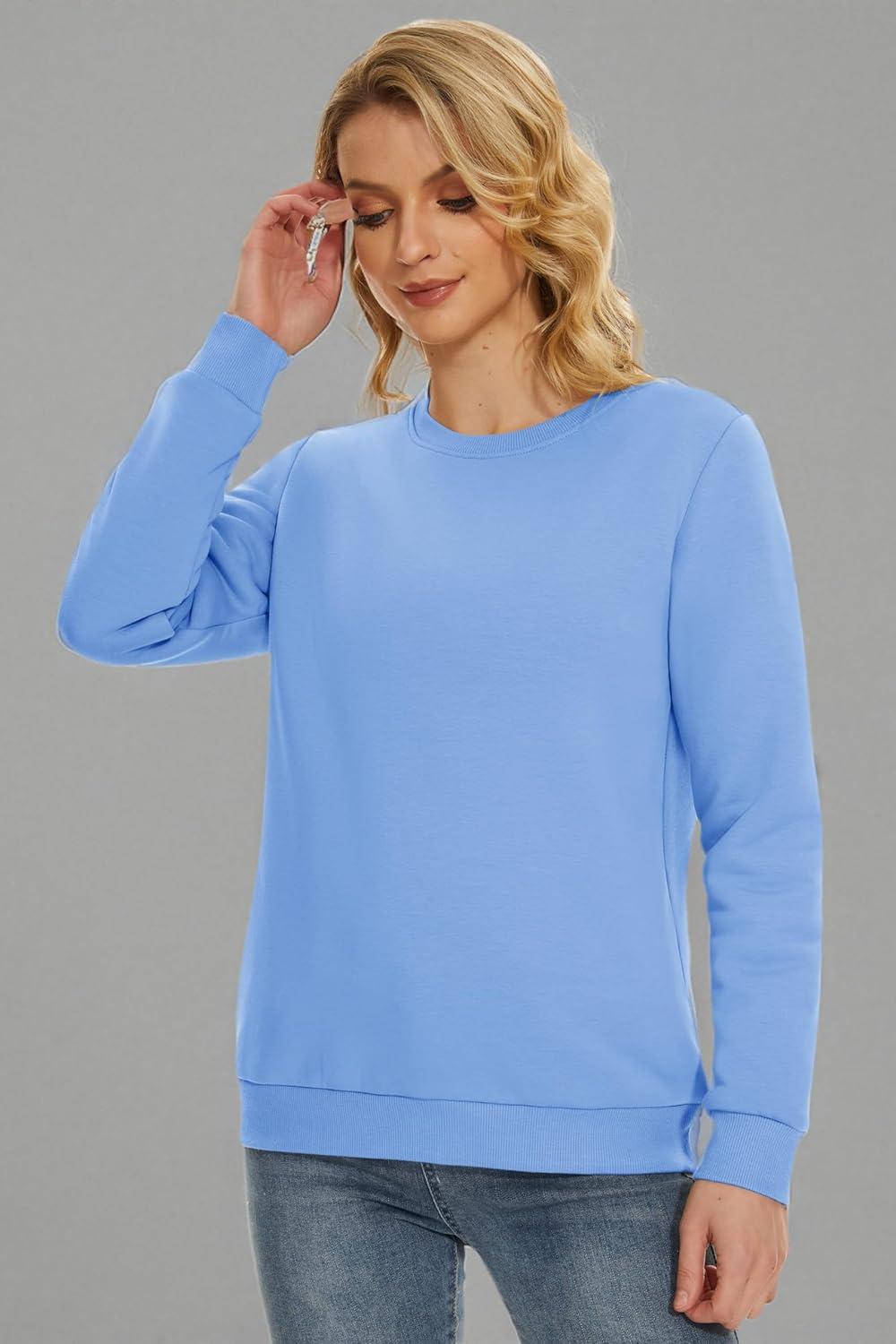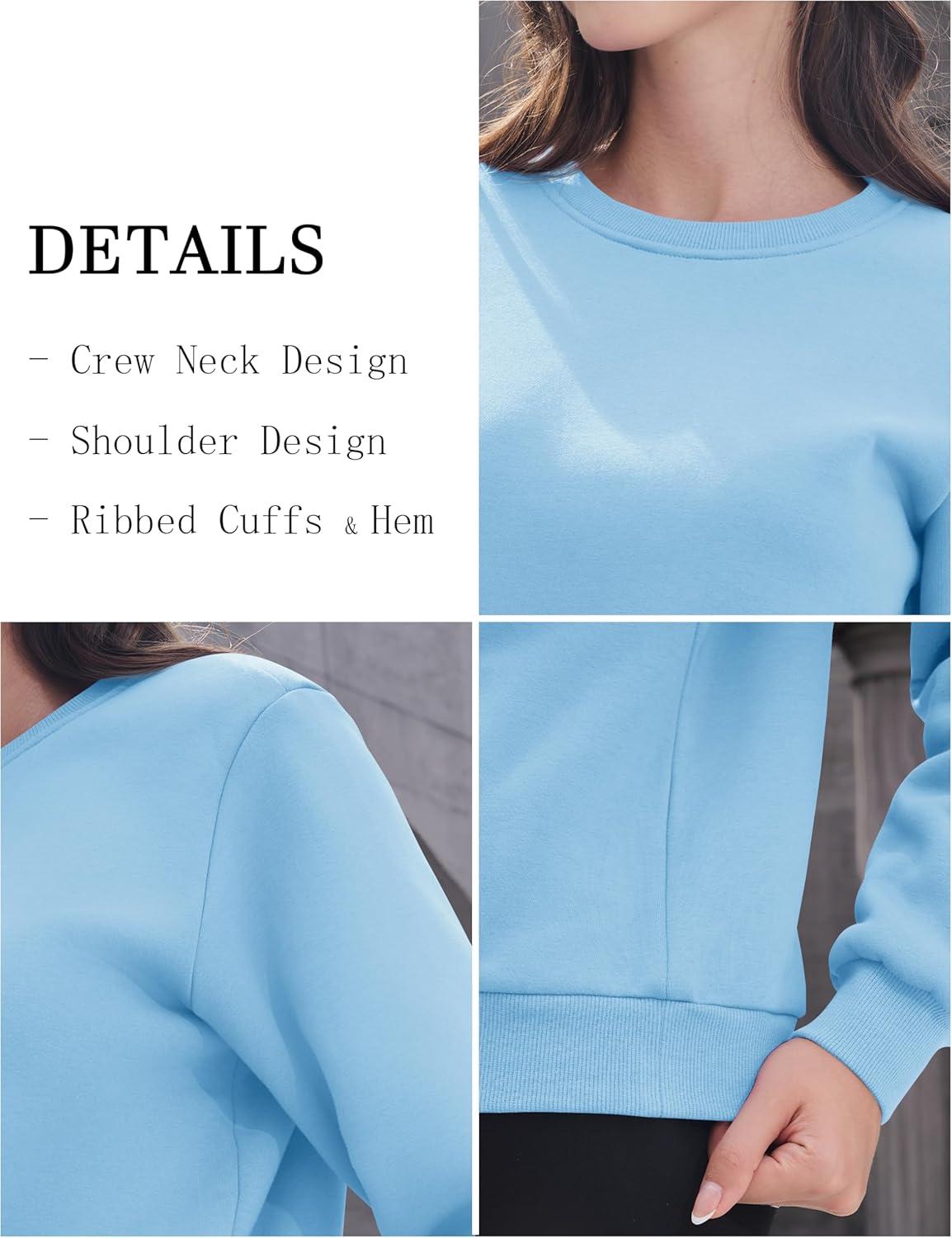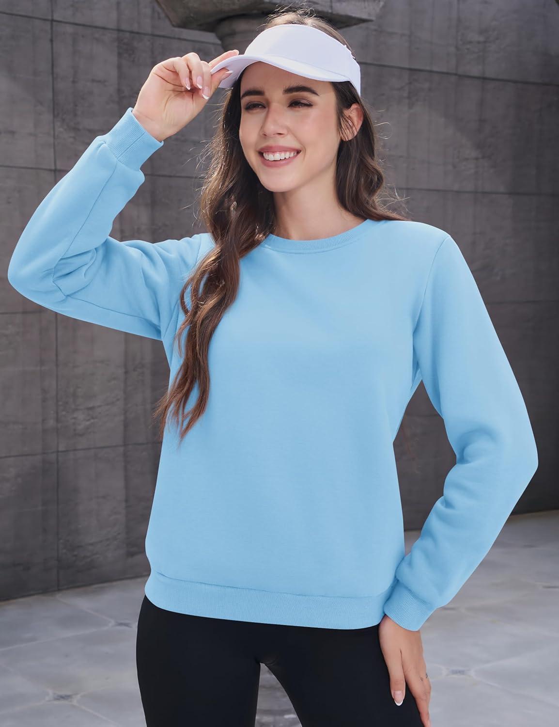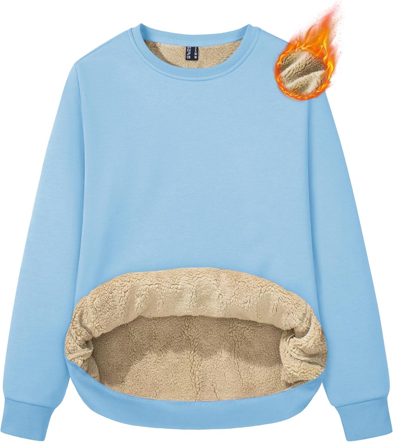 MAGCOMSEN Women’s Sherpa Lined Sweatshirts Thermal Casual Crewneck Fleece Pullover Winter Warm Thick Tops(Sky Blue)