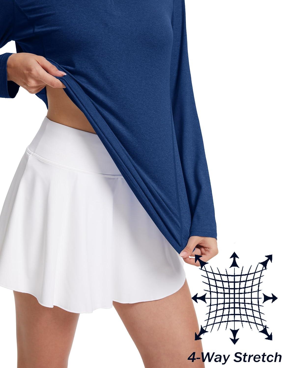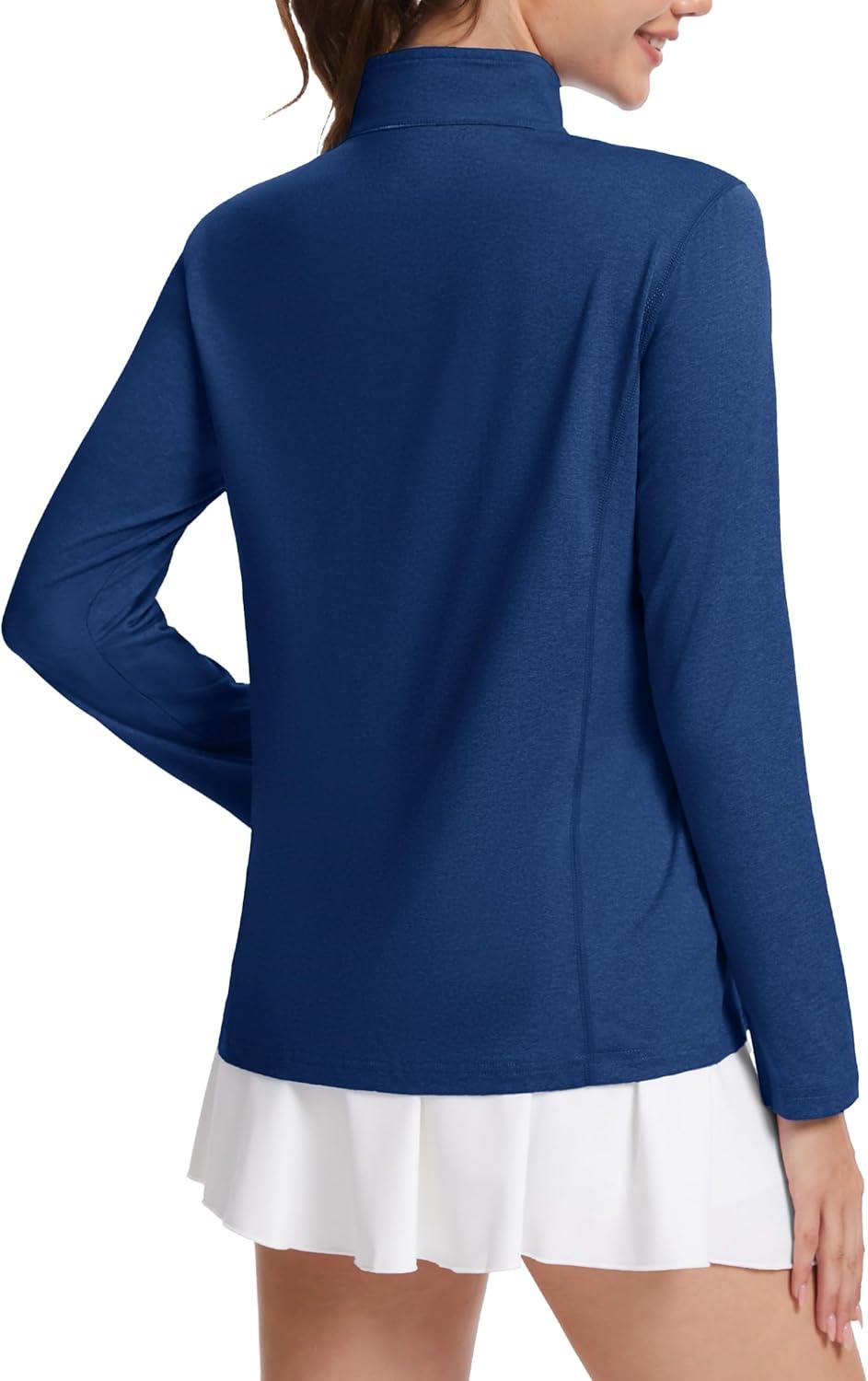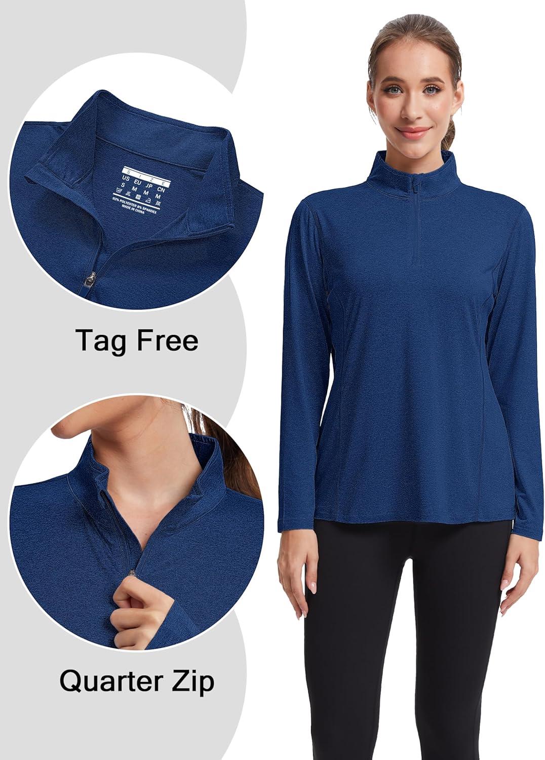 MAGCOMSEN Women’s Shirts Long Sleeve 1/4 Zip UPF50+ UV Sun Protection Quick Dry Workout Hiking Athletic Shirts Rash Guard(Dark Blue)