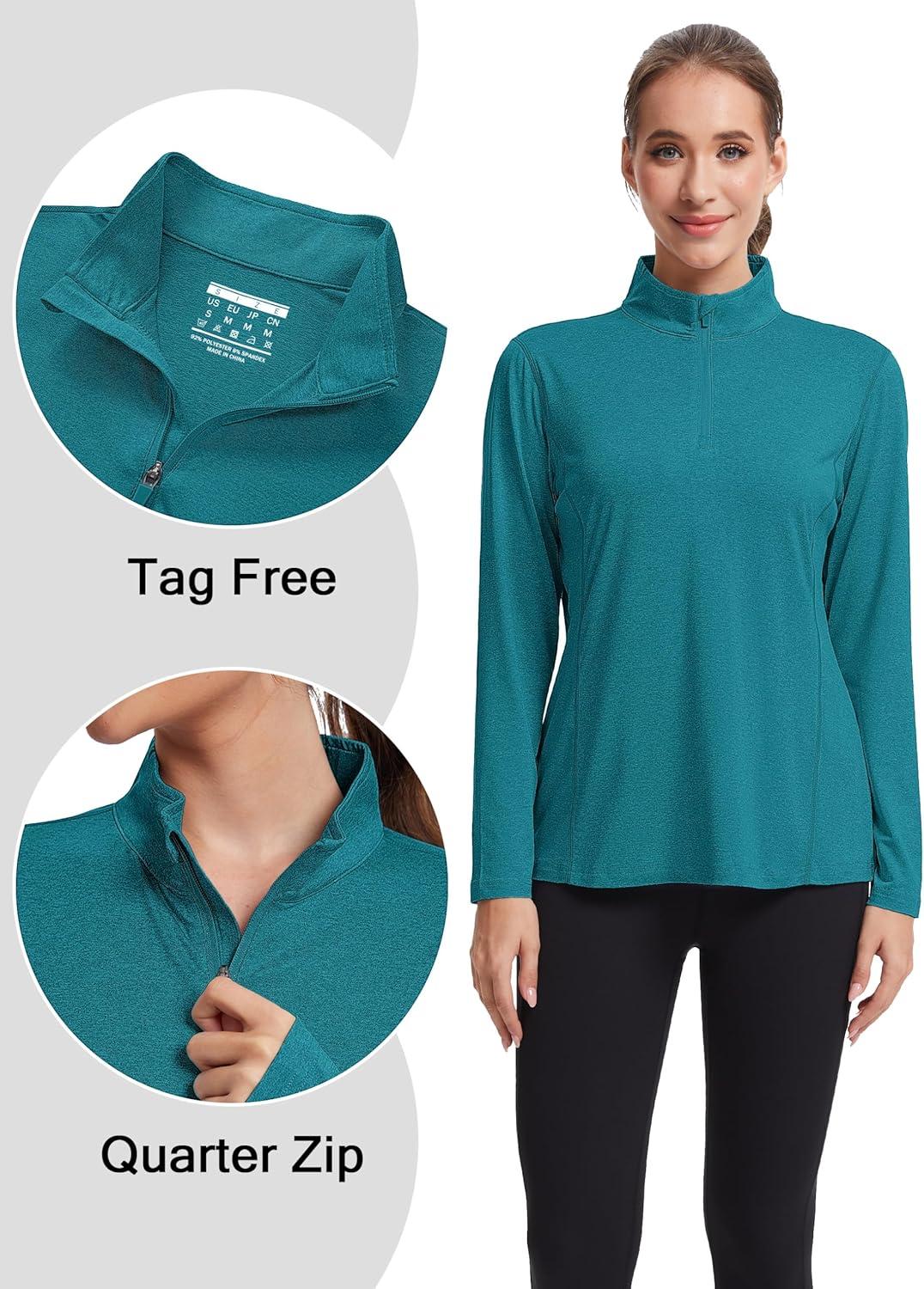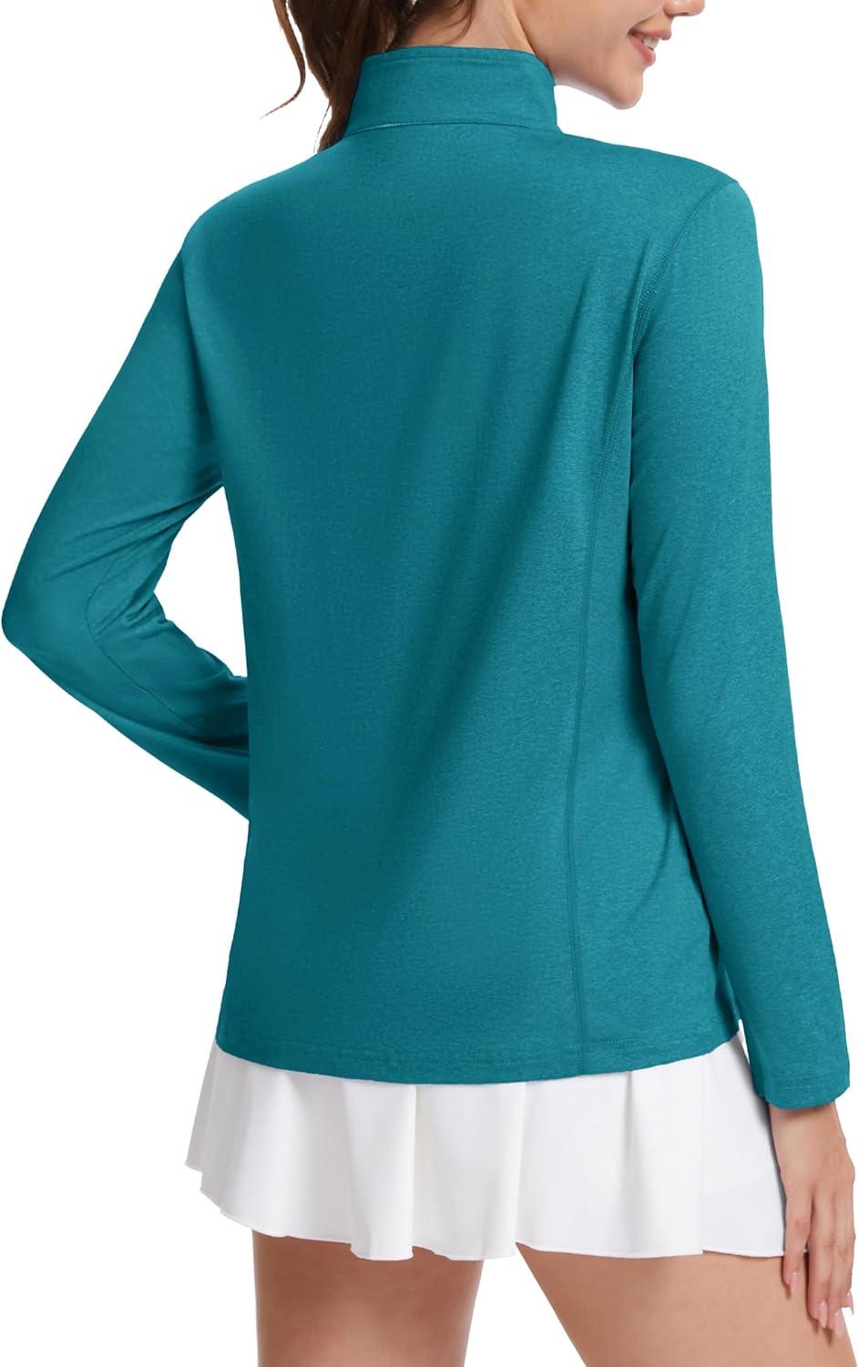 MAGCOMSEN Women’s Shirts Long Sleeve 1/4 Zip UPF50+ UV Sun Protection Quick Dry Workout Hiking Athletic Shirts Rash Guard(Peacock Blue)