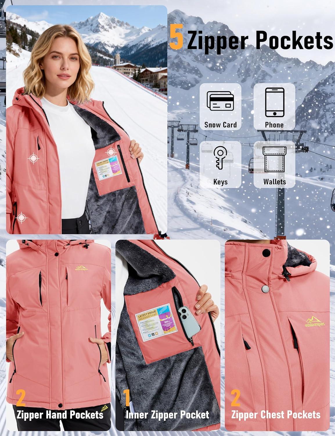 MAGCOMSEN Women’s Ski Jacket Snow Winter Coat Waterproof Insulated Warm Fleece Thermal Skiing Jacket Windproof Raincoat(Aquared)