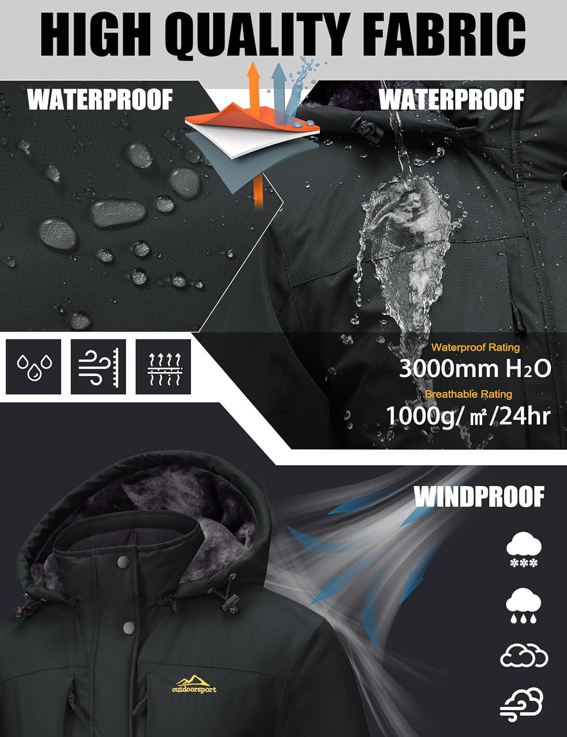 MAGCOMSEN Women’s Ski Jacket Snow Winter Coat Waterproof Insulated Warm Fleece Thermal Skiing Jacket Windproof Raincoat(Black)