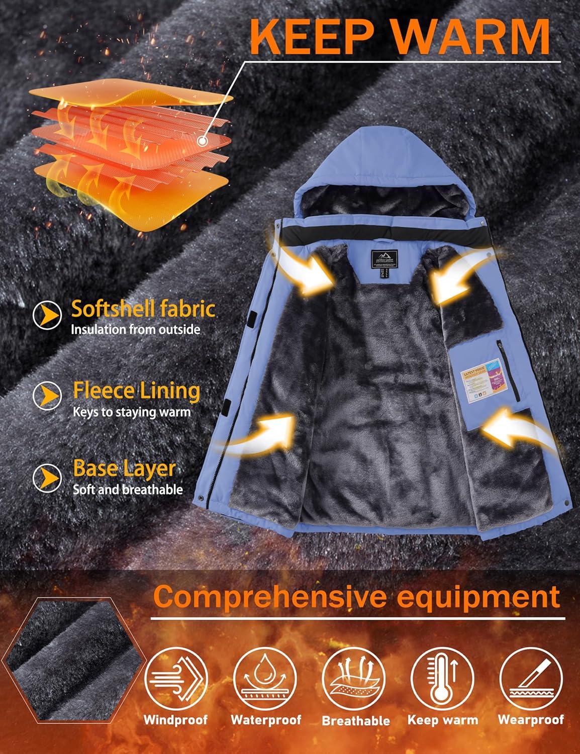 MAGCOMSEN Women’s Ski Jacket Snow Winter Coat Waterproof Insulated Warm Fleece Thermal Skiing Jacket Windproof Raincoat(Light Blue)