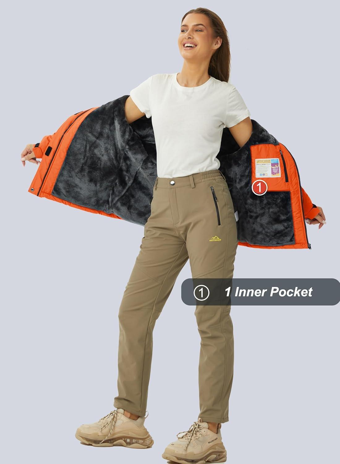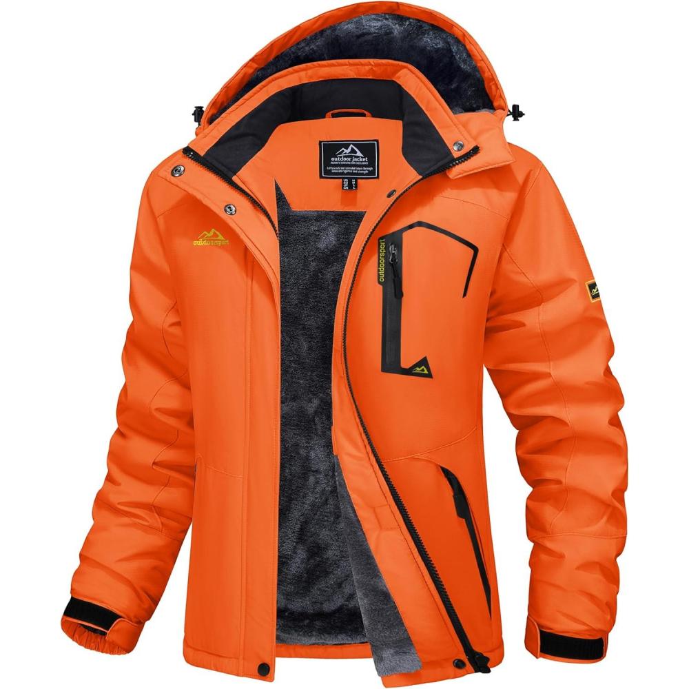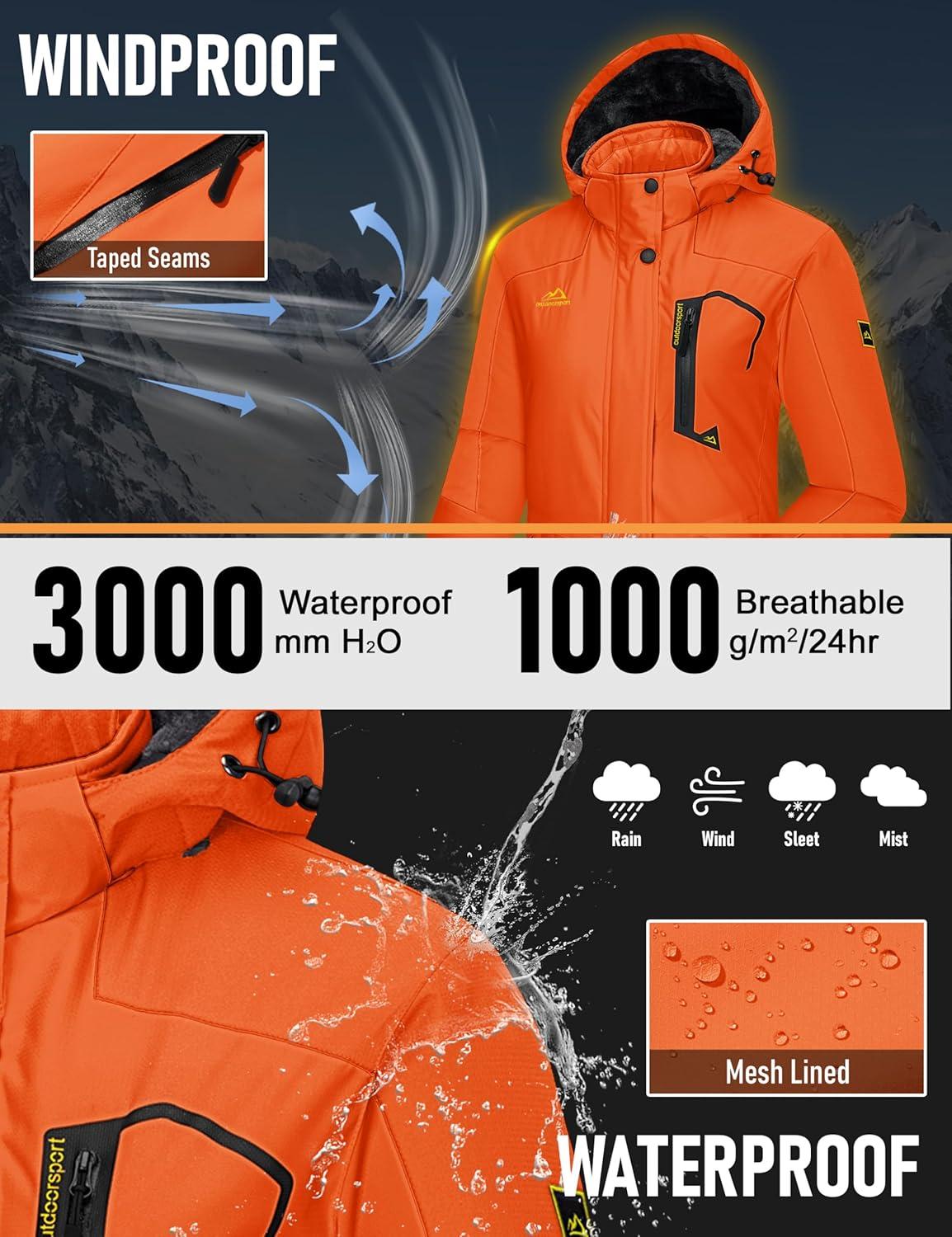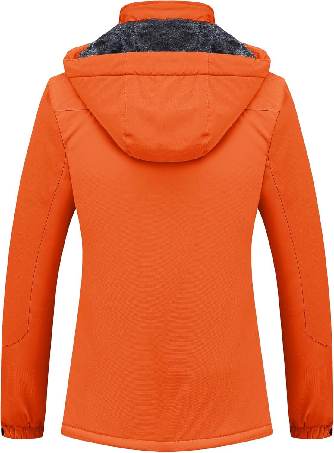 MAGCOMSEN Womens Ski Jacket Waterproof Insulated Snow Jacket Warm Windproof Winter Coats with Hood Fleece Lined Jacket(Orange)