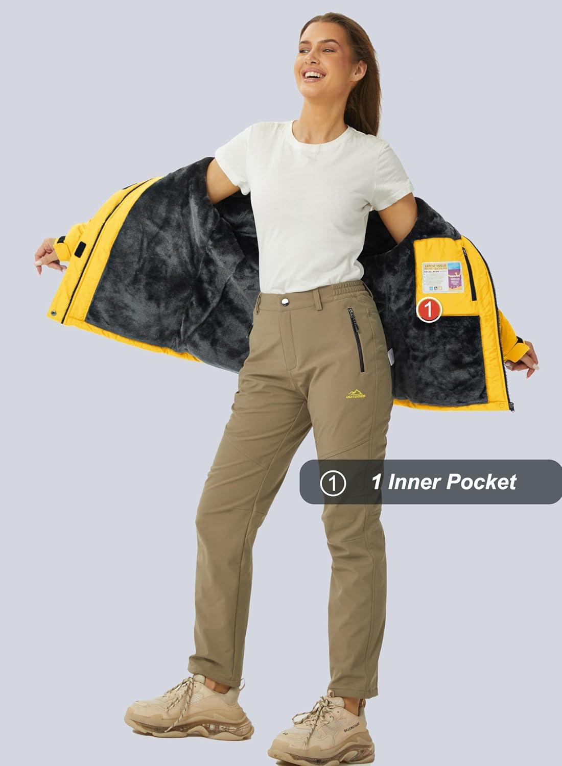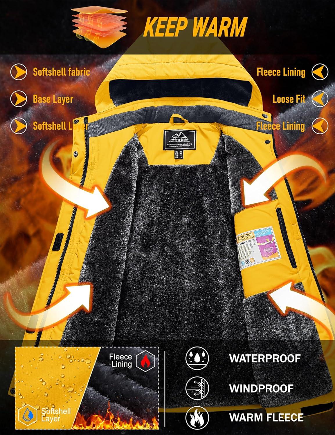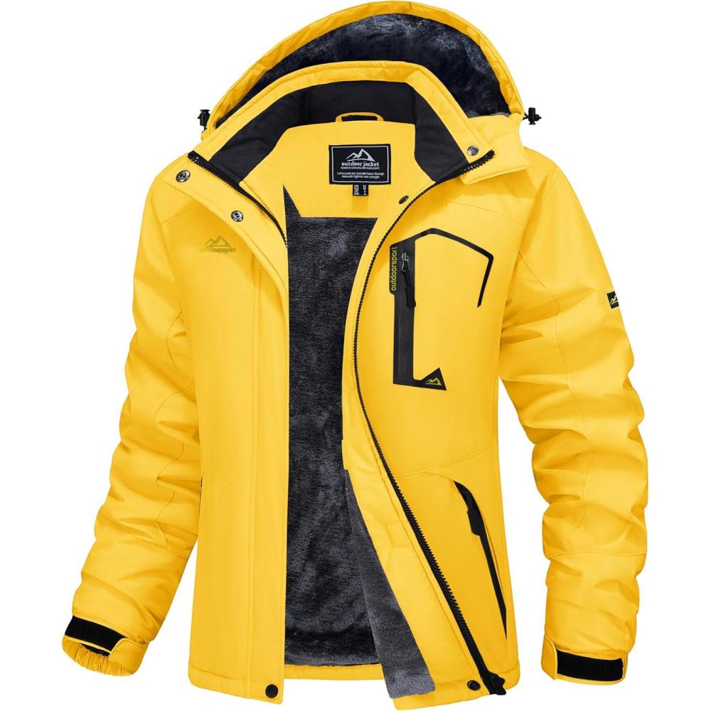 MAGCOMSEN Womens Ski Jacket Waterproof Insulated Snow Jacket Warm Windproof Winter Coats with Hood Fleece Lined Jacket(Yellow)