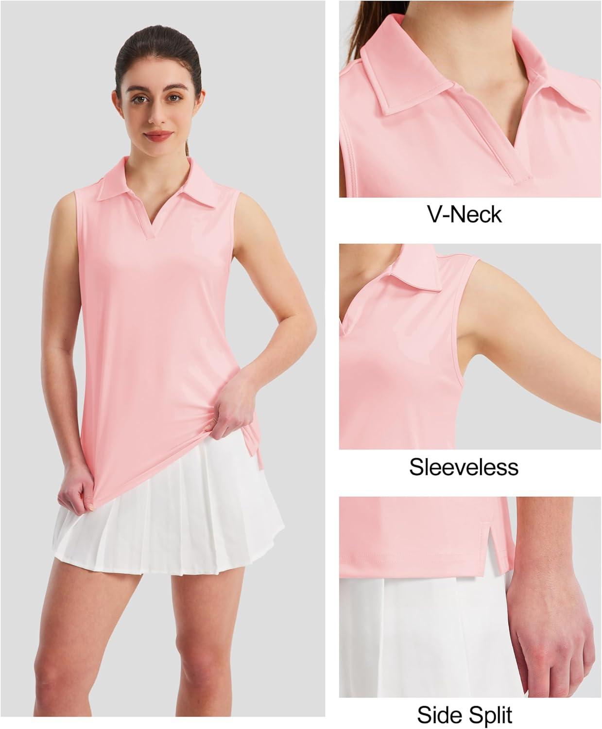 MAGCOMSEN Women’s Sleeveless Golf Polo Shirts Collared Tank Tops UPF 50+ V-Neck Quick Dry Workout Athletic Tennis Tops(Light Pink)