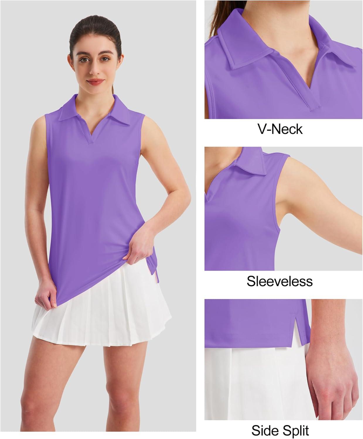 MAGCOMSEN Women’s Sleeveless Golf Polo Shirts Collared Tank Tops UPF 50+ V-Neck Quick Dry Workout Athletic Tennis Tops(Light Purple)