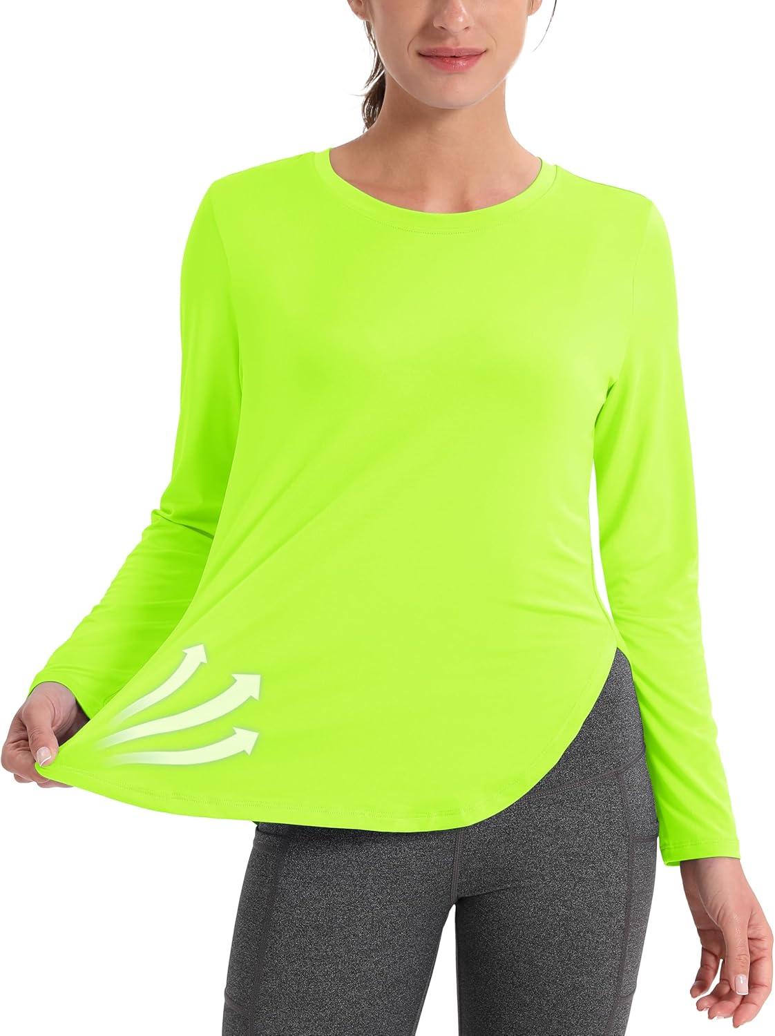 MAGCOMSEN Women’s Sun Shirts SPF Long Sleeve Workout Tops Athletic UV Protection UPF 80+ Quick Dry T Shirt(Fluorescent Green)