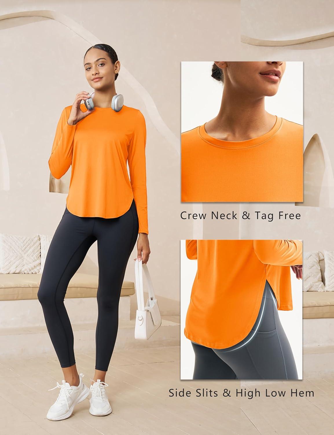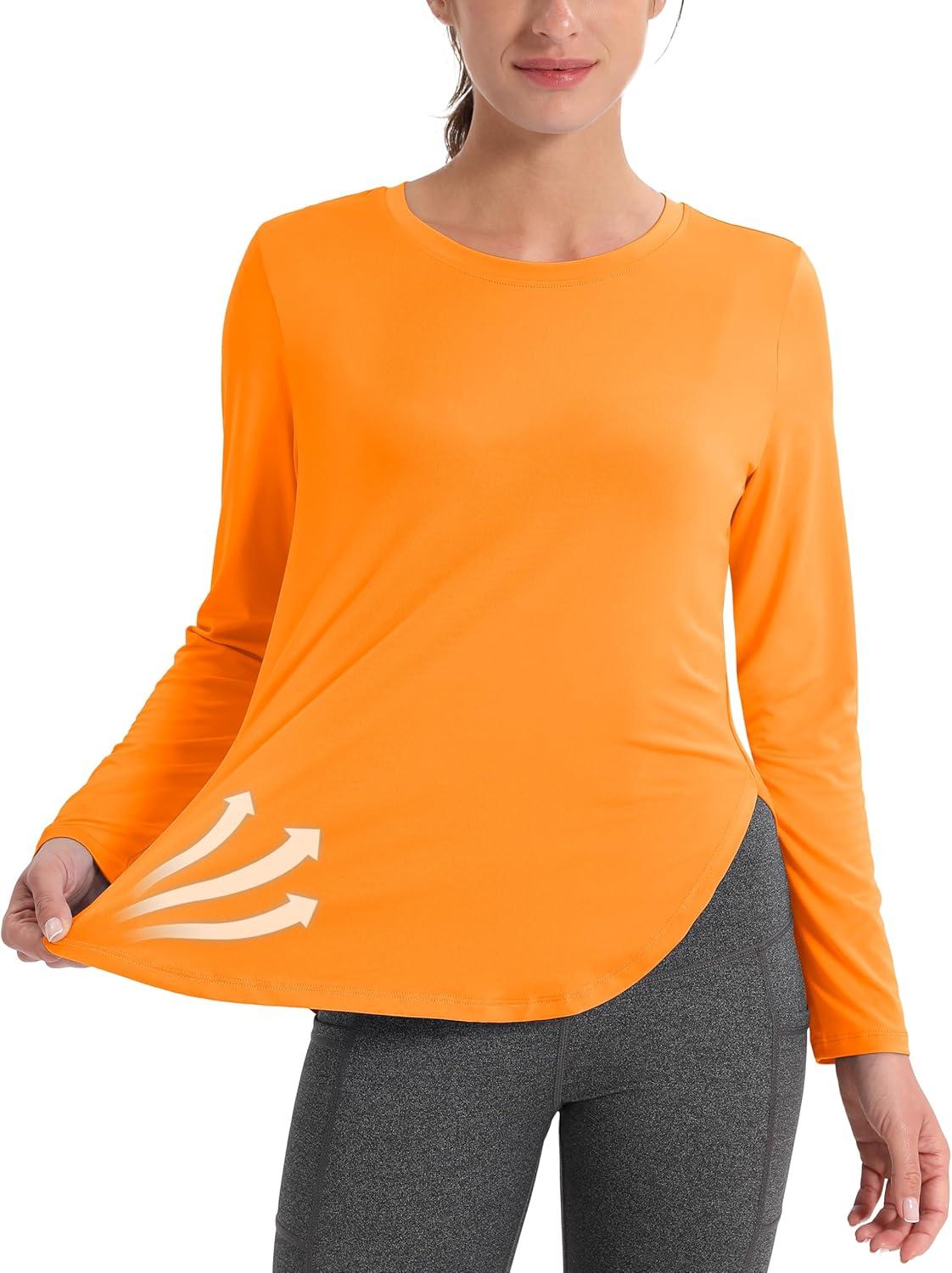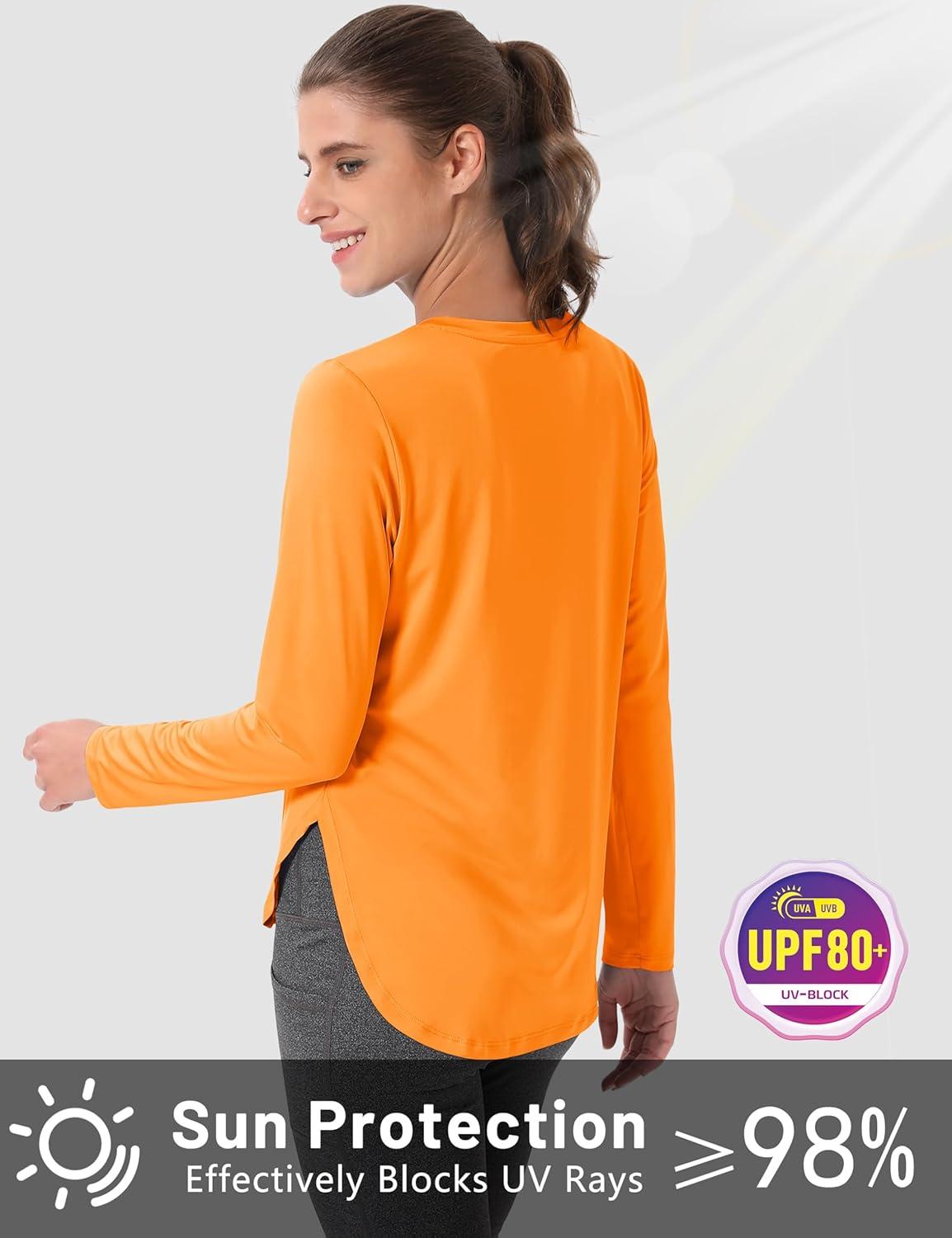 MAGCOMSEN Women’s Sun Shirts SPF Long Sleeve Workout Tops Athletic UV Protection UPF 80+ Quick Dry T Shirt(Orange)