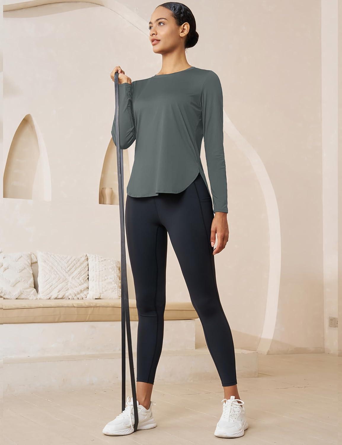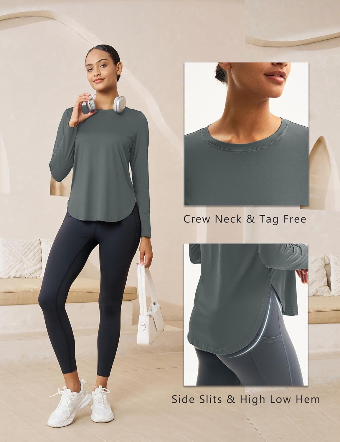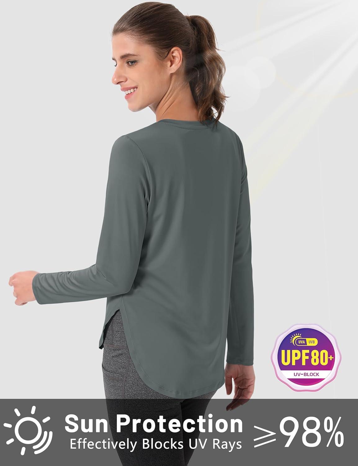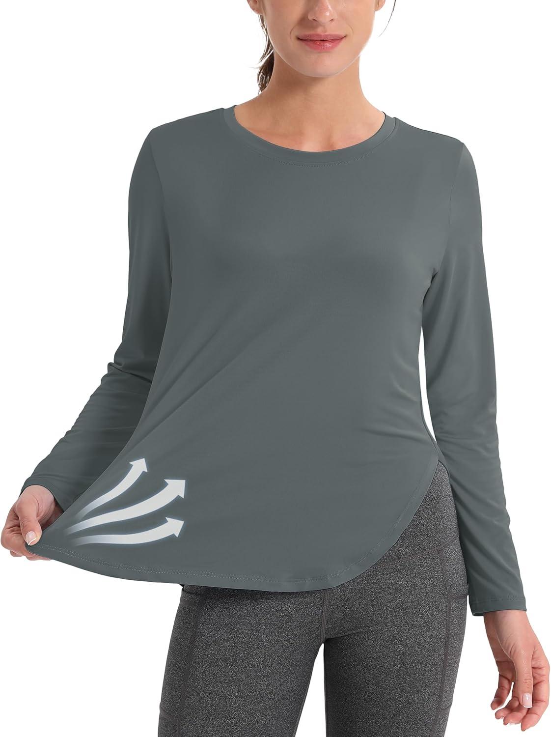 MAGCOMSEN Women’s Sun Shirts SPF Long Sleeve Workout Tops Athletic UV Protection UPF 80+ Quick Dry T Shirt(Sea Stone Grey)