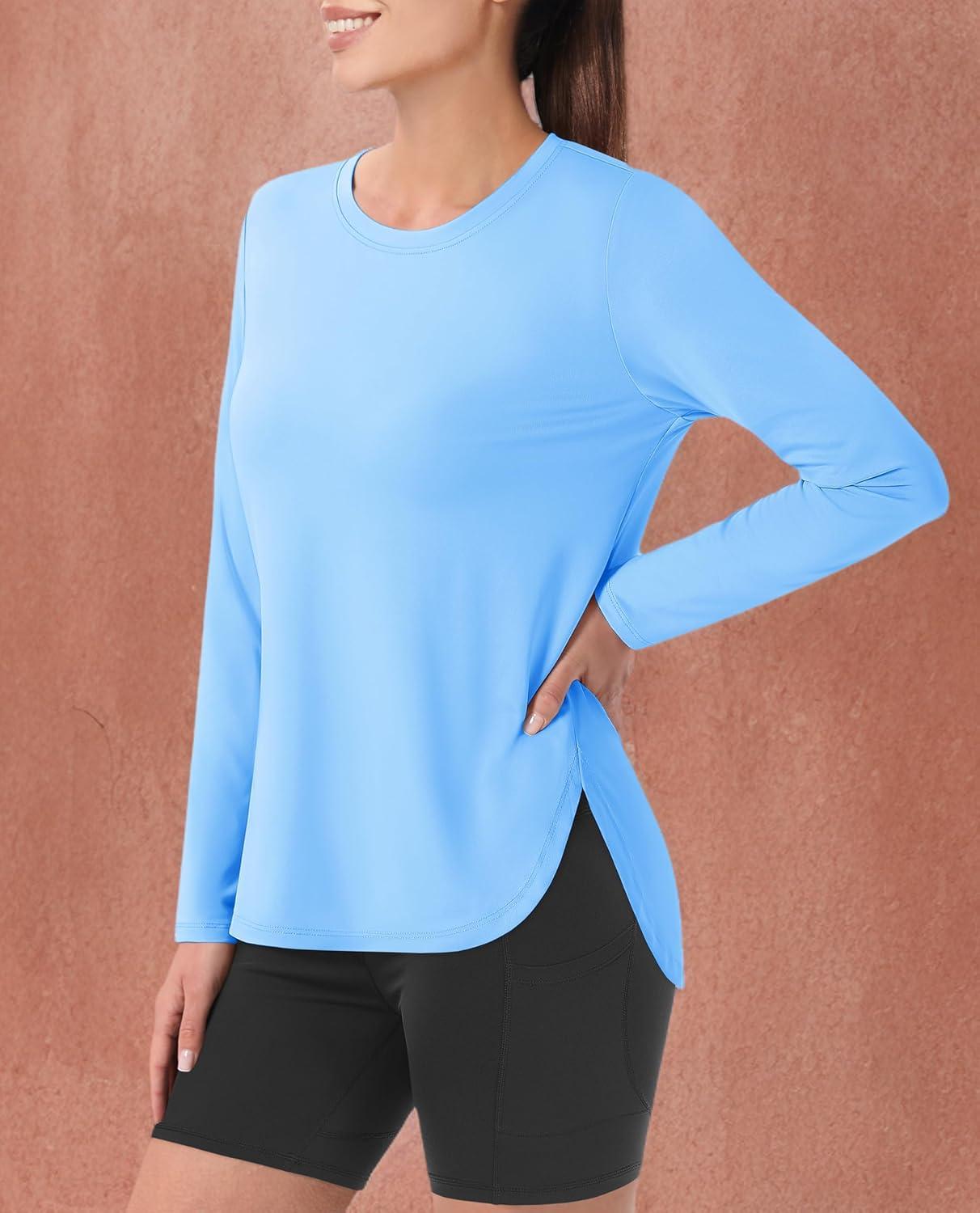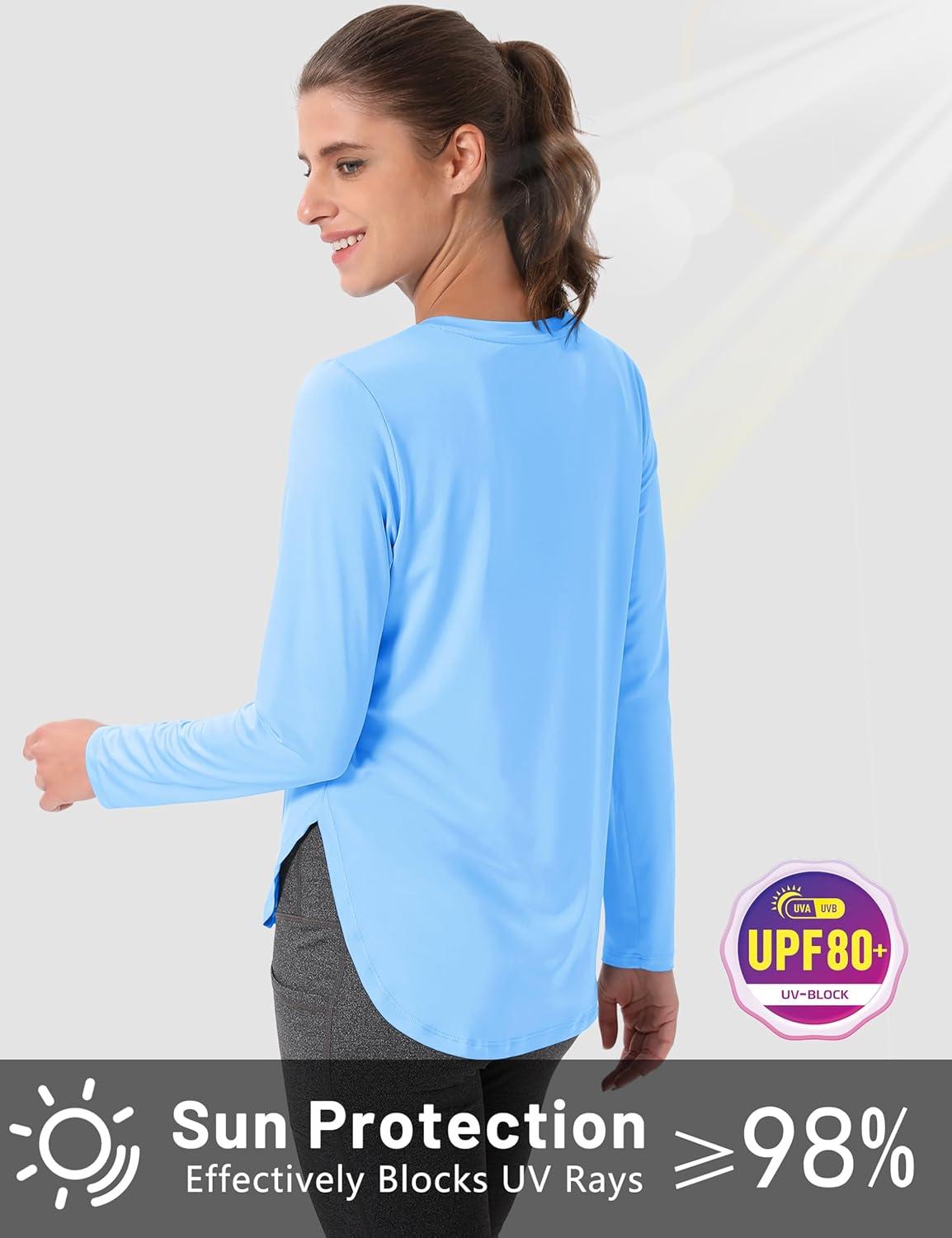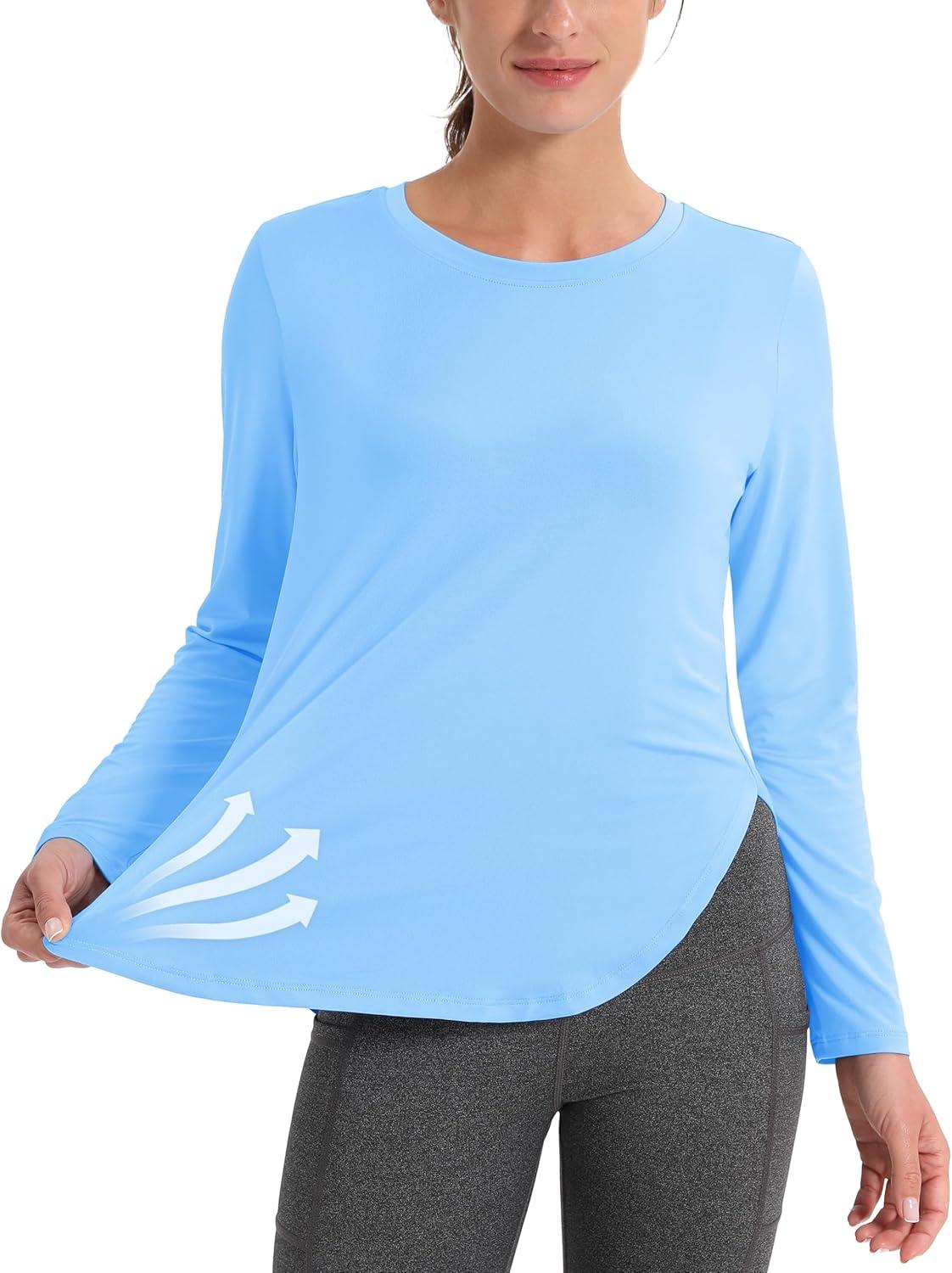 MAGCOMSEN Women’s Sun Shirts SPF Long Sleeve Workout Tops Athletic UV Protection UPF 80+ Quick Dry T Shirt(Sky Blue)