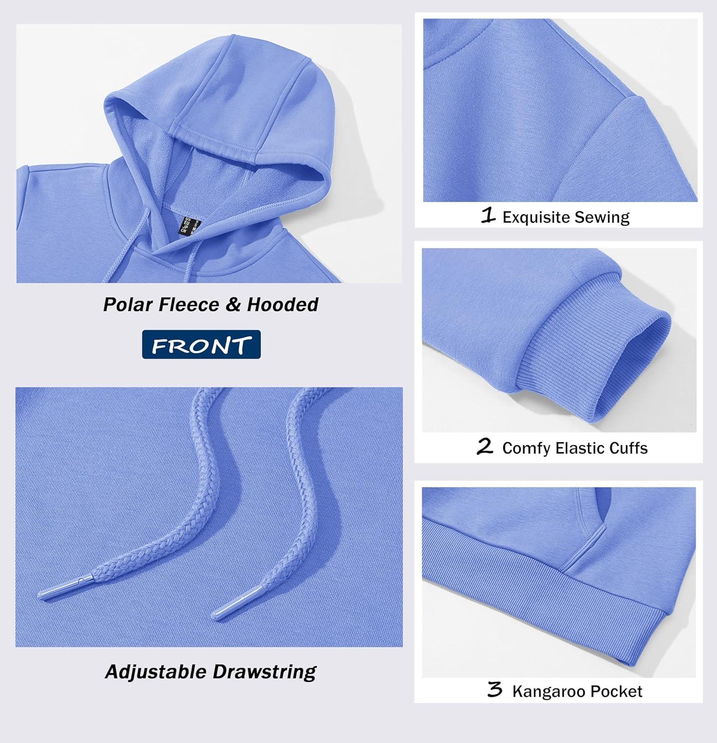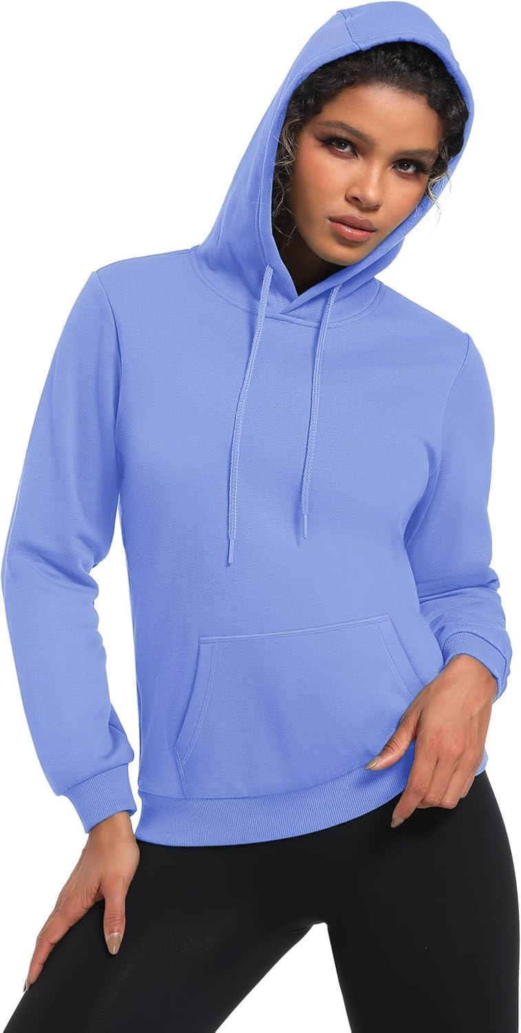 MAGCOMSEN Womens Sweatshirt Hoodie Fleece Lined Warm Casual Pullover Cangroo Pocket Drawstring Basic Tops(Light Blue)
