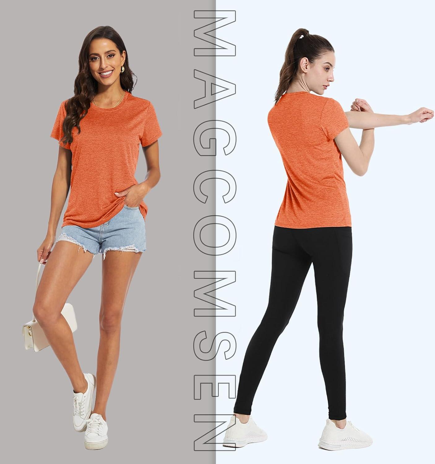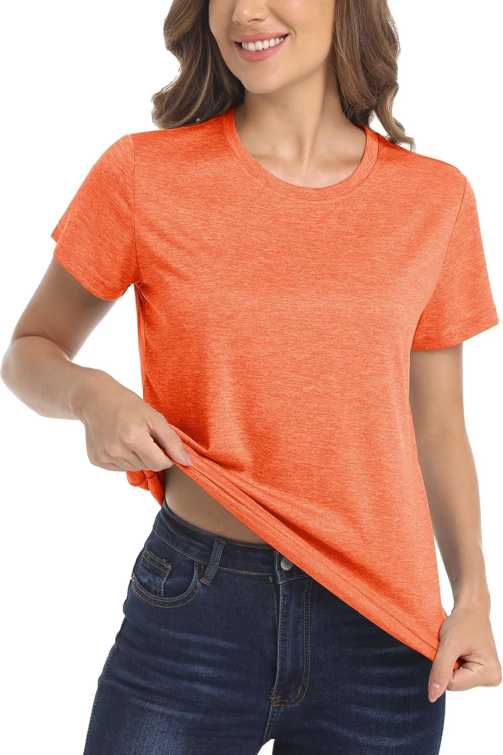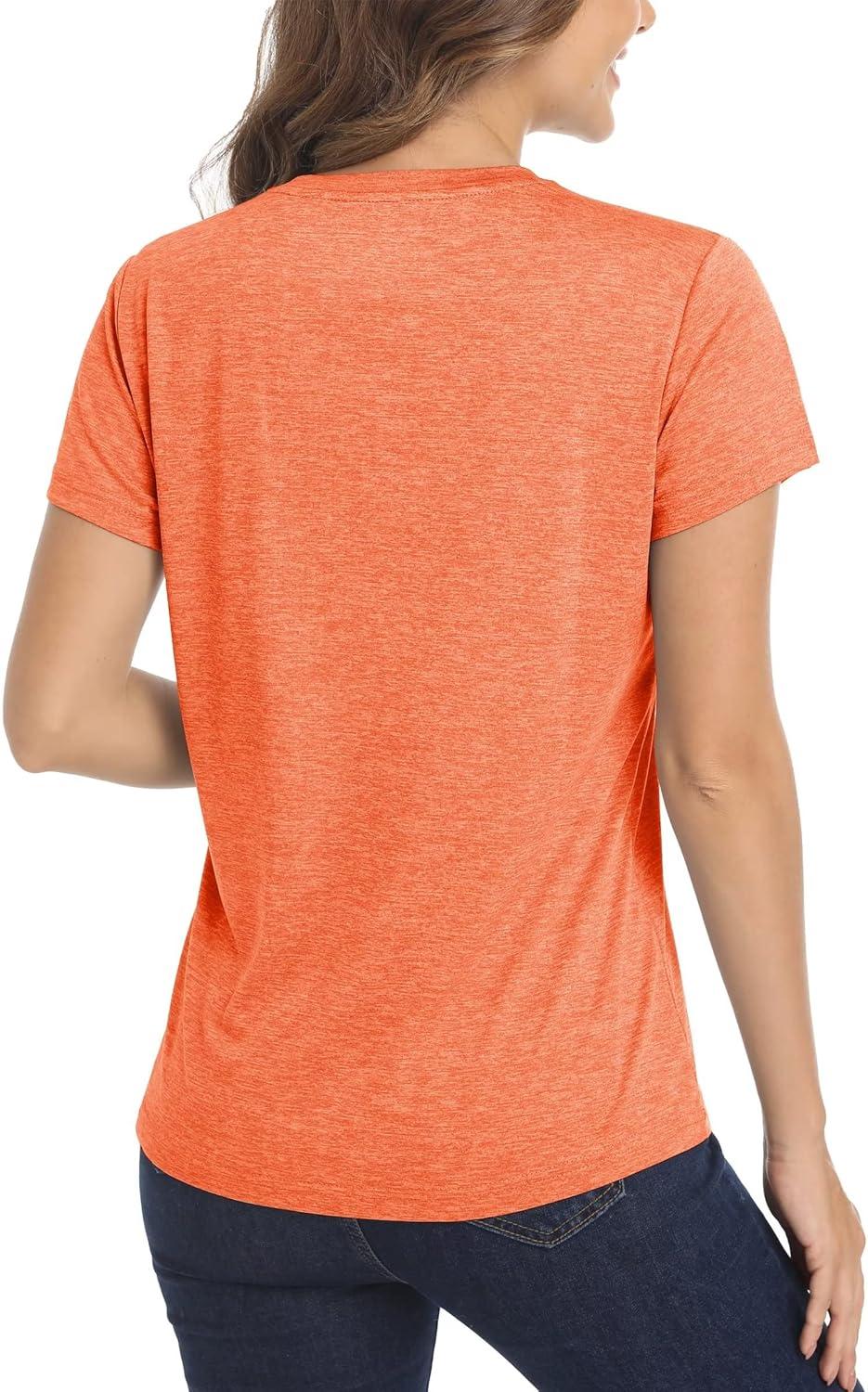 MAGCOMSEN Women’s T Shirts V-Neck Short Sleeve UPF 50+ Sun Protection Performance Quick Dry Athletic Shirts Tee Tops(01-orange)