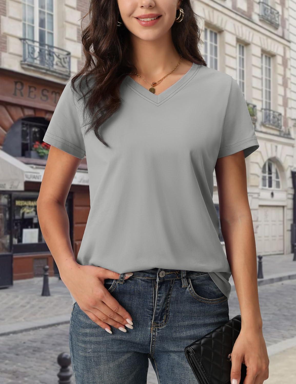MAGCOMSEN Women’s T Shirts V-Neck Short Sleeve UPF 50+ Sun Protection Performance Quick Dry Athletic Shirts Tee Tops(Light Gray)
